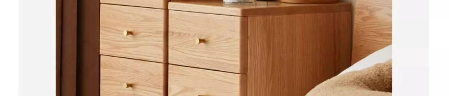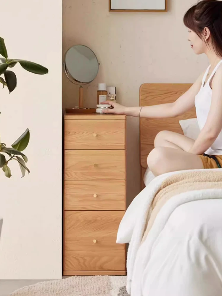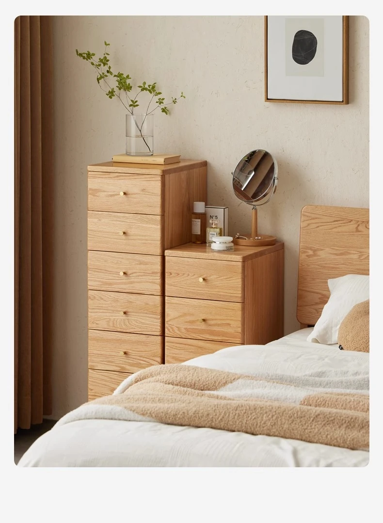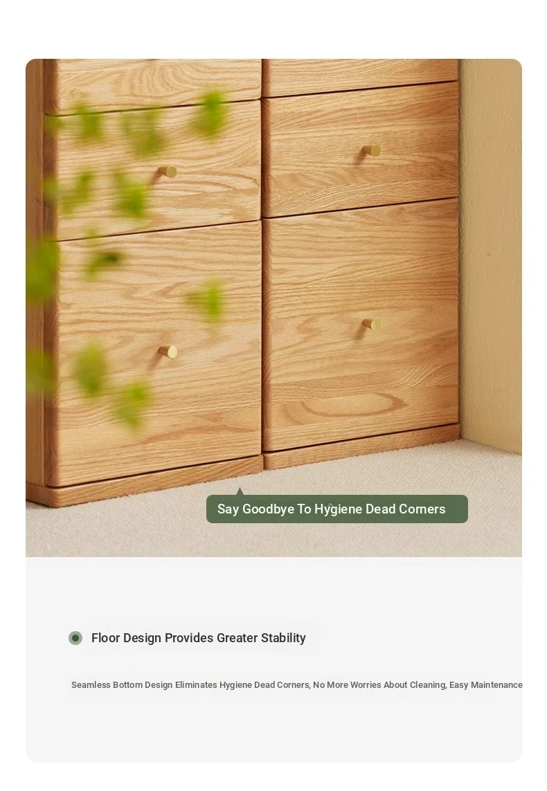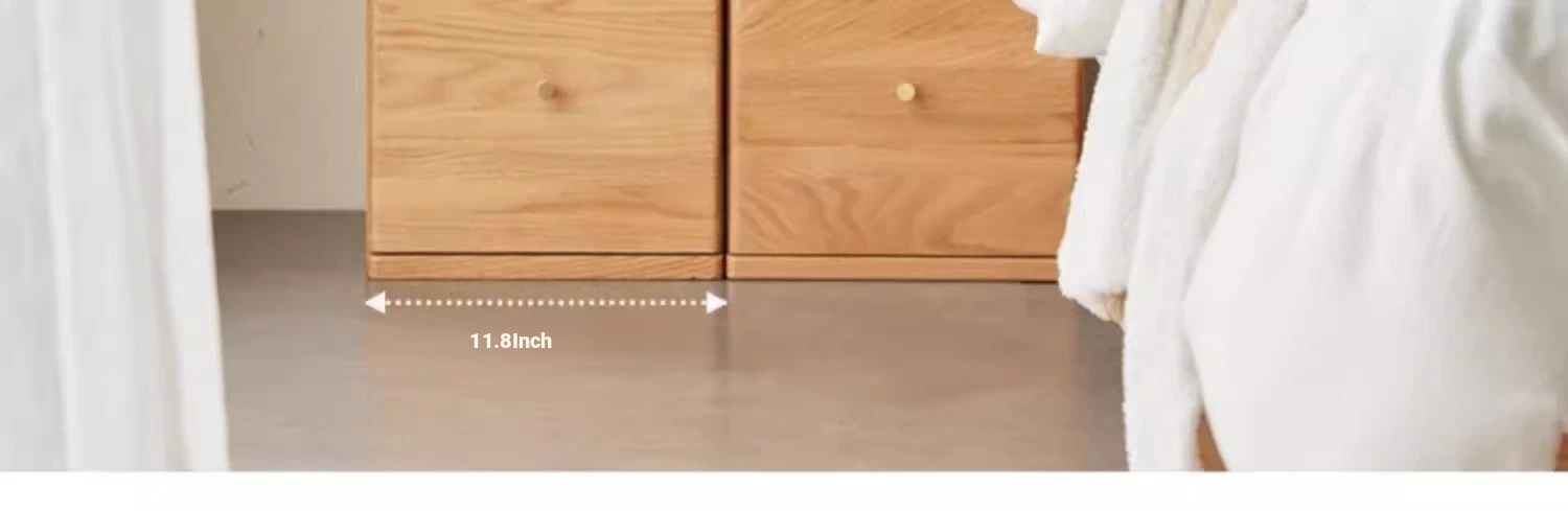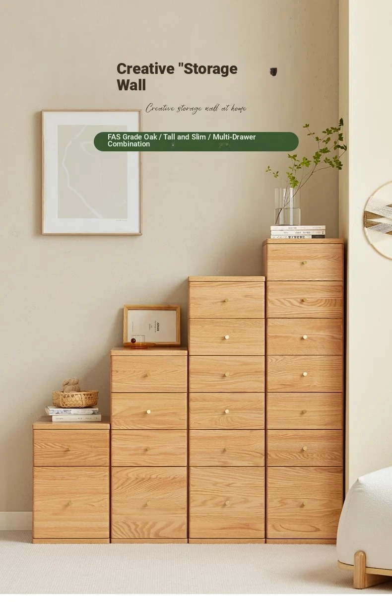 "Scandinavian Oak Solid Wood Dresser - Modern Minimalist Wall-Mounted Storage Cabinet for Bedroom Organization"