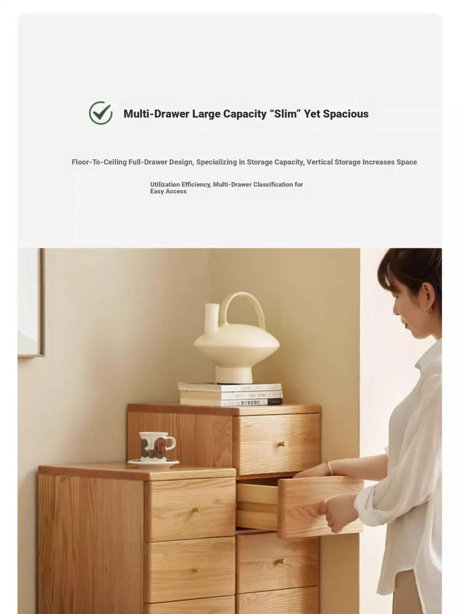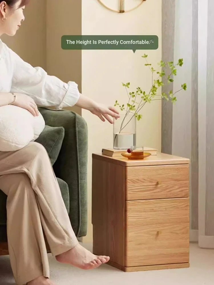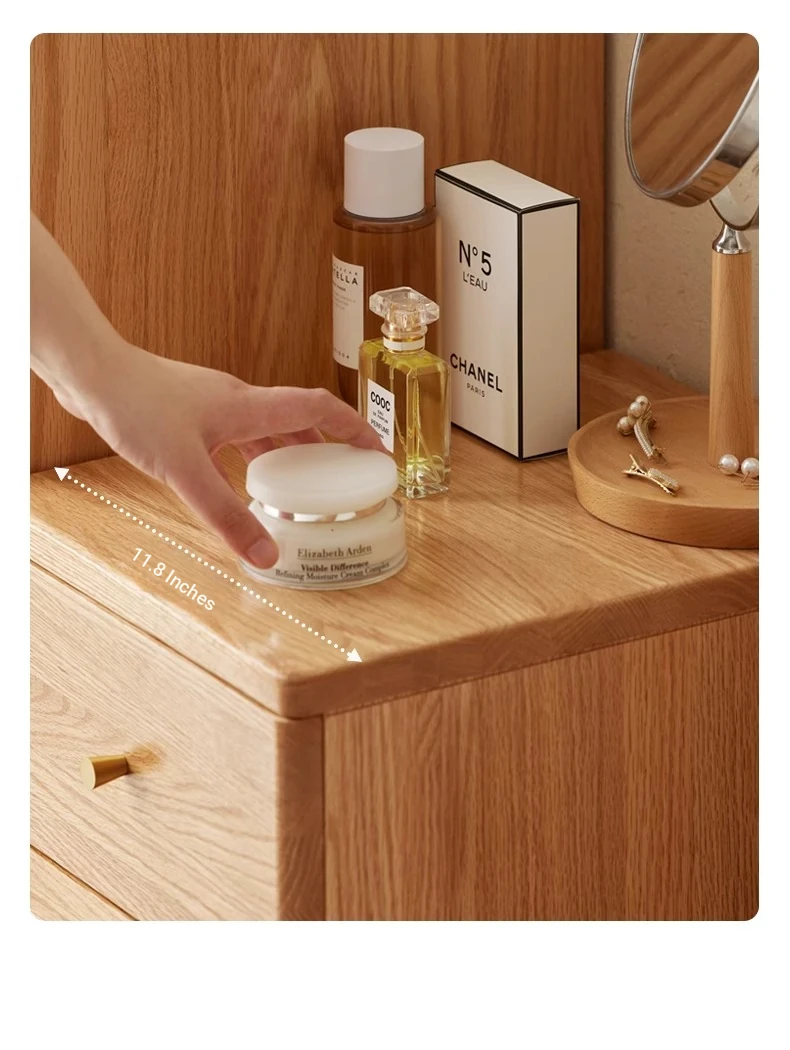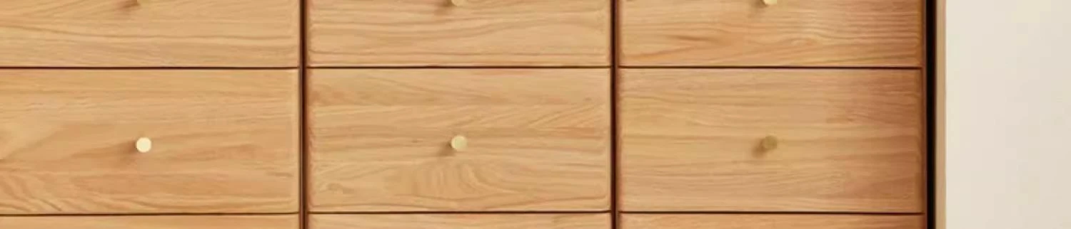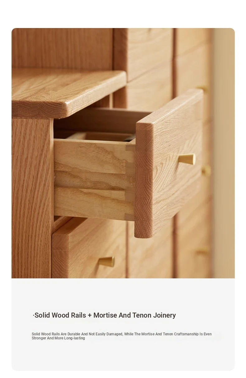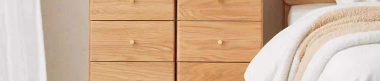 "Scandinavian Oak Solid Wood Dresser - Modern Minimalist Wall-Mounted Storage Cabinet for Bedroom Organization"