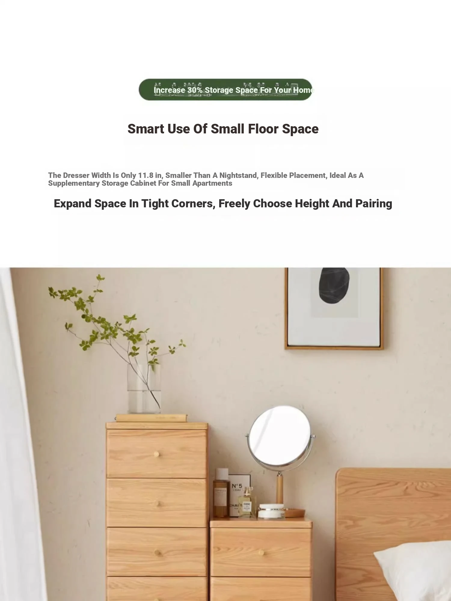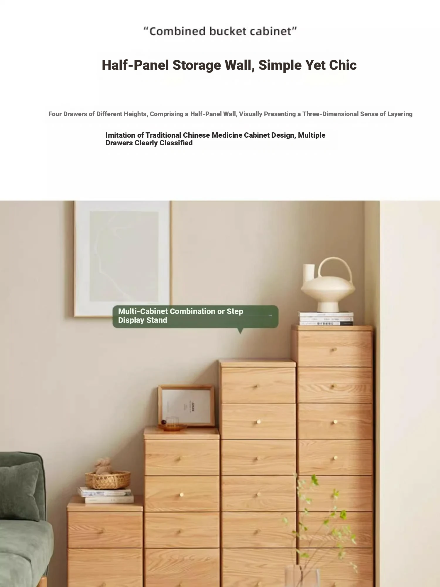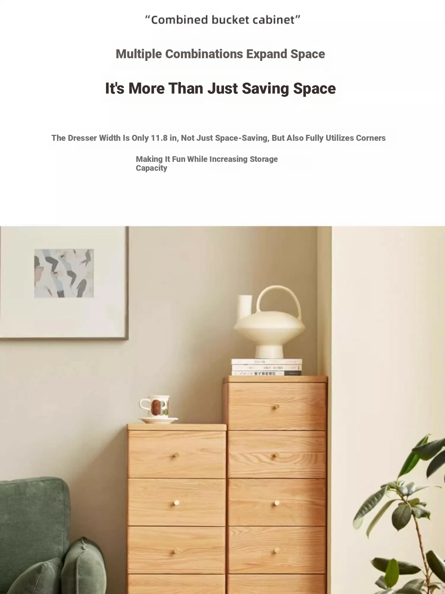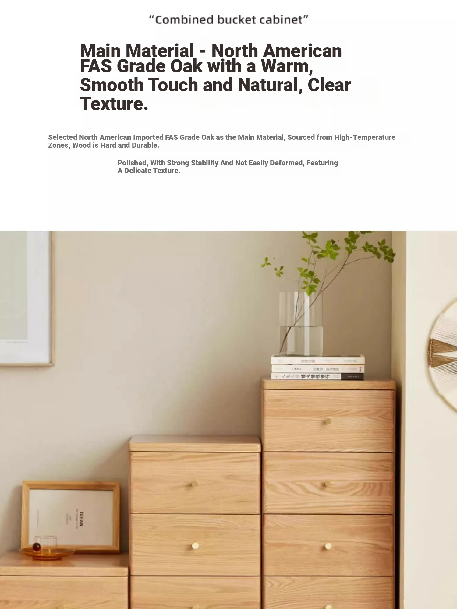 "Scandinavian Oak Solid Wood Dresser - Modern Minimalist Wall-Mounted Storage Cabinet for Bedroom Organization"