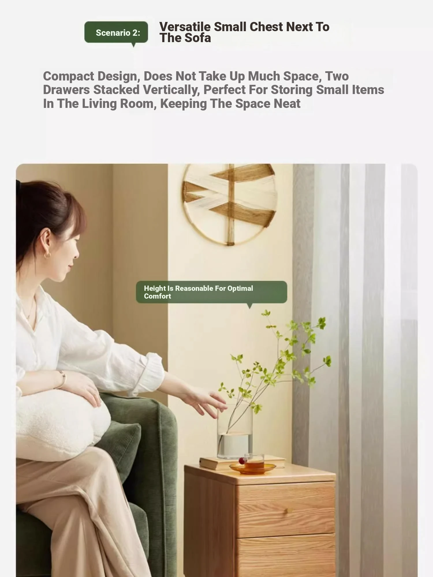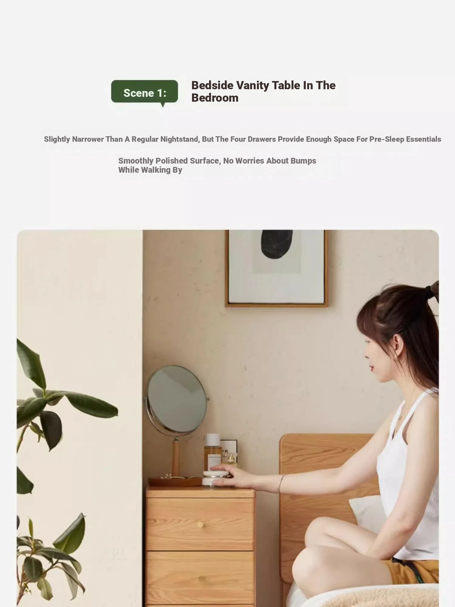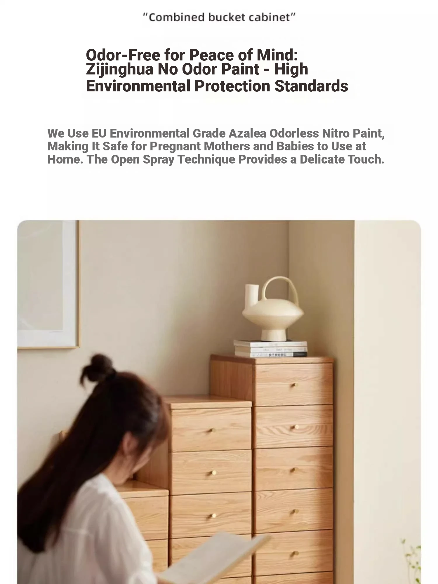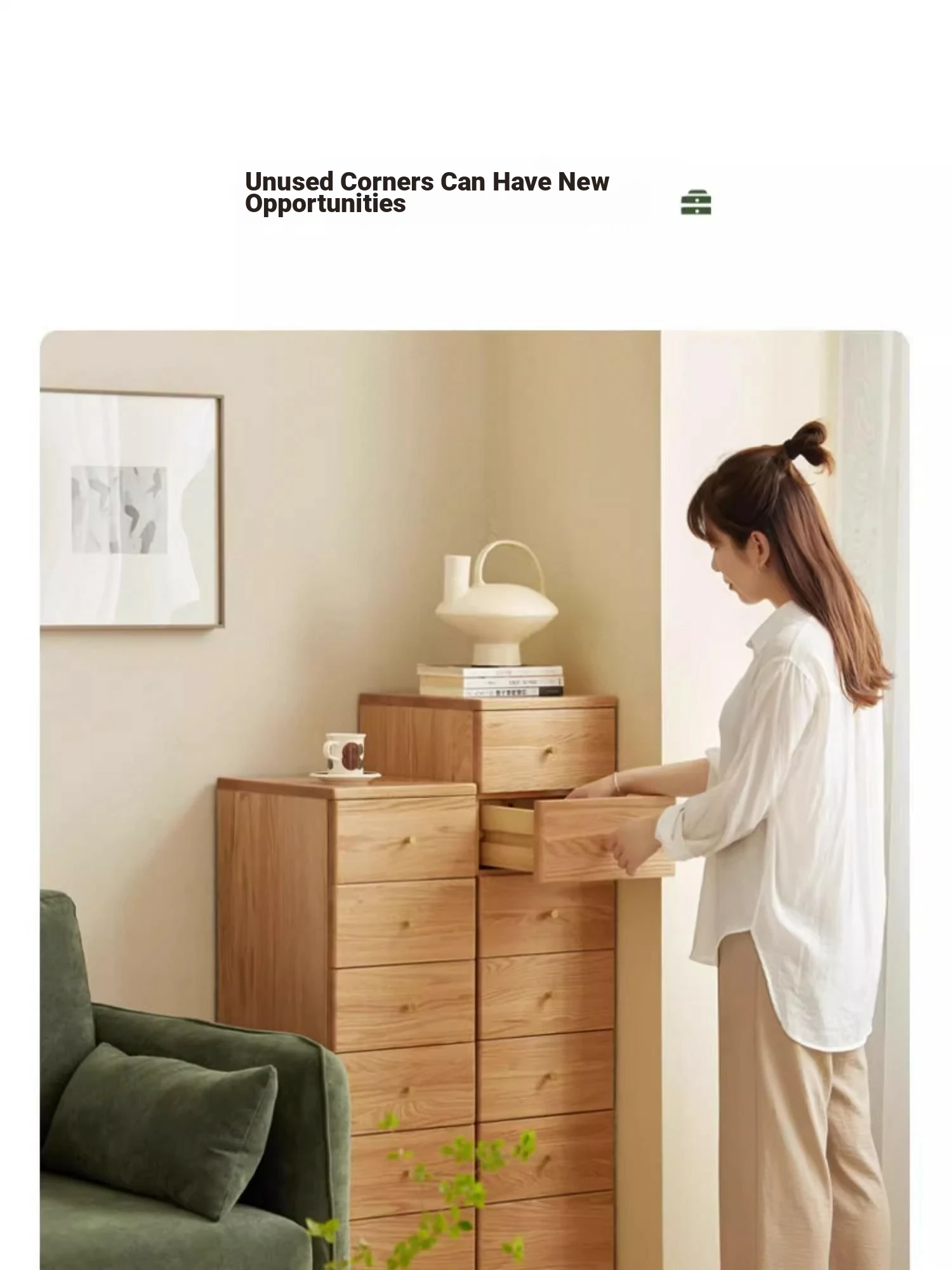 "Scandinavian Oak Solid Wood Dresser - Modern Minimalist Wall-Mounted Storage Cabinet for Bedroom Organization"