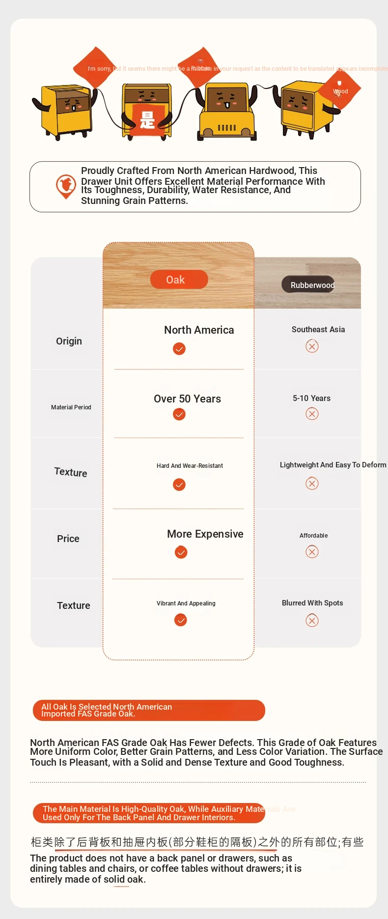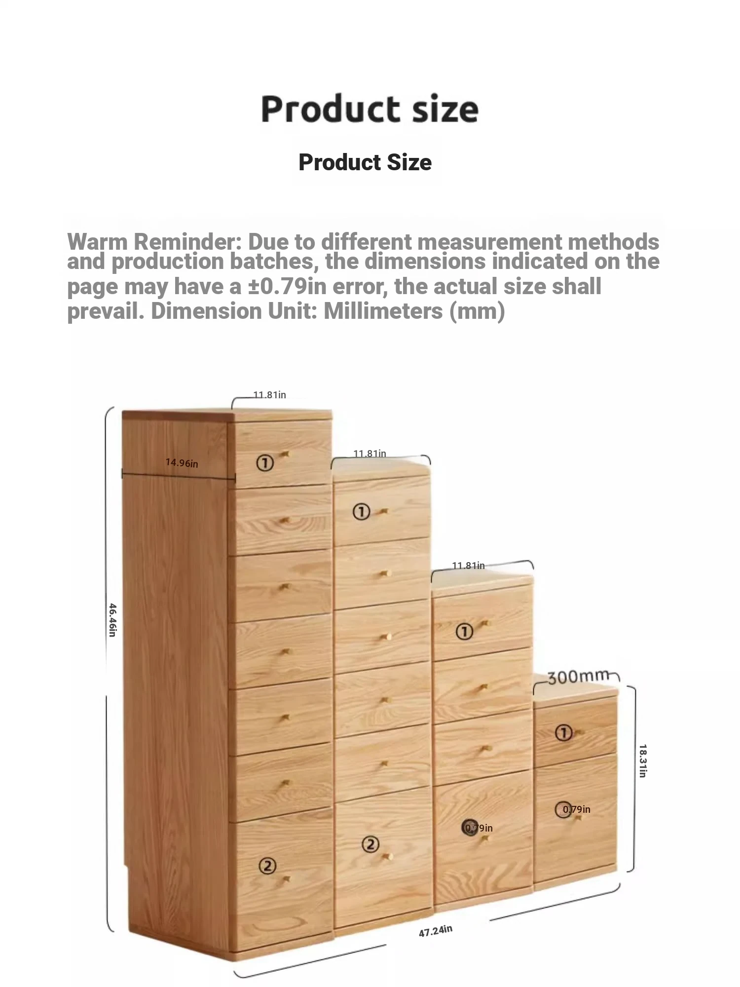 Log color -29.53 in high four-drawer cabinet (11.81in*14.96in*29.53in)