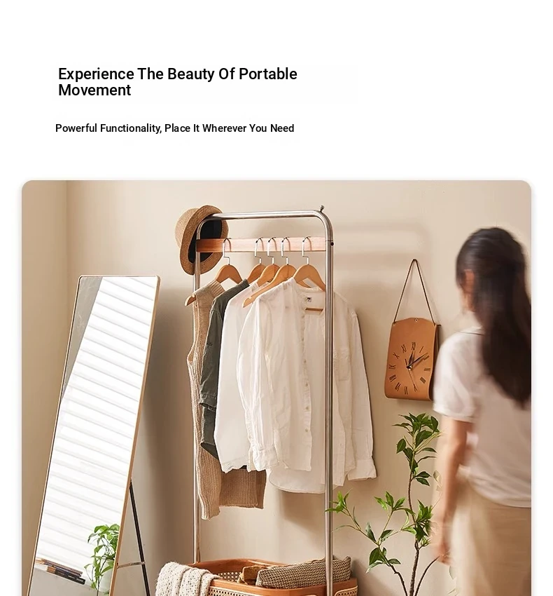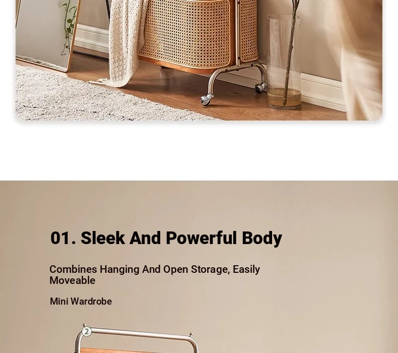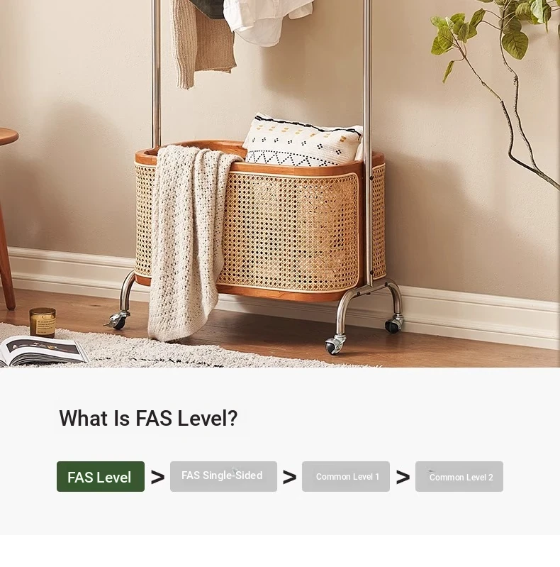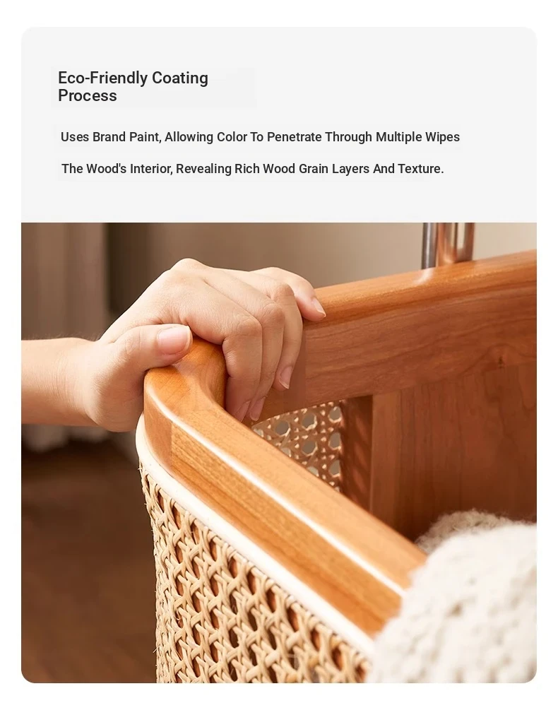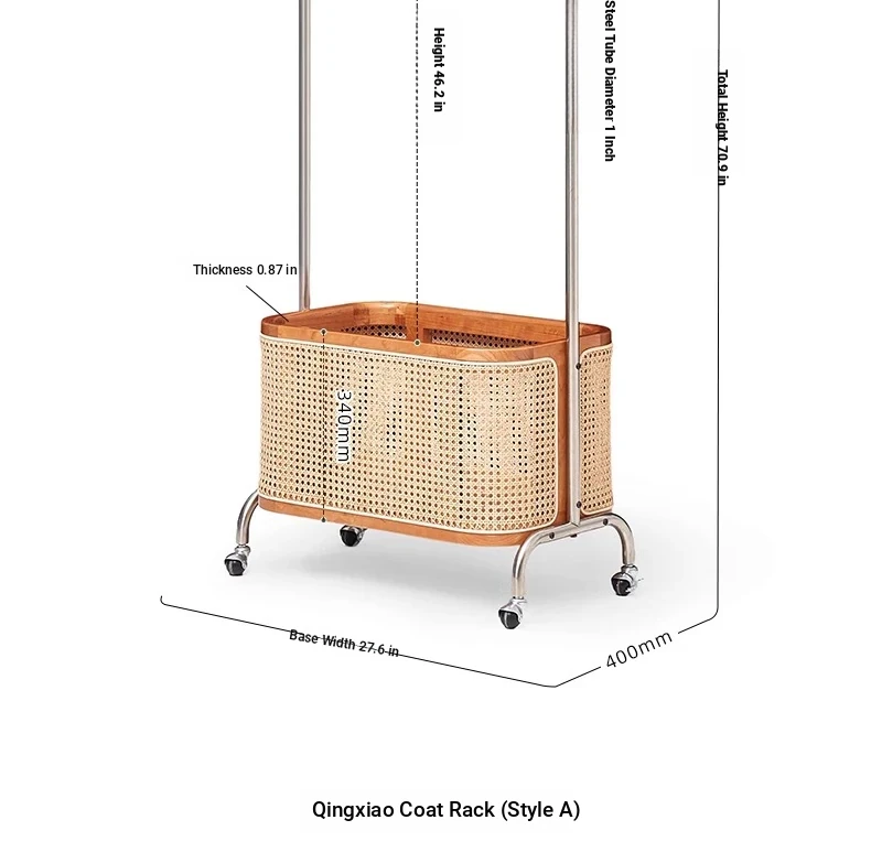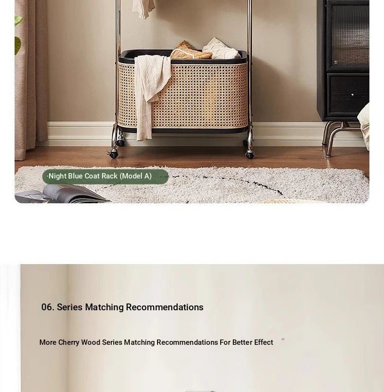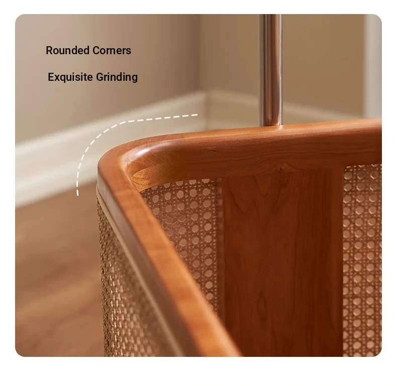 Scandinavian Solid Wood Cherry Coat Rack with Rattan Woven Hangers – Stylish & Functional Bedroom Storage Solution – Portable Home Clothes Drying Rack