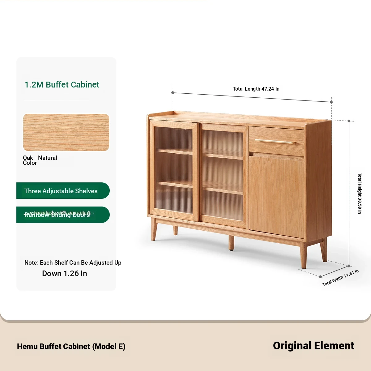 [Oak-Log Color] 47.24 in Sideboard (E)(47.24in*11.81in*38.58in)