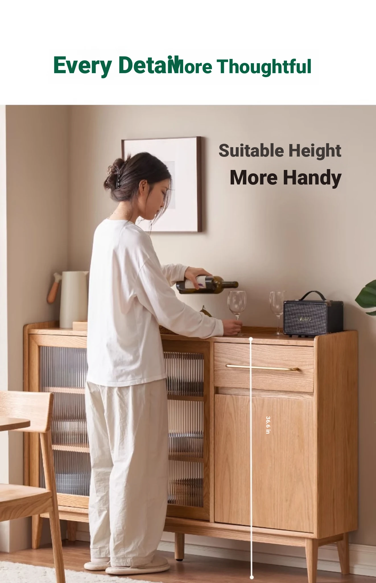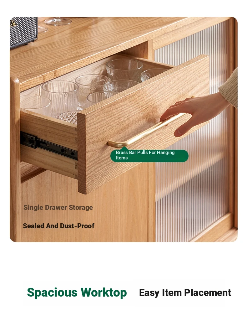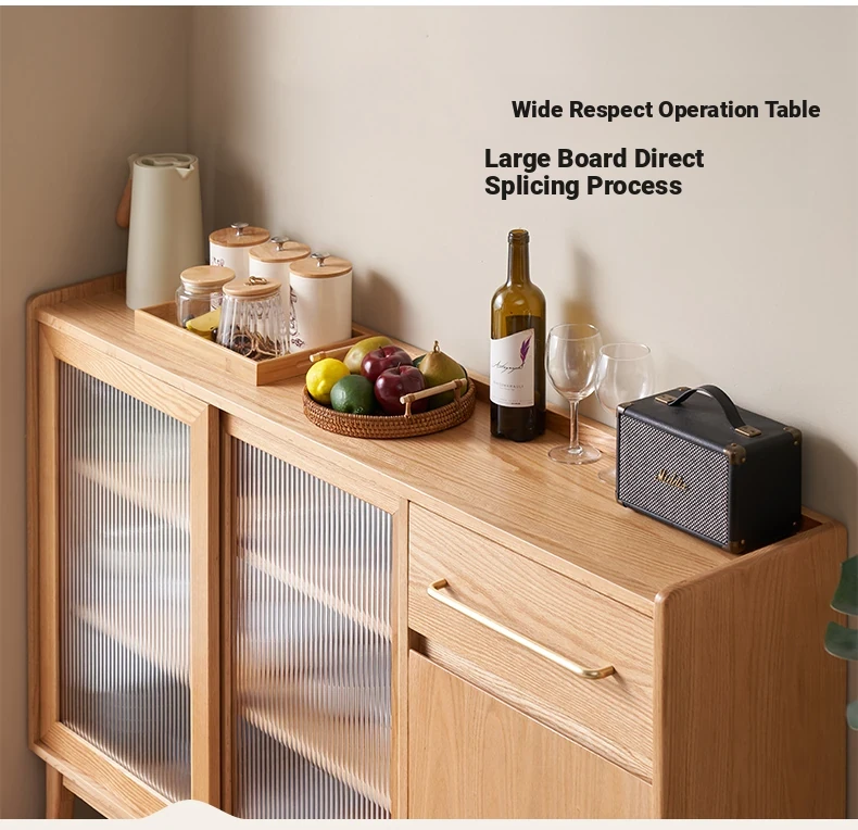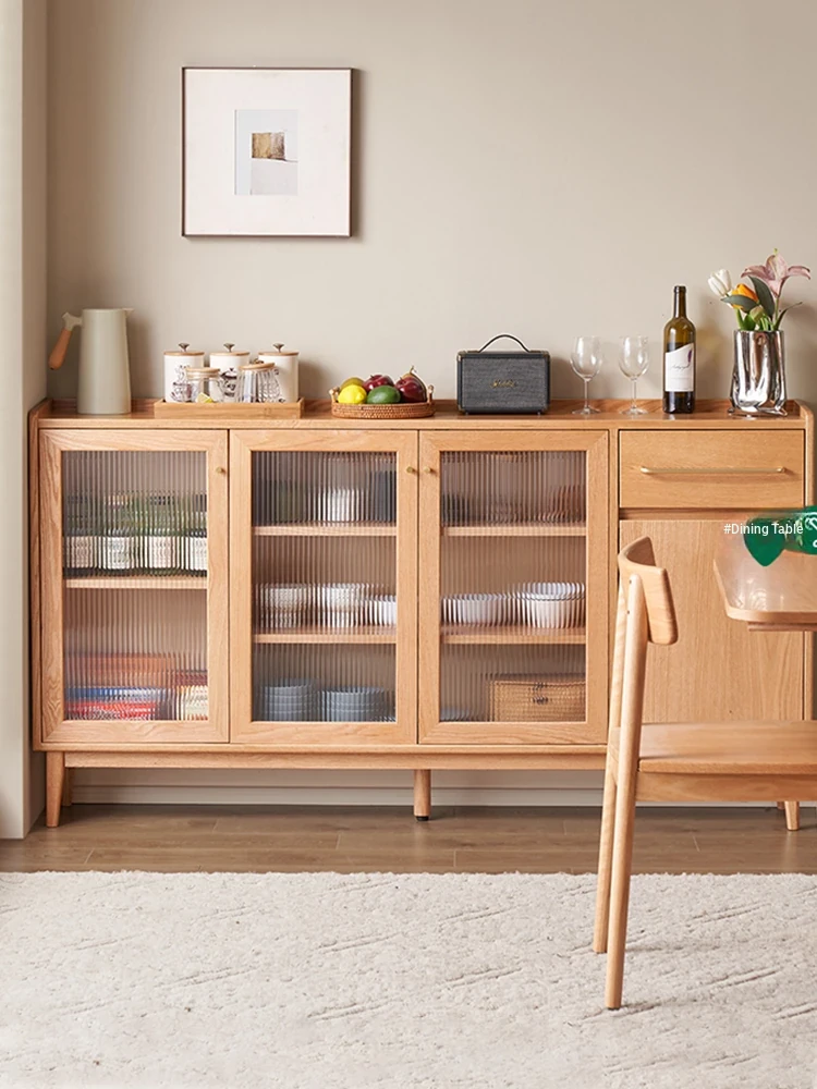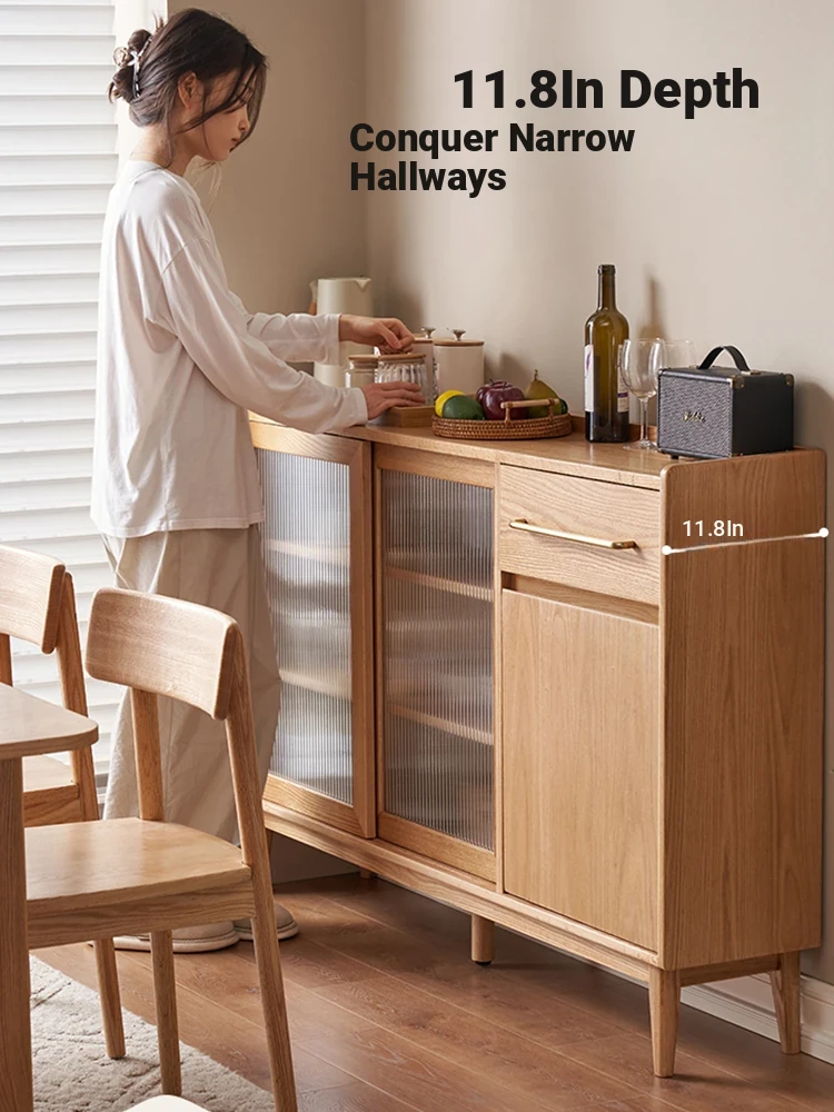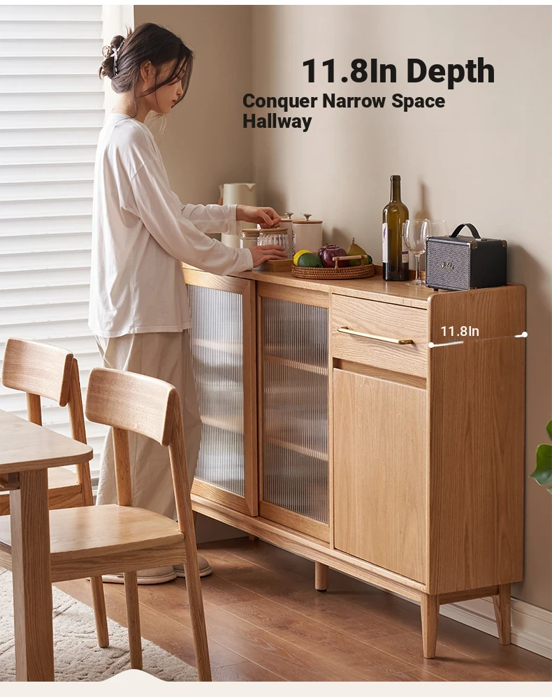 "Scandinavian Style Solid Wood Sideboard - Compact Kitchen Storage Cabinet, Oak Coffee Server for Small Spaces, Perfect for Modern Homes"