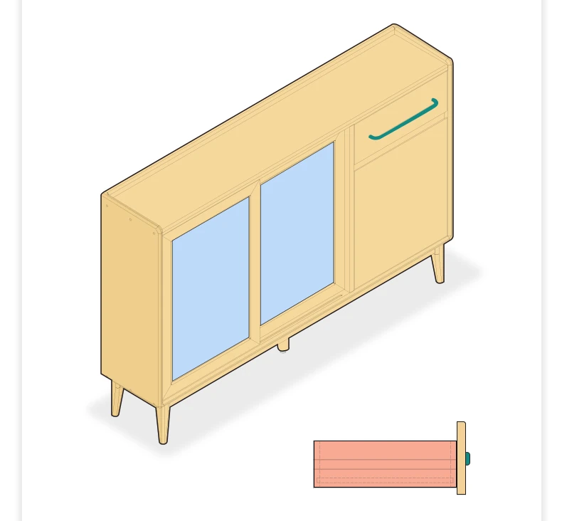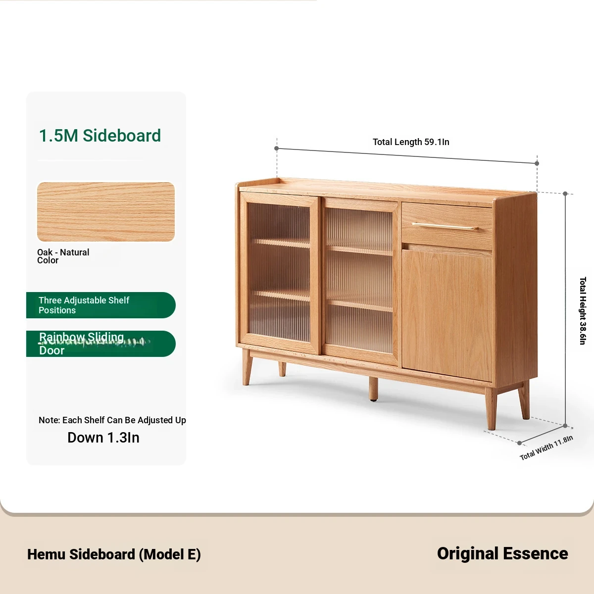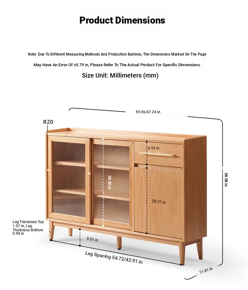 [Oak-Log Color] 59.06 in Sideboard (E)(59.06in*11.81in*38.58in)