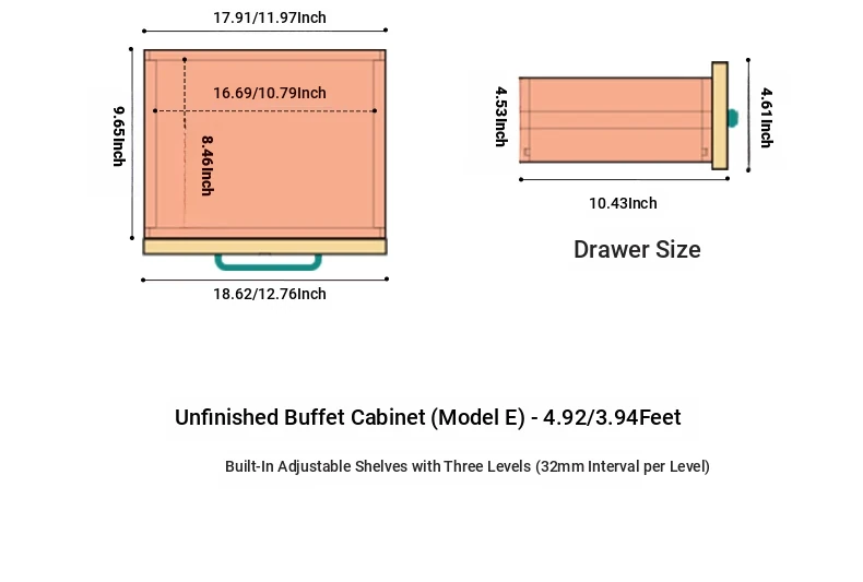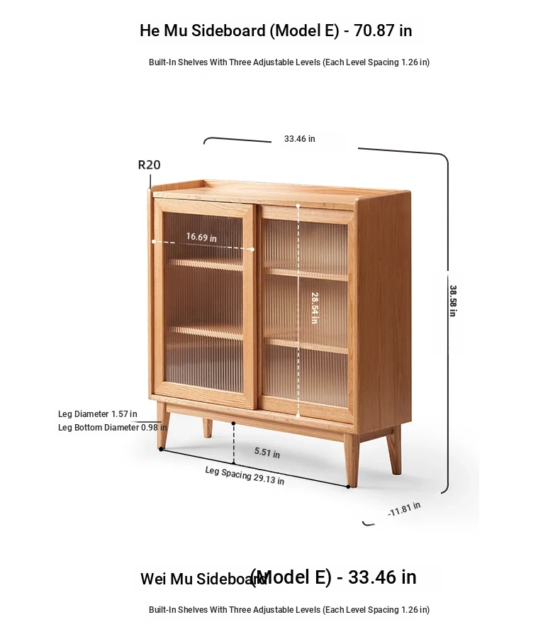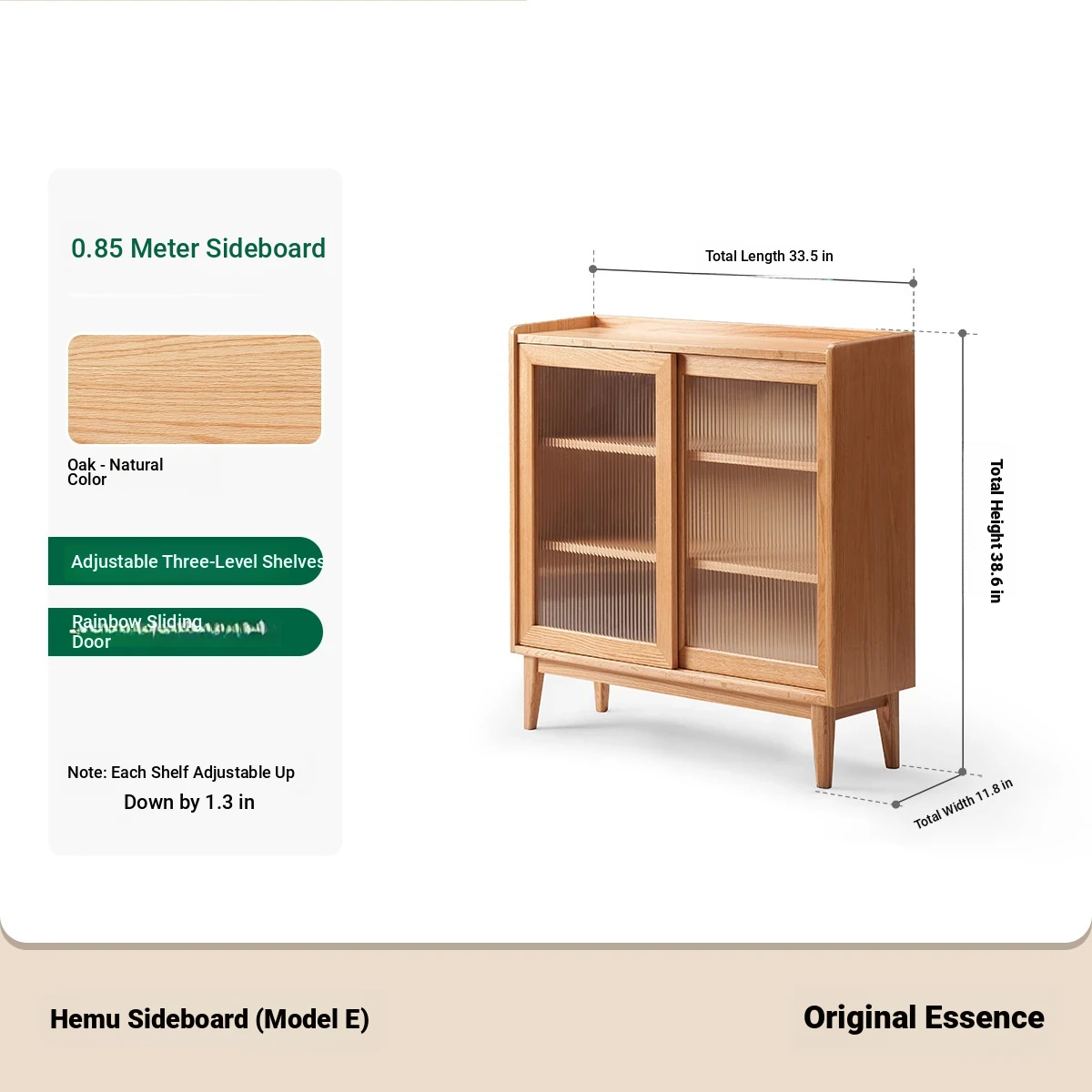 [Oak-Log Color] 33.46 in Sideboard (E)(33.46in*11.81in*38.58in)
