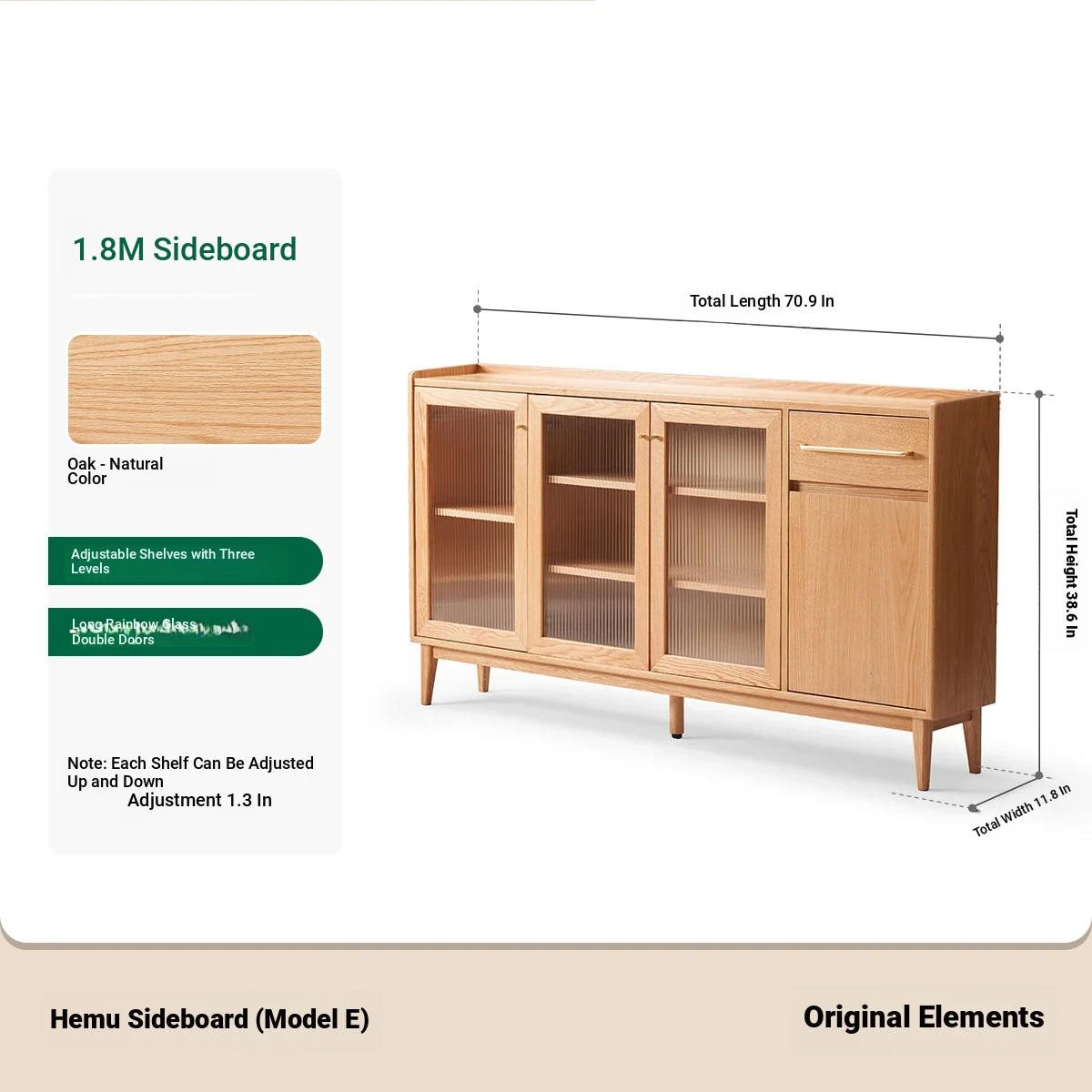 [Oak-Log Color] 70.87 in Sideboard (E)(70.87in*11.81in*38.58in)