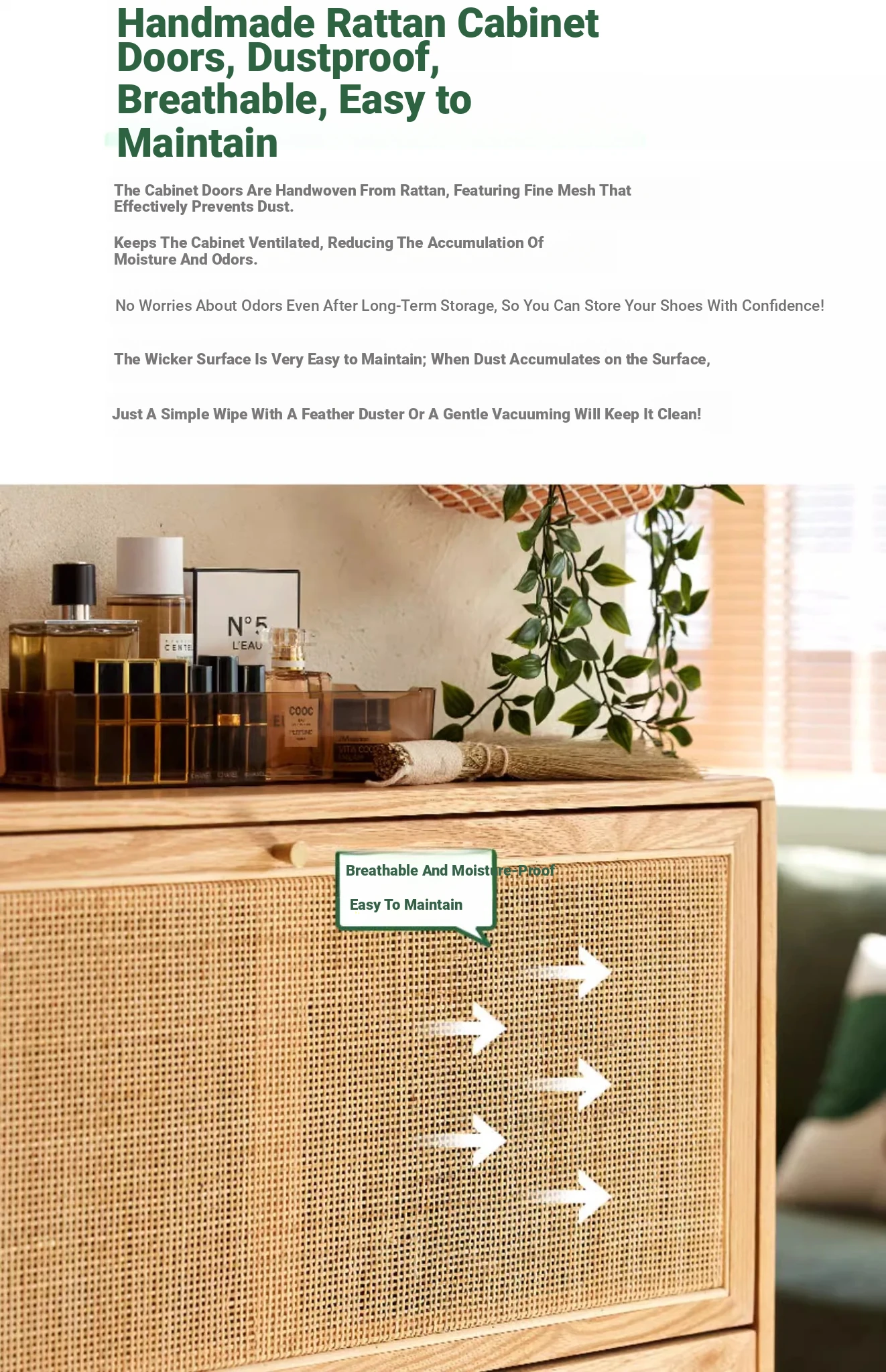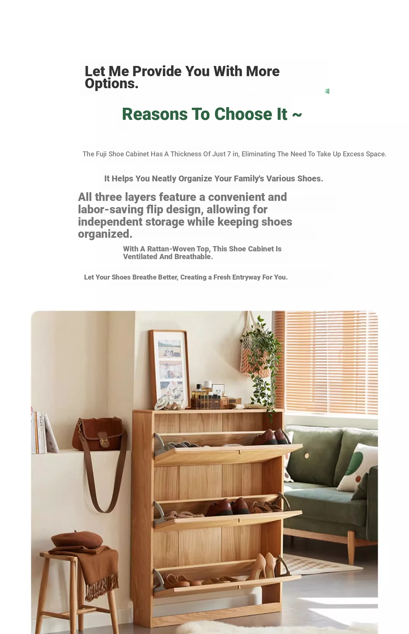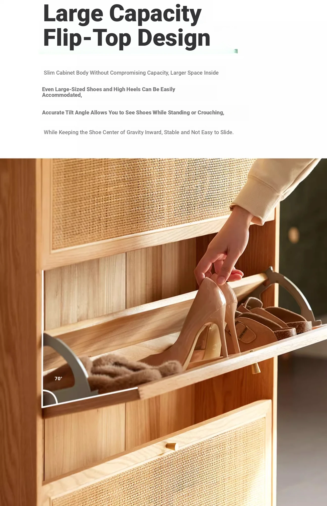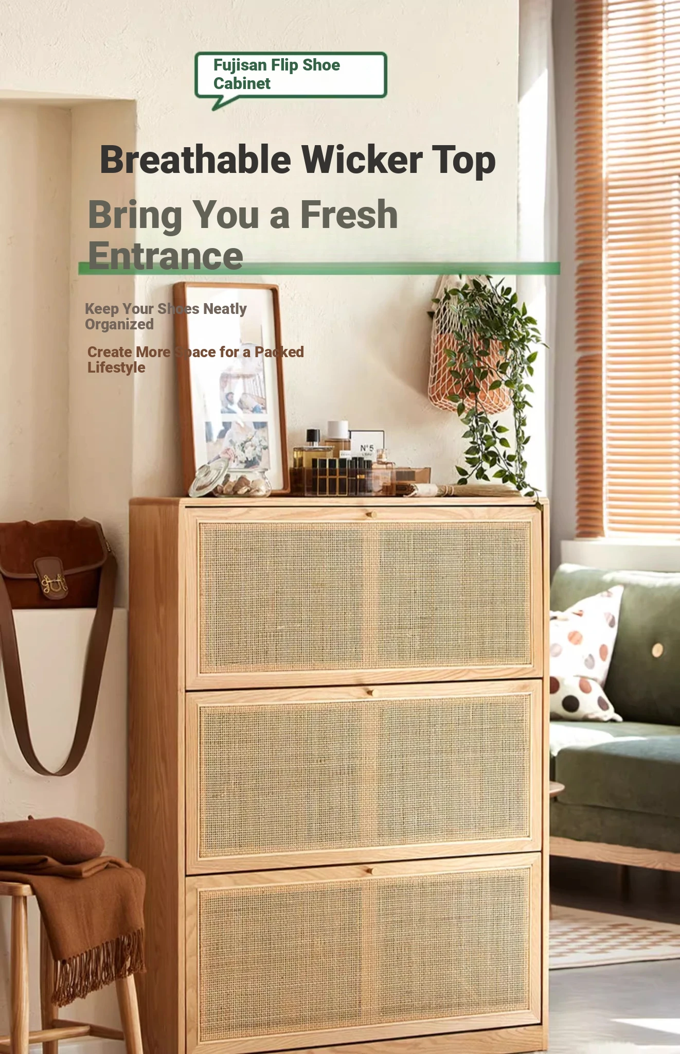 Slim Solid Wood Shoe Cabinet for Home Entryway – Narrow Wall-Mounted Design, Natural Oak, Rattan Accents, Ultra-Slim Profile for Small Spaces, Perfect for Organizing Your Shoes!