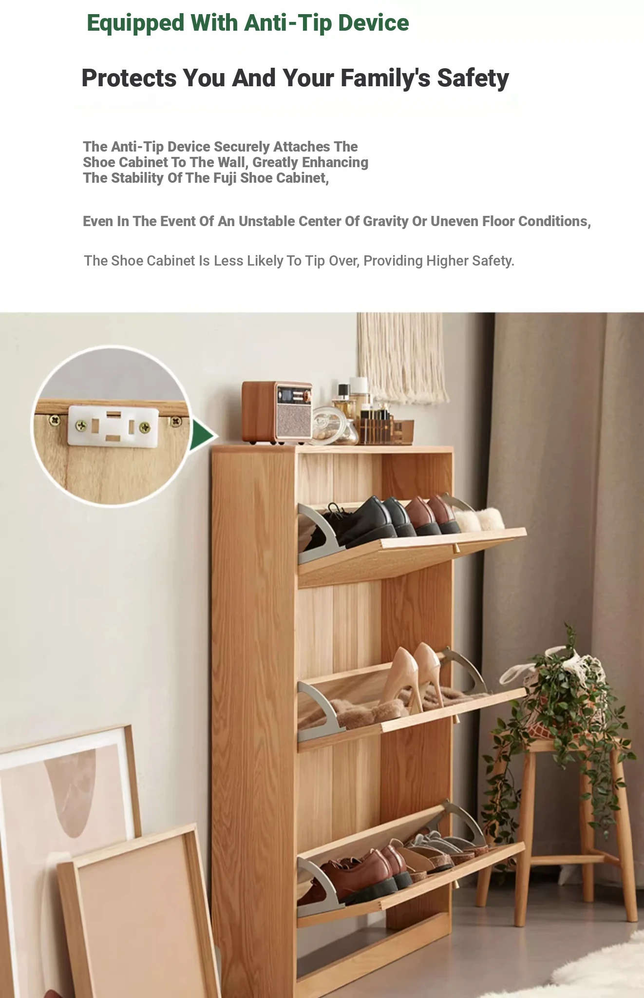 Log color -34.65in ultra-thin tipping shoe cabinet [live sample, floor price]]