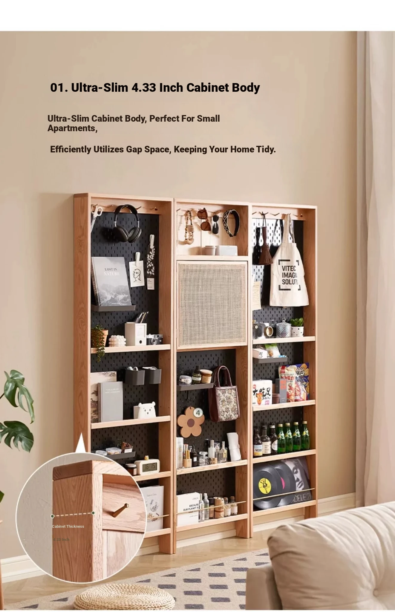 Slim Wooden Wall-Mounted Cabinet for Entryway - Ultra-Thin Storage Rack, Perfect for Small Spaces, Floor-Standing Organizer, Ideal for Narrow Gaps