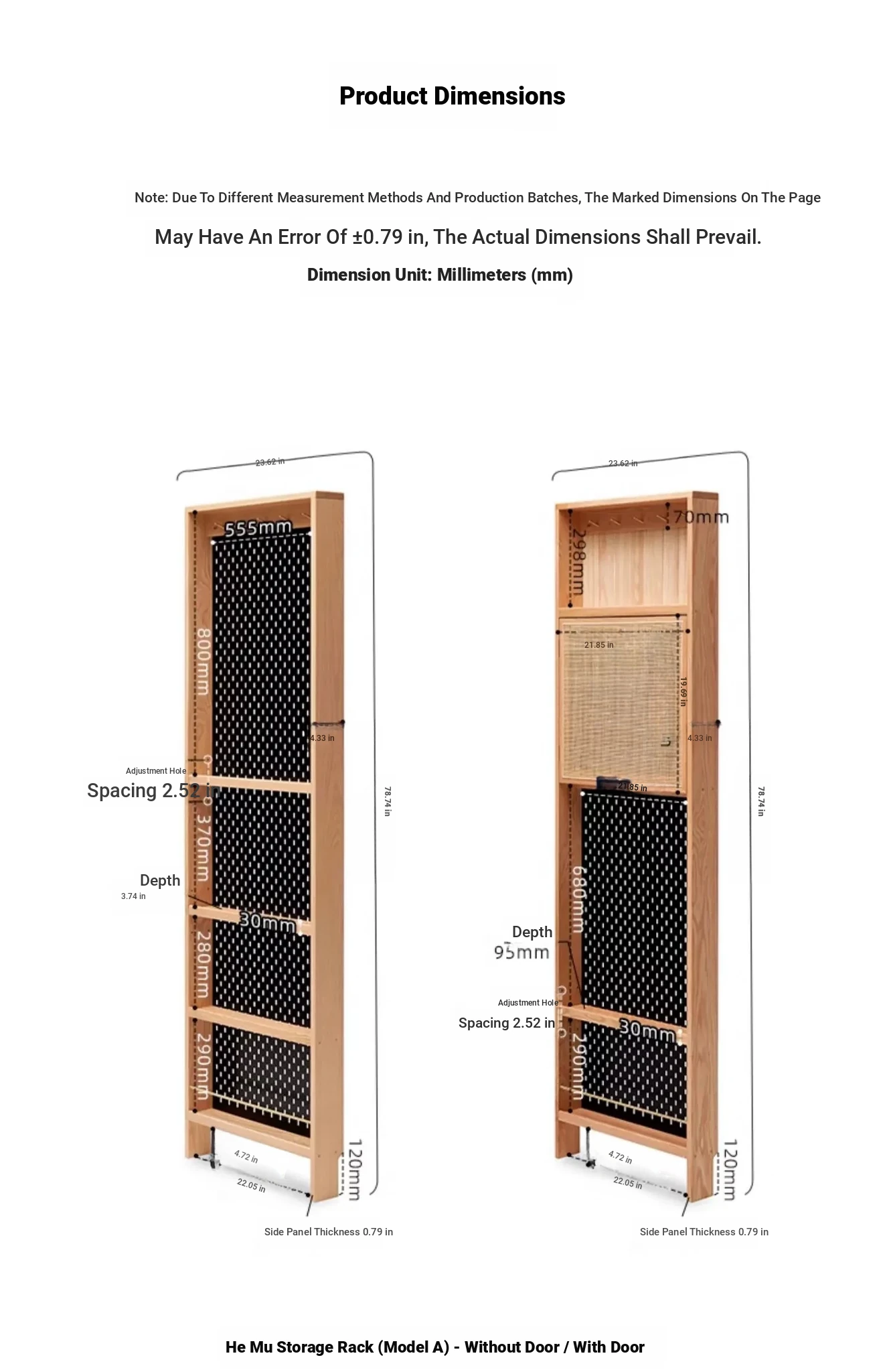 Log color -23.62 in shelf with door (23.62in*4.33in*78.74in)