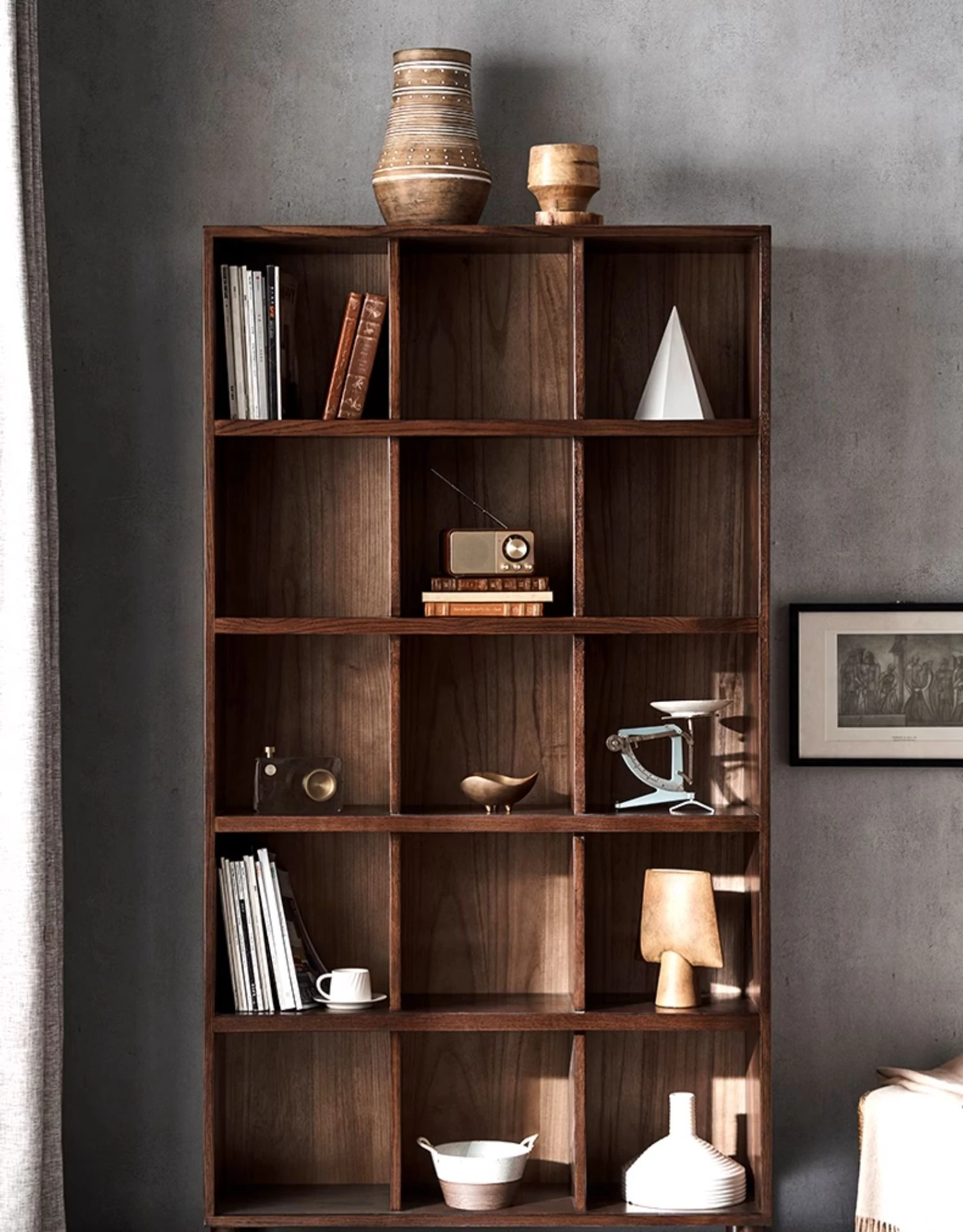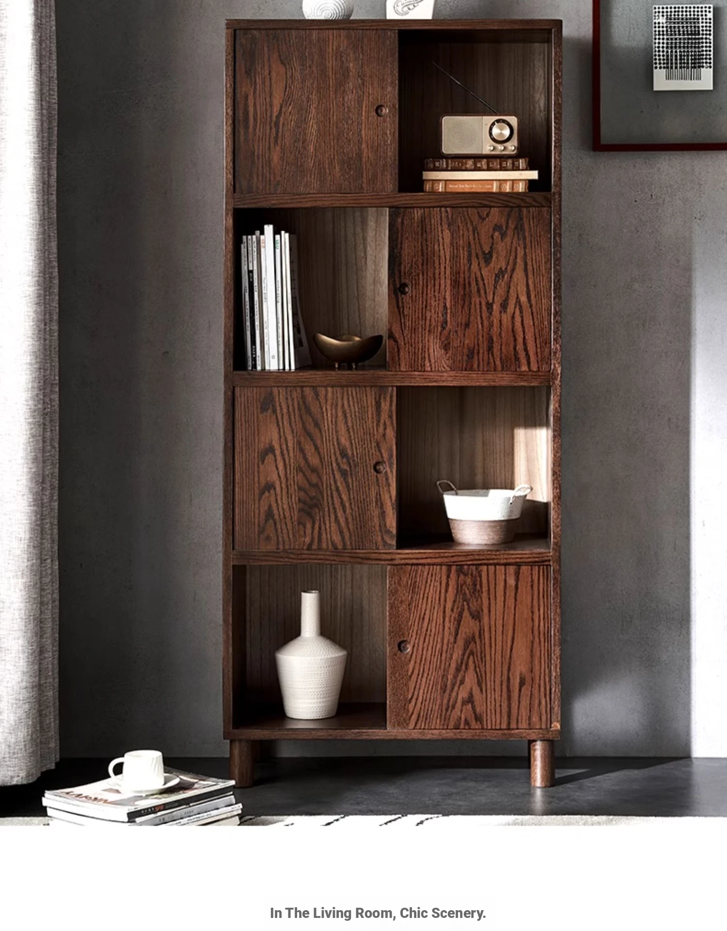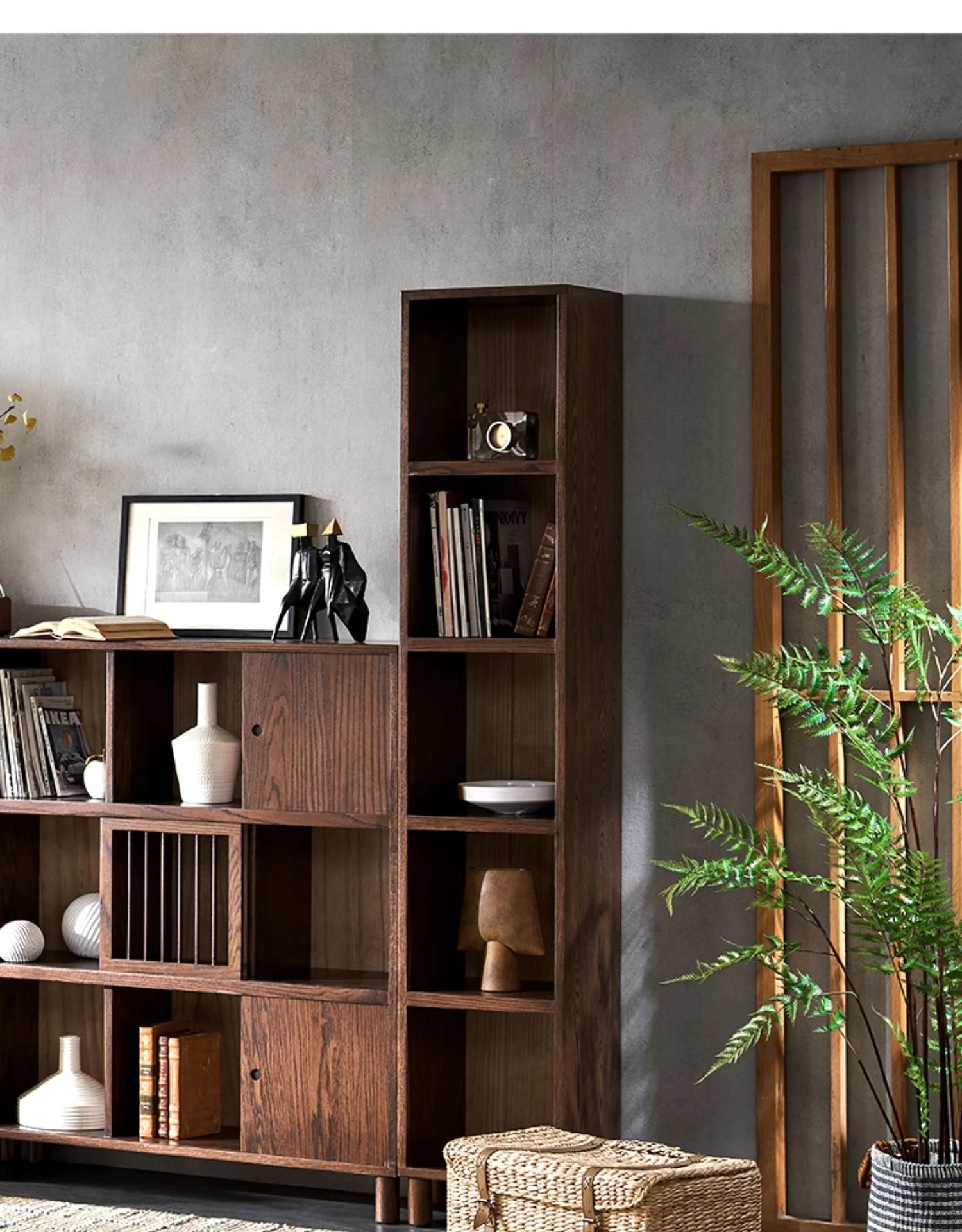 "Solid Wood Bookshelf - Scandinavian Style Modular Bookshelf for Living Room & Study, DIY Elegant Oak Storage Solution for Modern Minimalist Home"