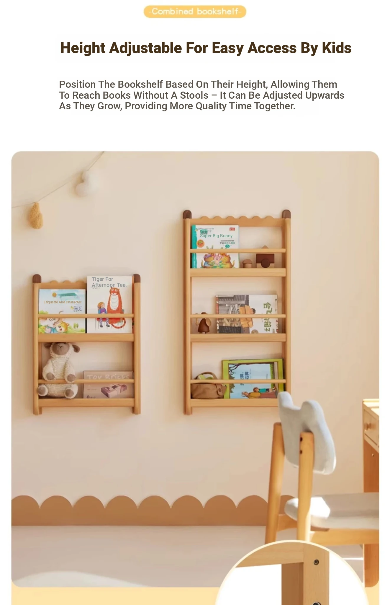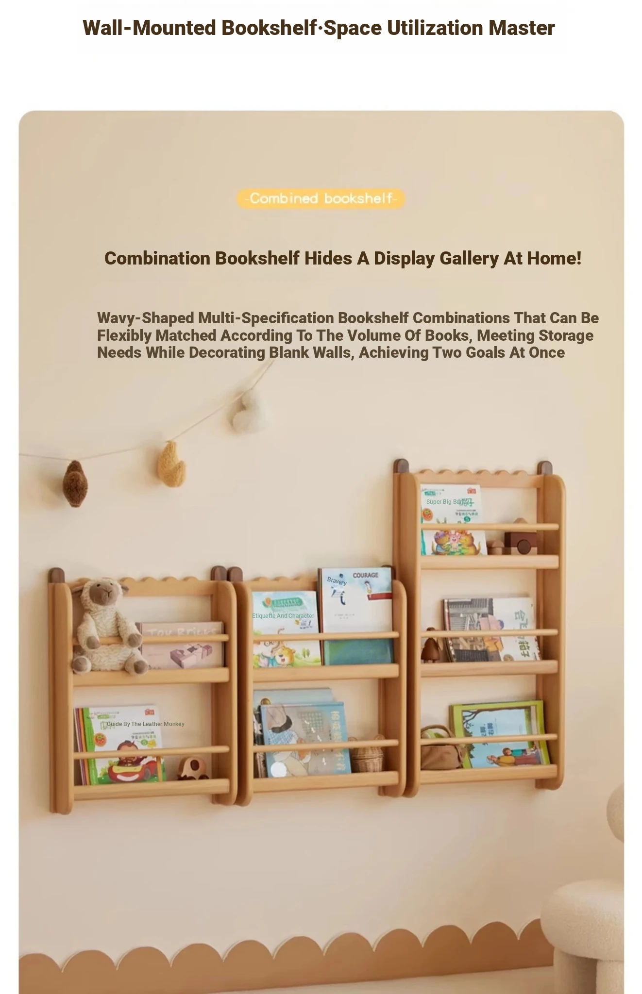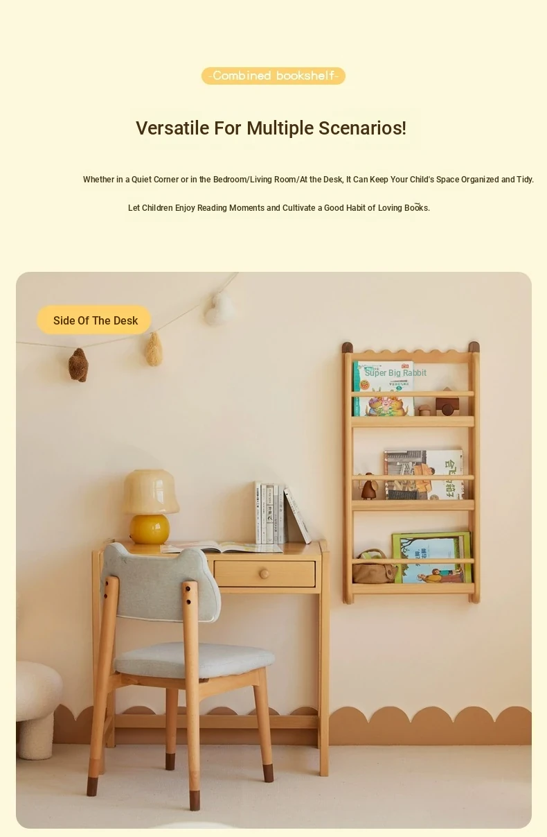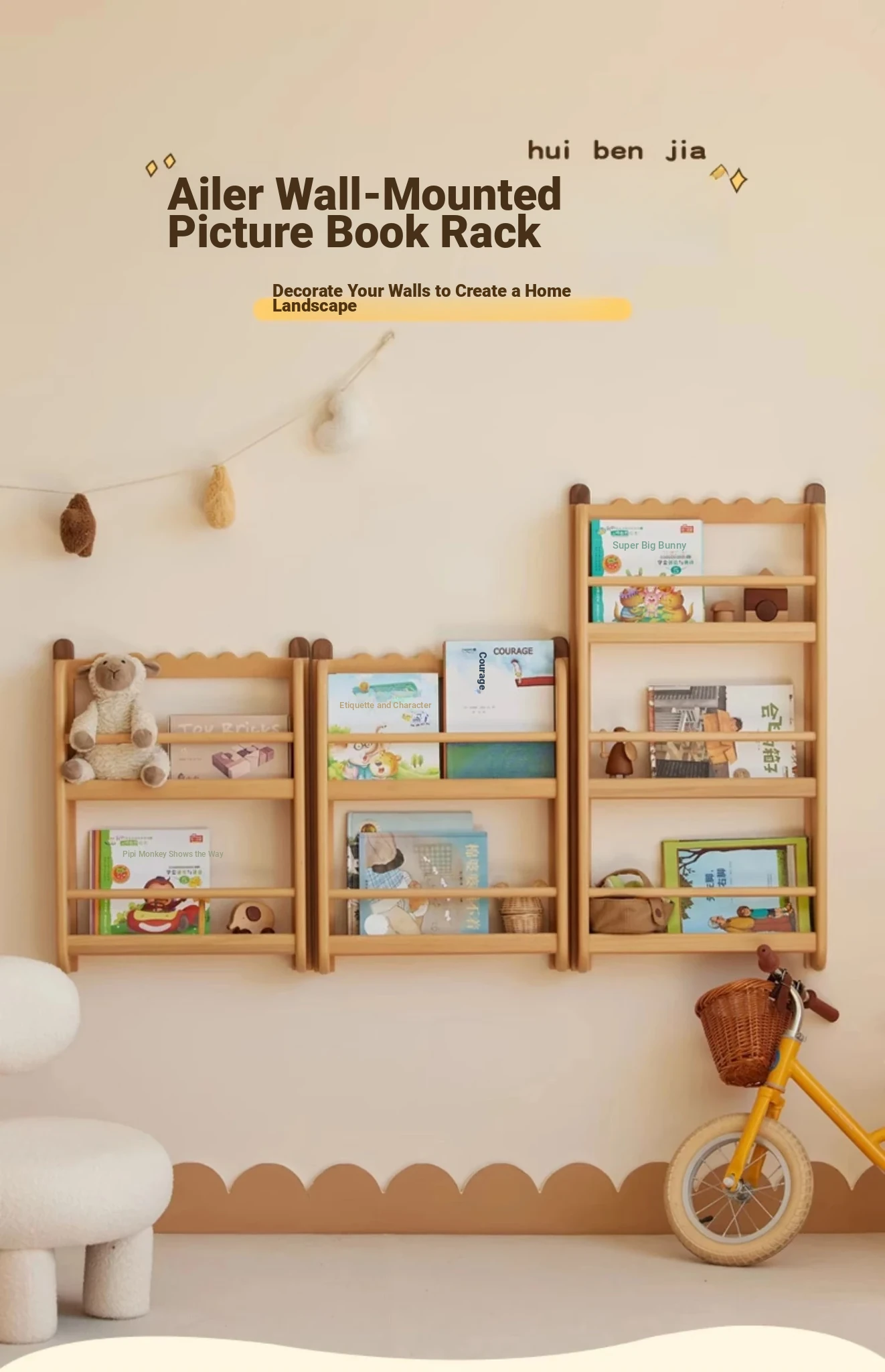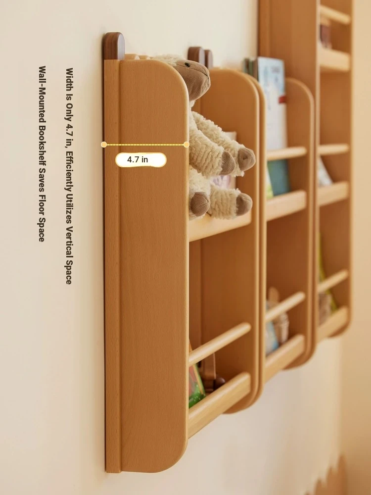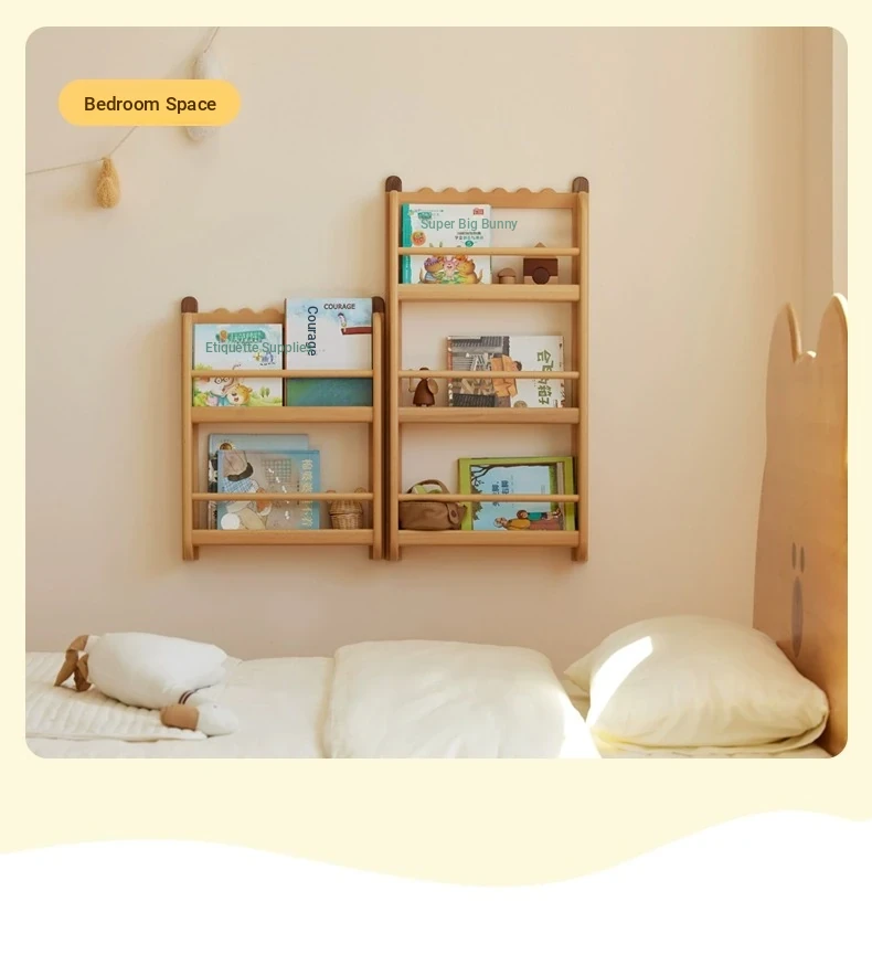 Solid Wood Children's Bookshelf - Wall-Mounted Storage Rack for Kids' Picture Books, Stylish Space-Saving Design for Small Homes. Perfect for Organizing and Displaying Your Child's Favorite Stories!