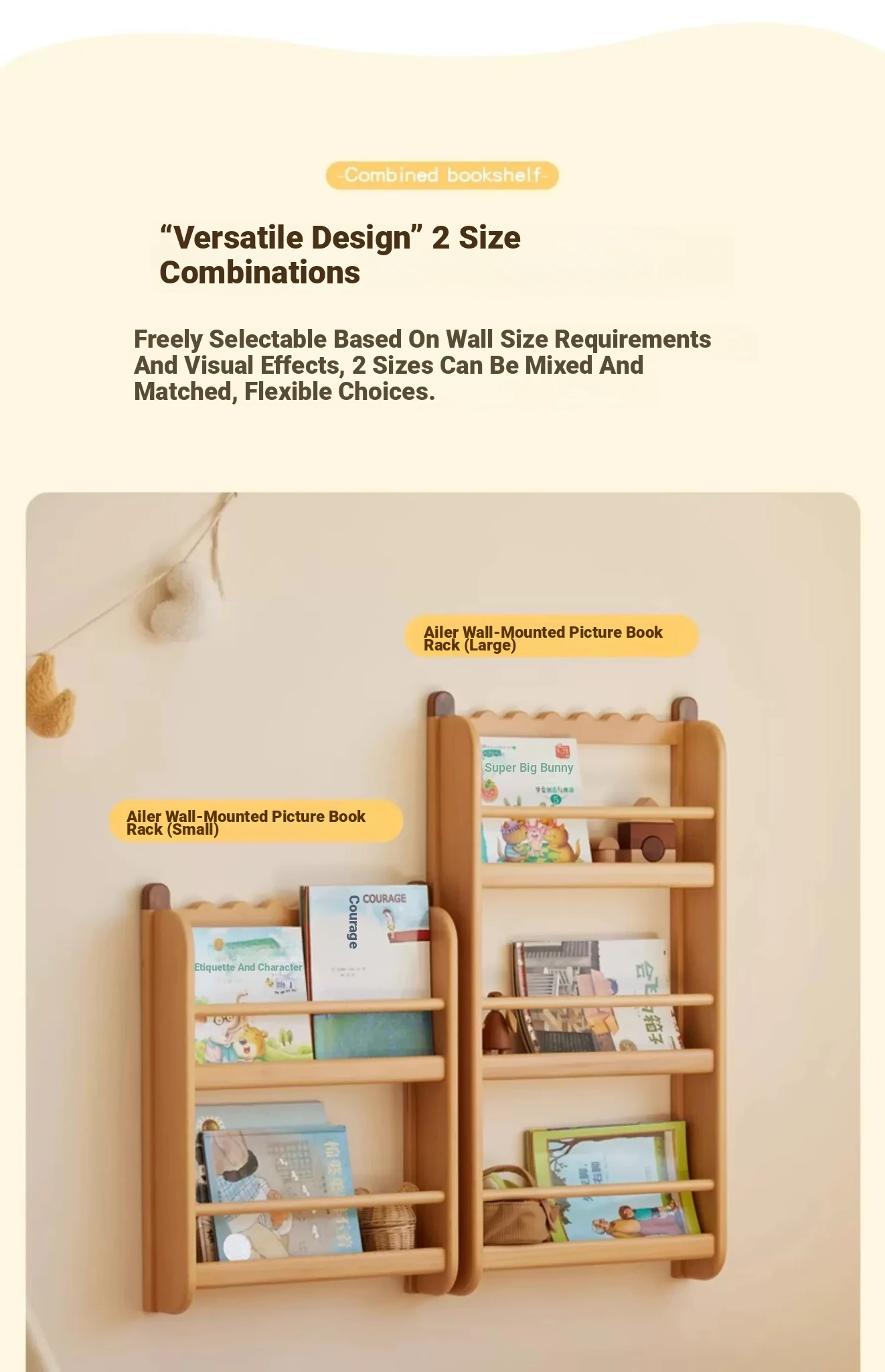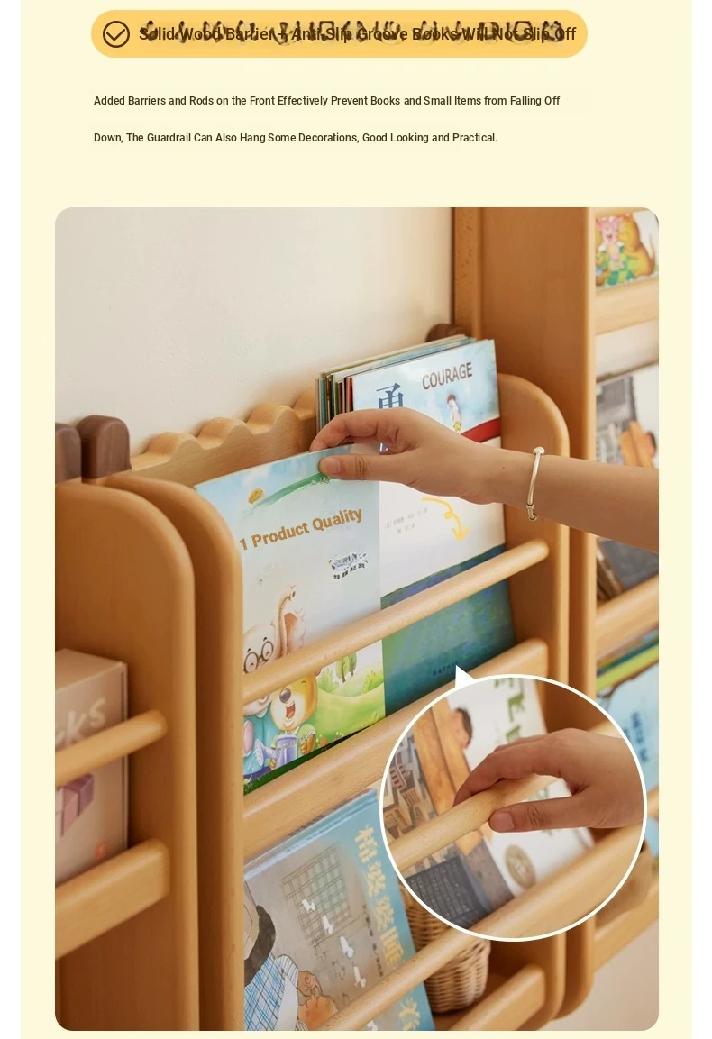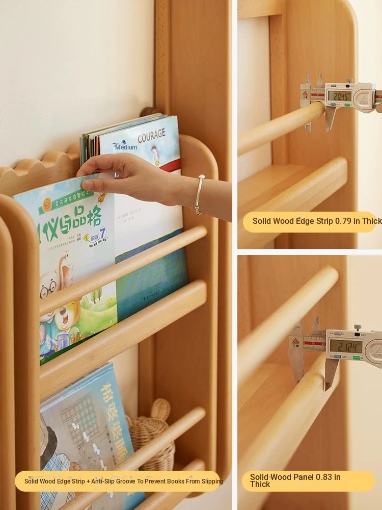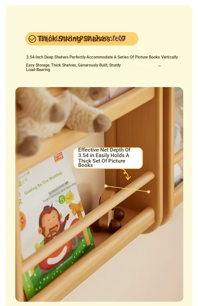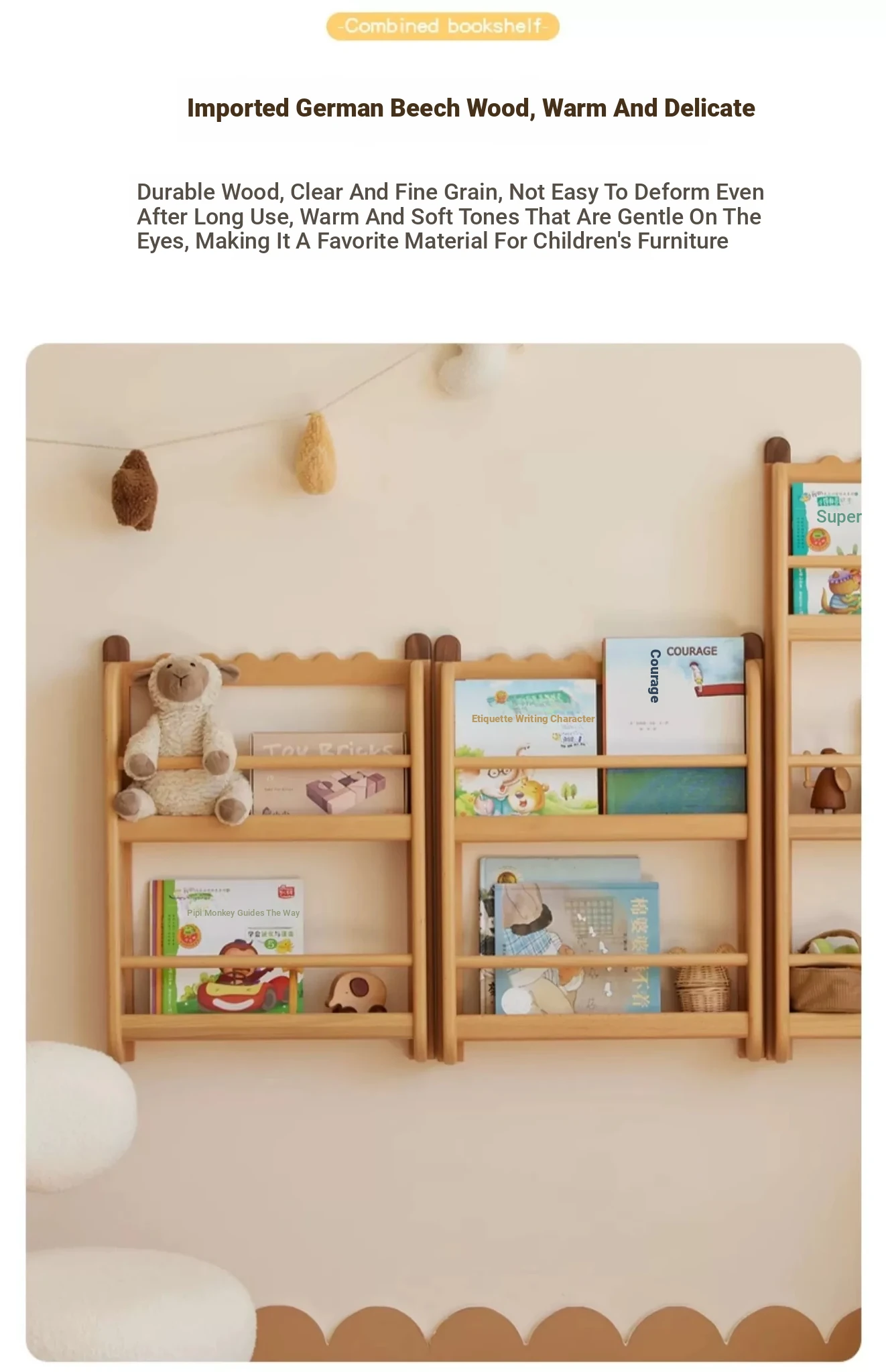 Solid Wood Children's Bookshelf - Wall-Mounted Storage Rack for Kids' Picture Books, Stylish Space-Saving Design for Small Homes. Perfect for Organizing and Displaying Your Child's Favorite Stories!