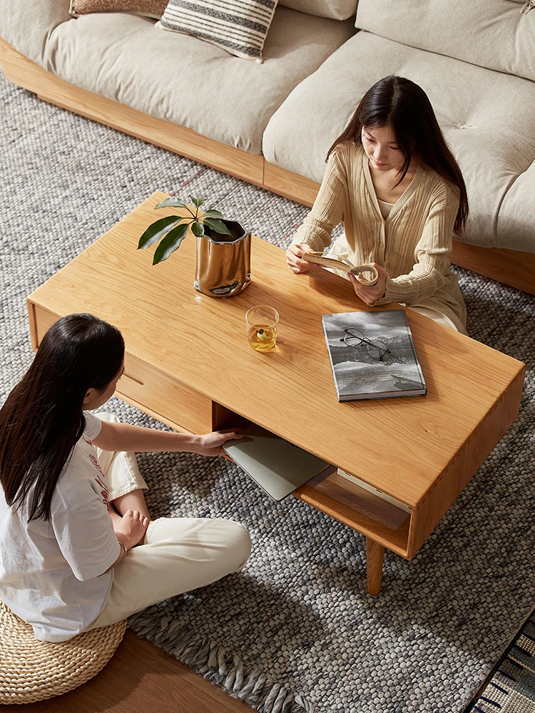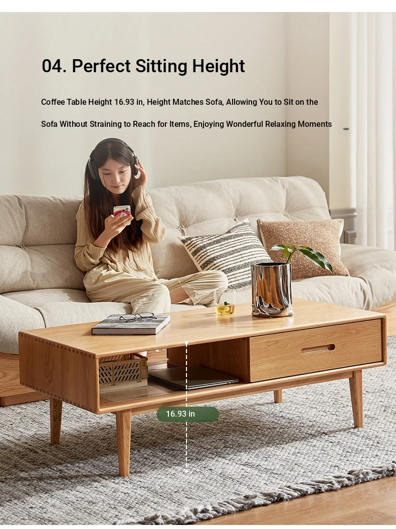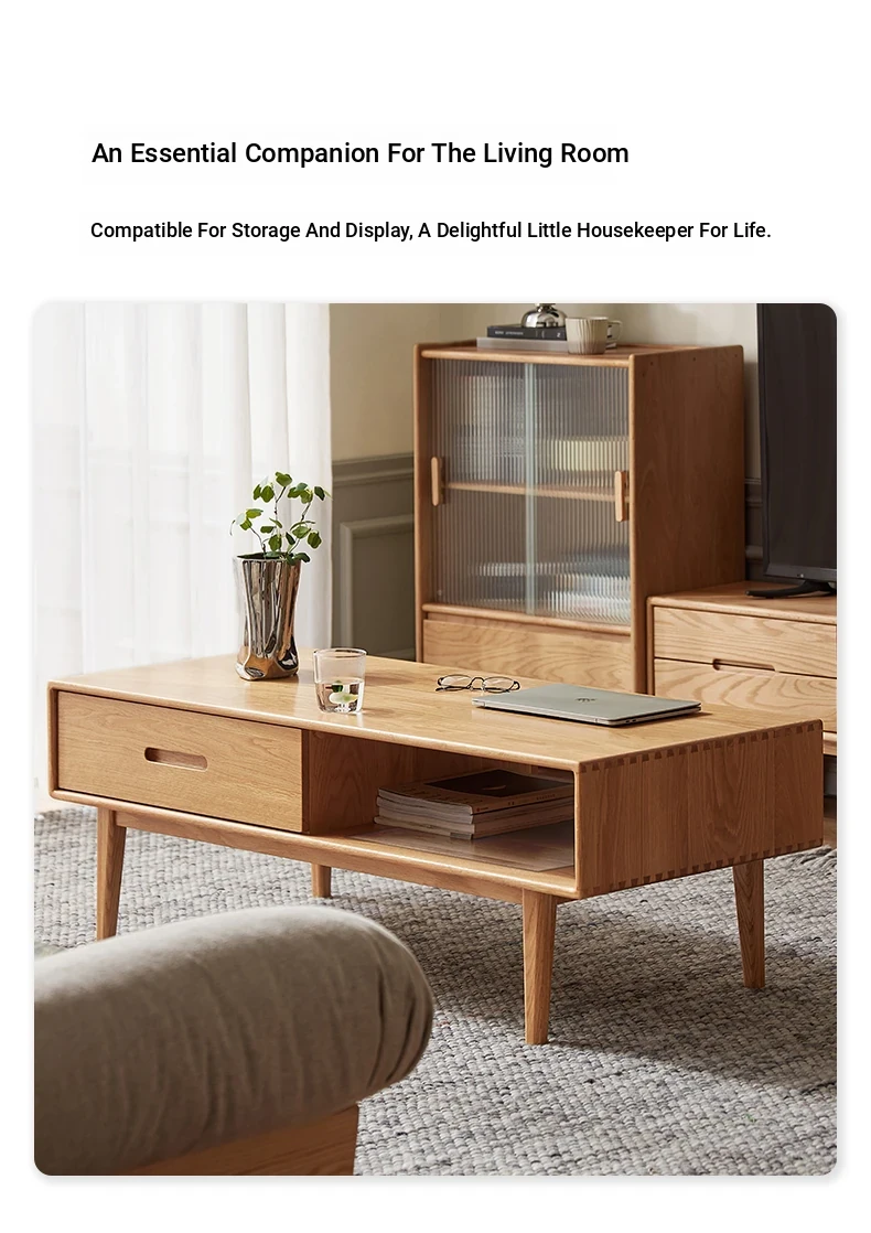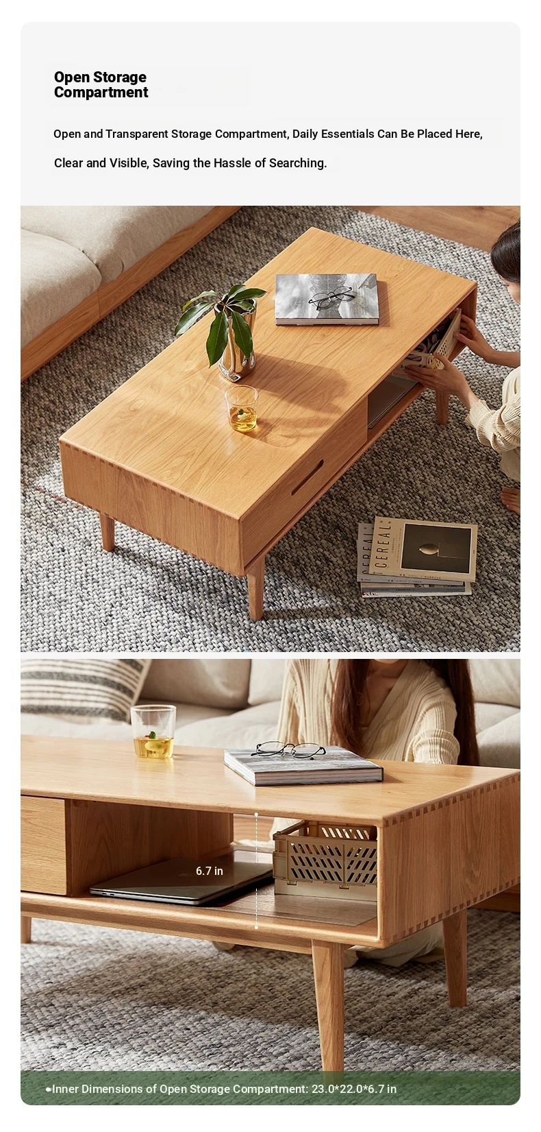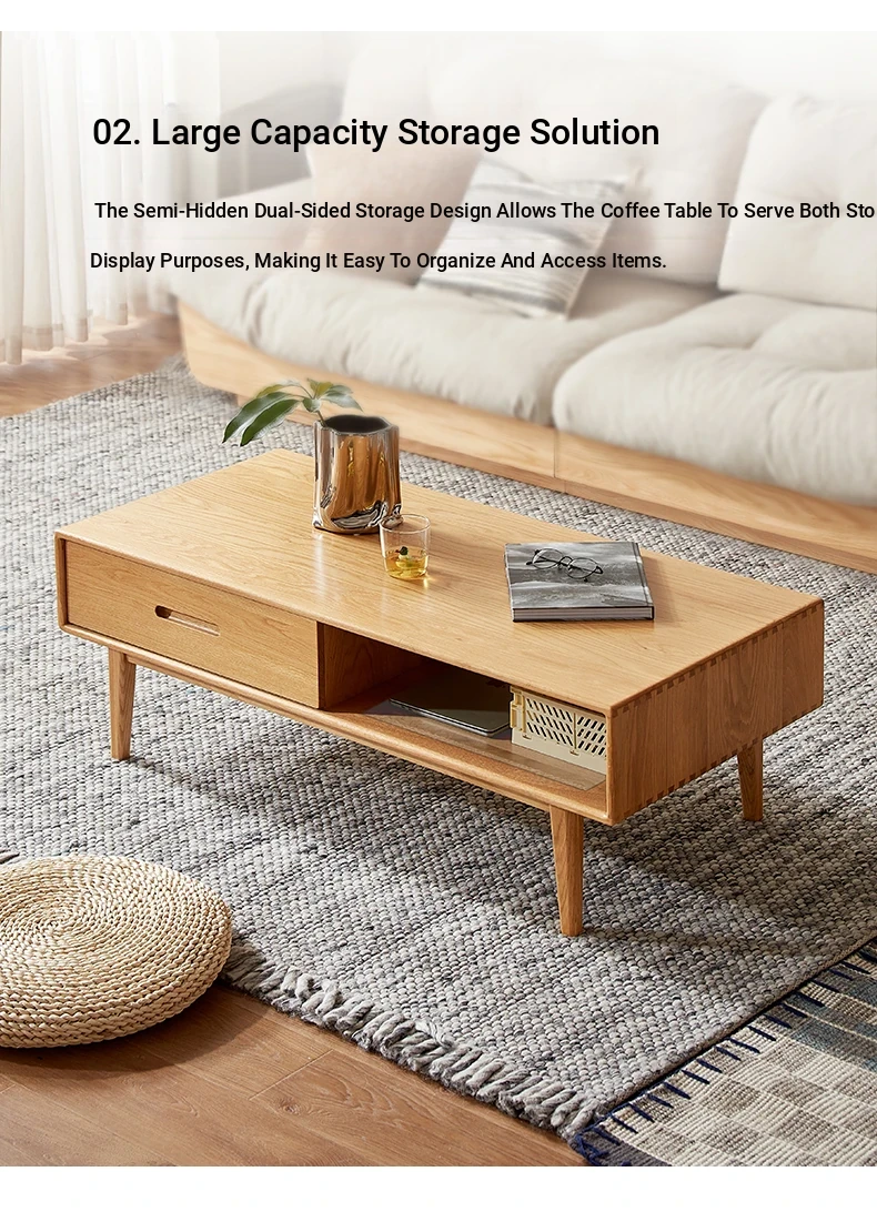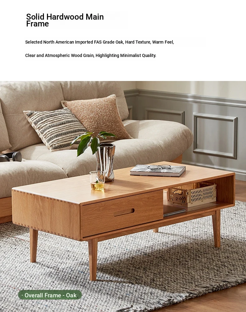 Solid Wood Coffee Table – Scandinavian Modern Minimalist Tea Table in Oak for Small Living Rooms – Stylish and Functional Storage Solution for Your Home