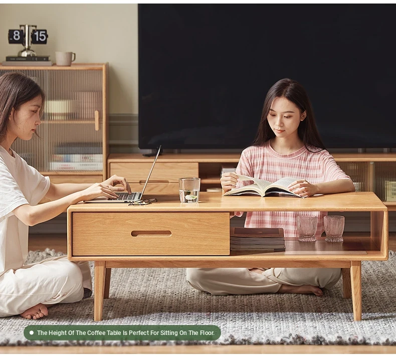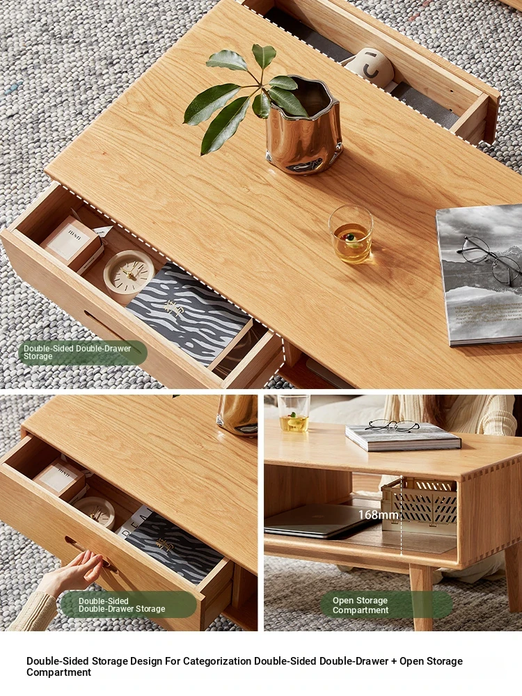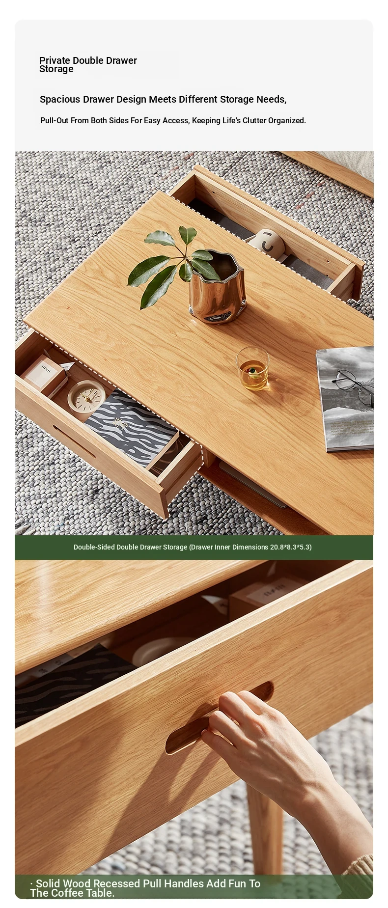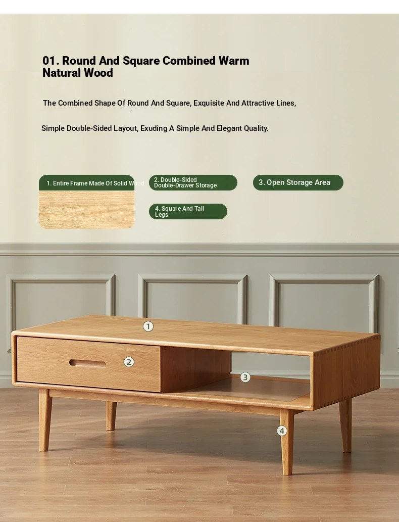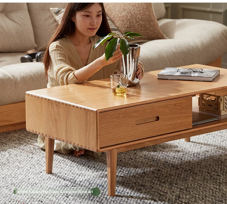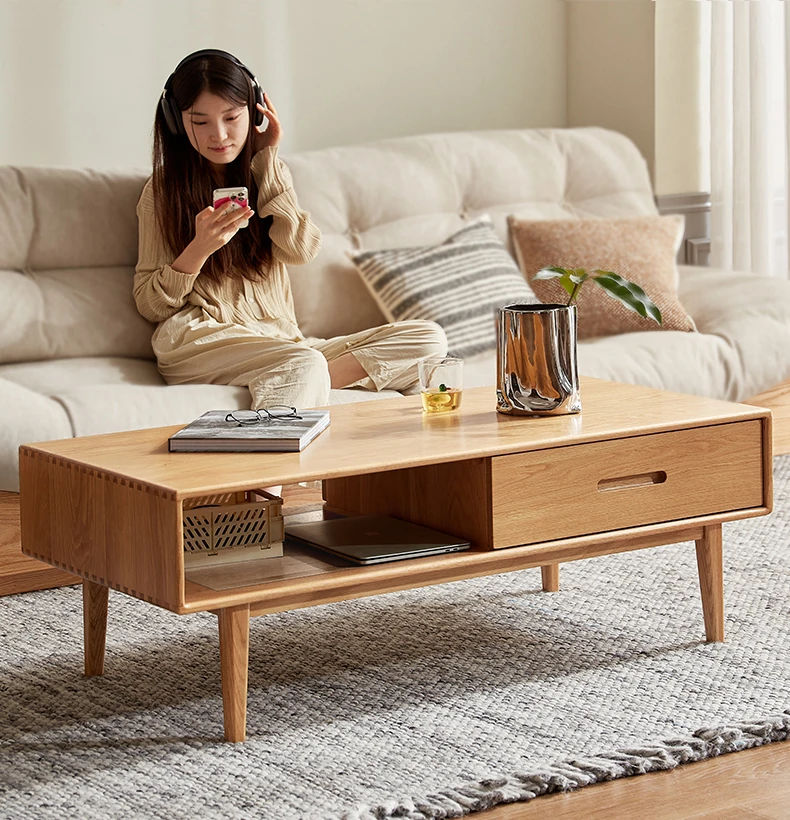 Solid Wood Coffee Table – Scandinavian Modern Minimalist Tea Table in Oak for Small Living Rooms – Stylish and Functional Storage Solution for Your Home