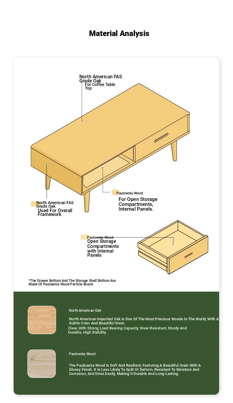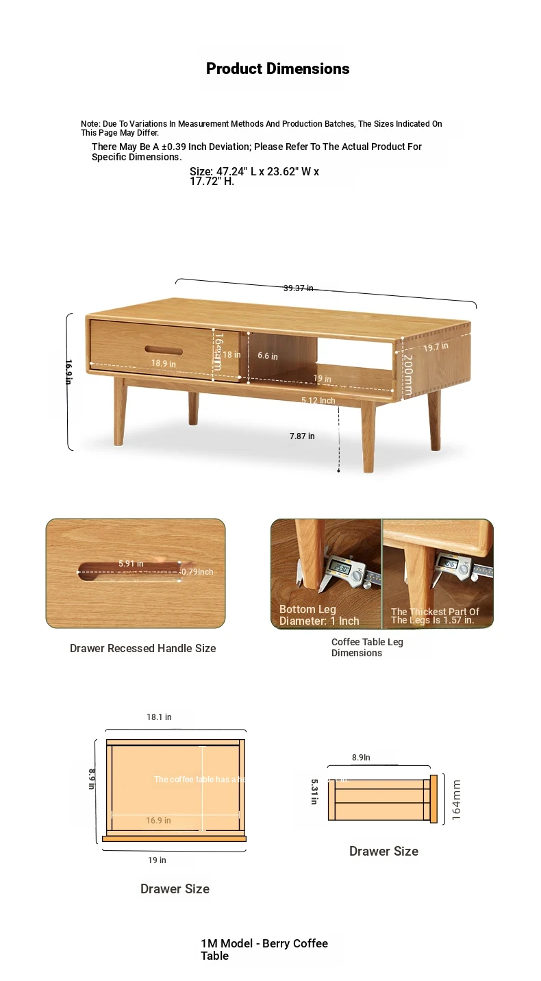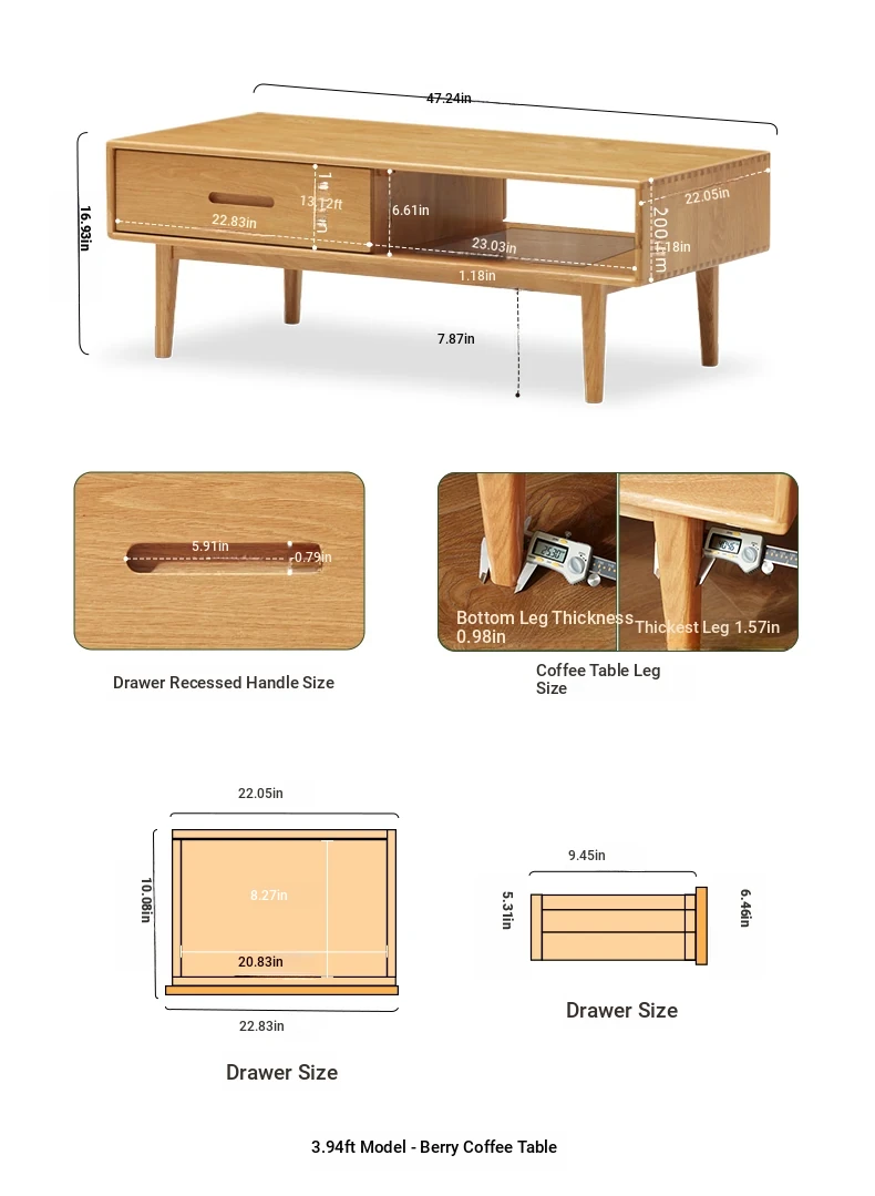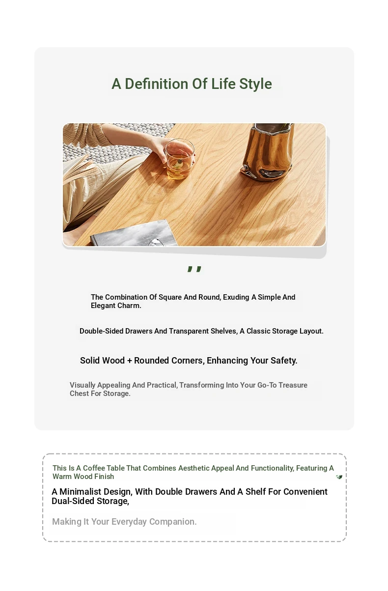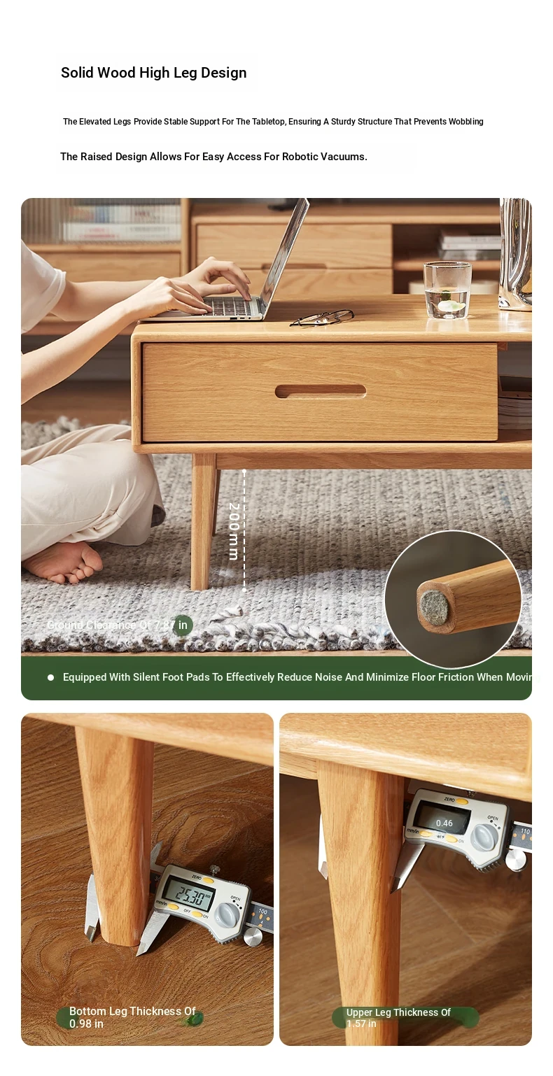 Solid Wood Coffee Table – Scandinavian Modern Minimalist Tea Table in Oak for Small Living Rooms – Stylish and Functional Storage Solution for Your Home