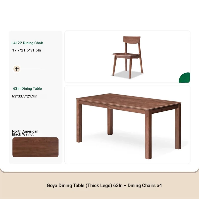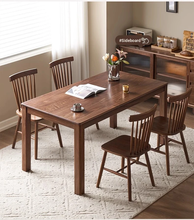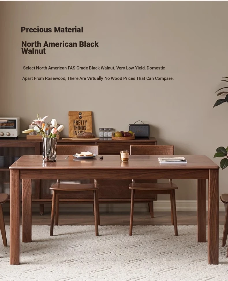 Solid Wood Dining Table - North American Black Walnut Rectangular Table Set for Home Dining Room - Stylish and Durable with Chairs for a Perfect Eating Experience