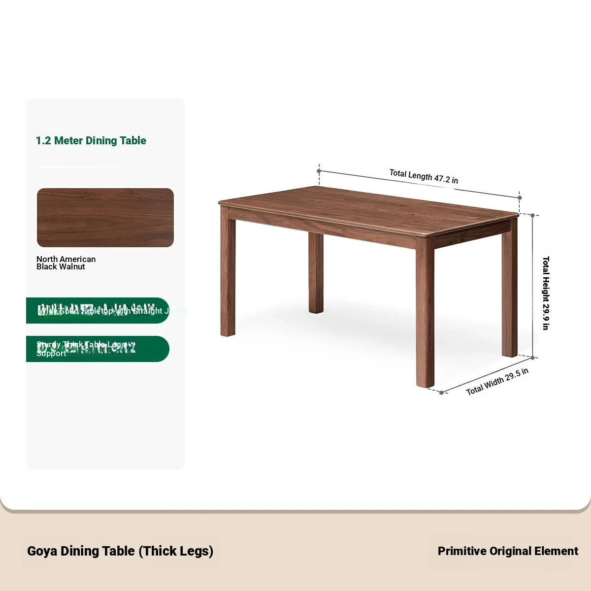 Black walnut -47.24 in dining table (47.24in*29.53in*29.92in)