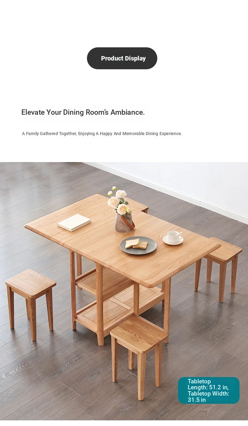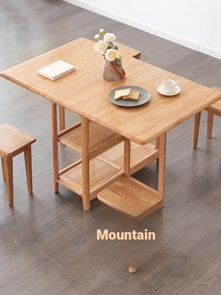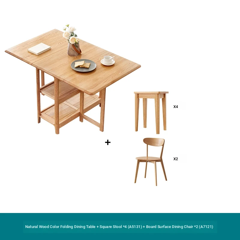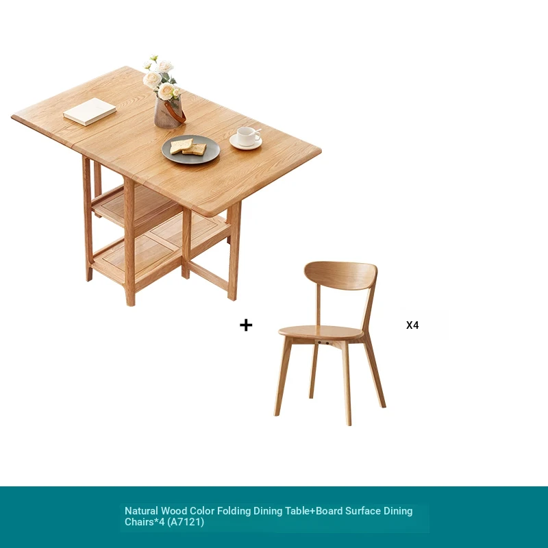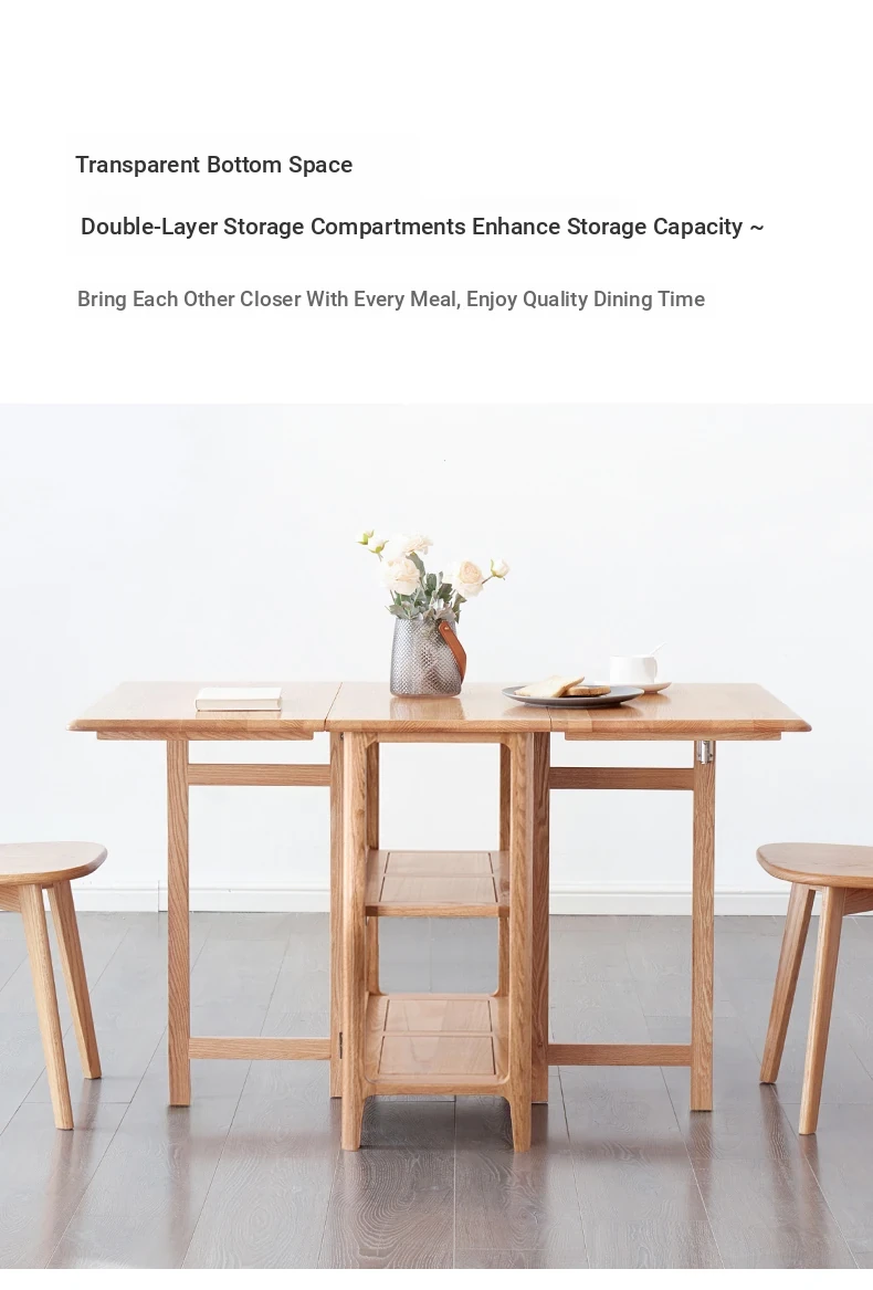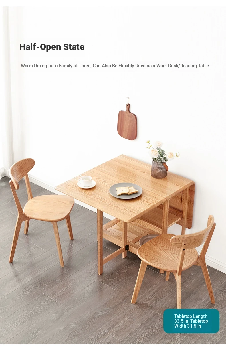 Solid Wood Dining Table Set - Foldable and Expandable Oak Table for Small Spaces - Perfect for Home Use, Ideal for Dining Rooms and Cozy Meals