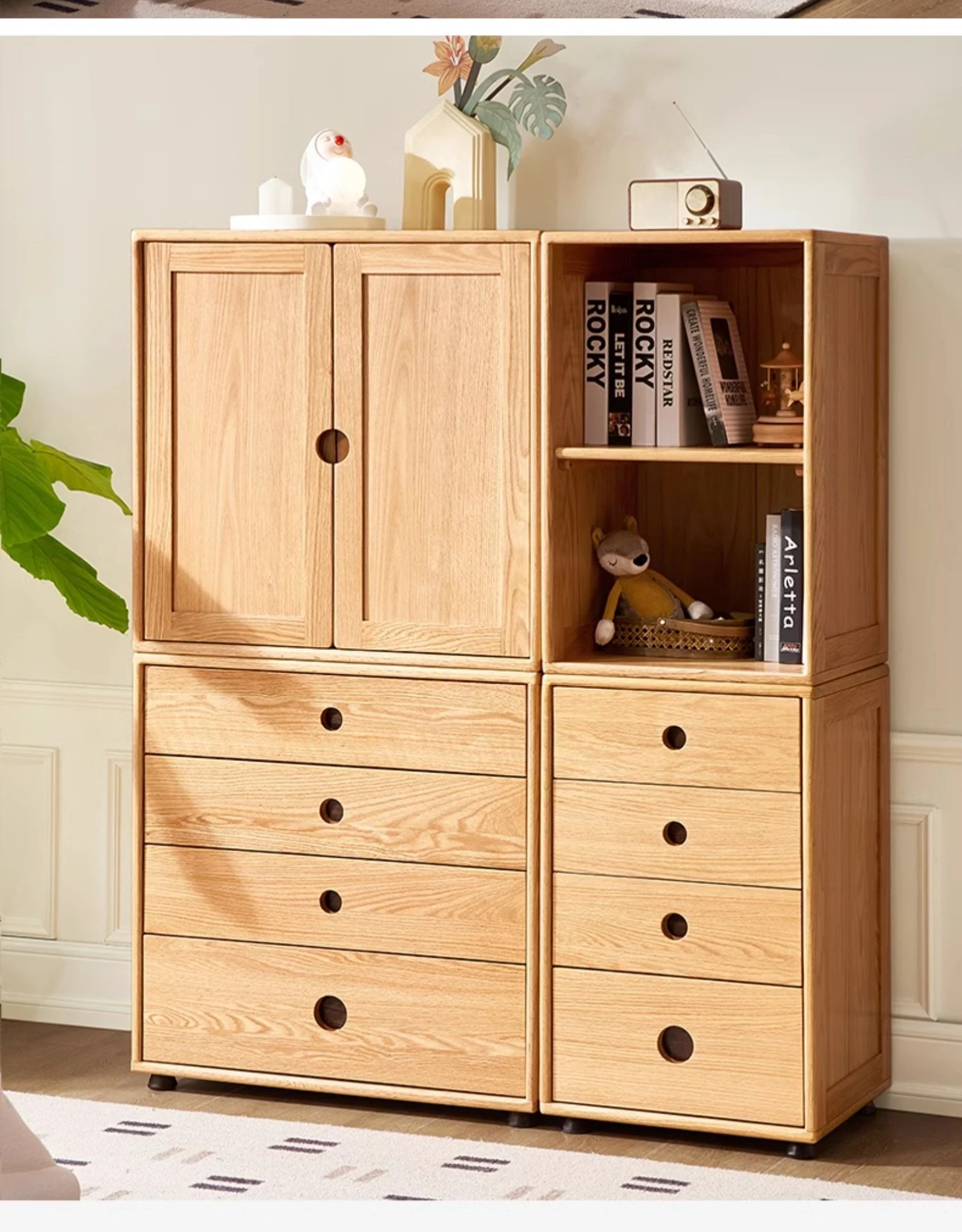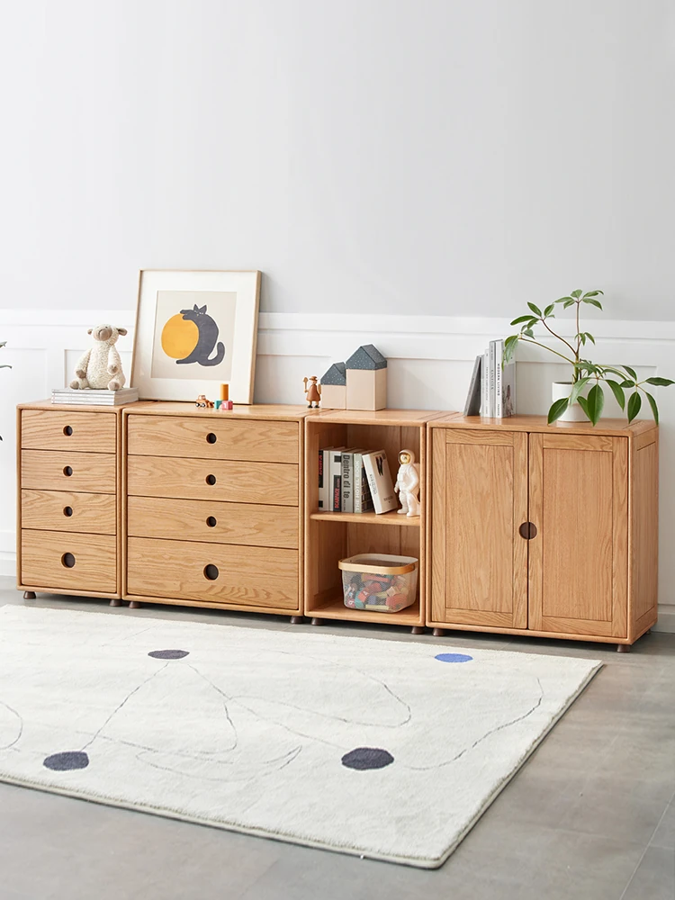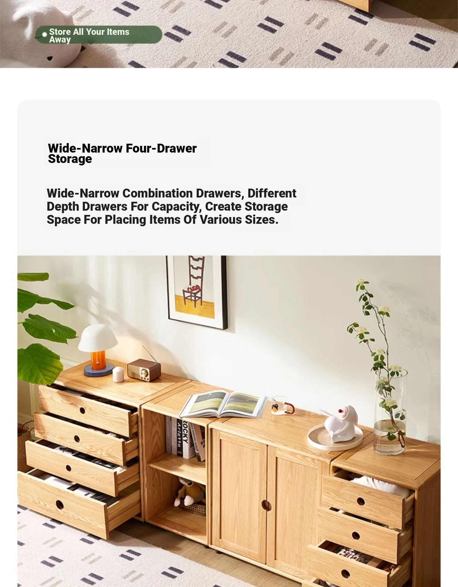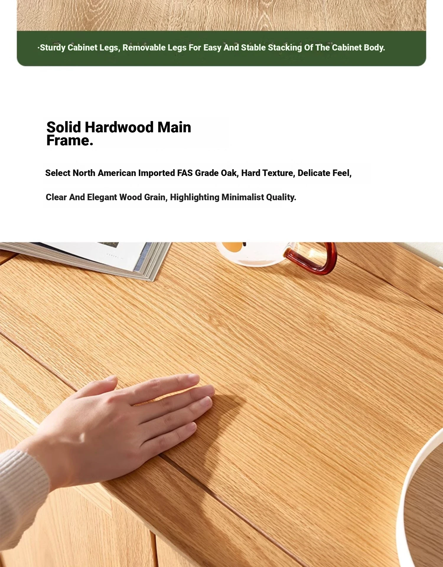 Solid Wood Five-Drawer Chest - Scandinavian Oak Storage Cabinet for Modern Minimalist Bedrooms, Perfect for Children's Room Organization