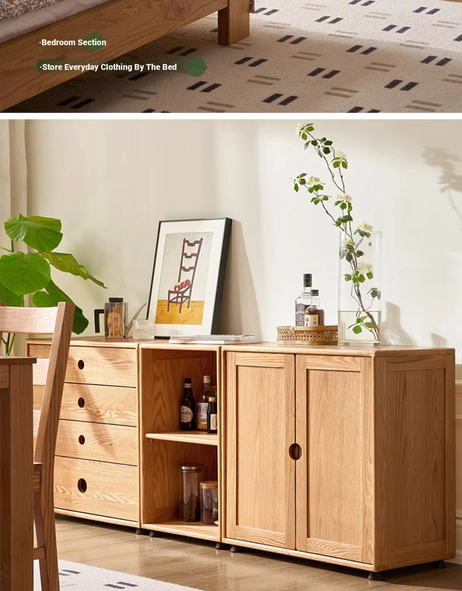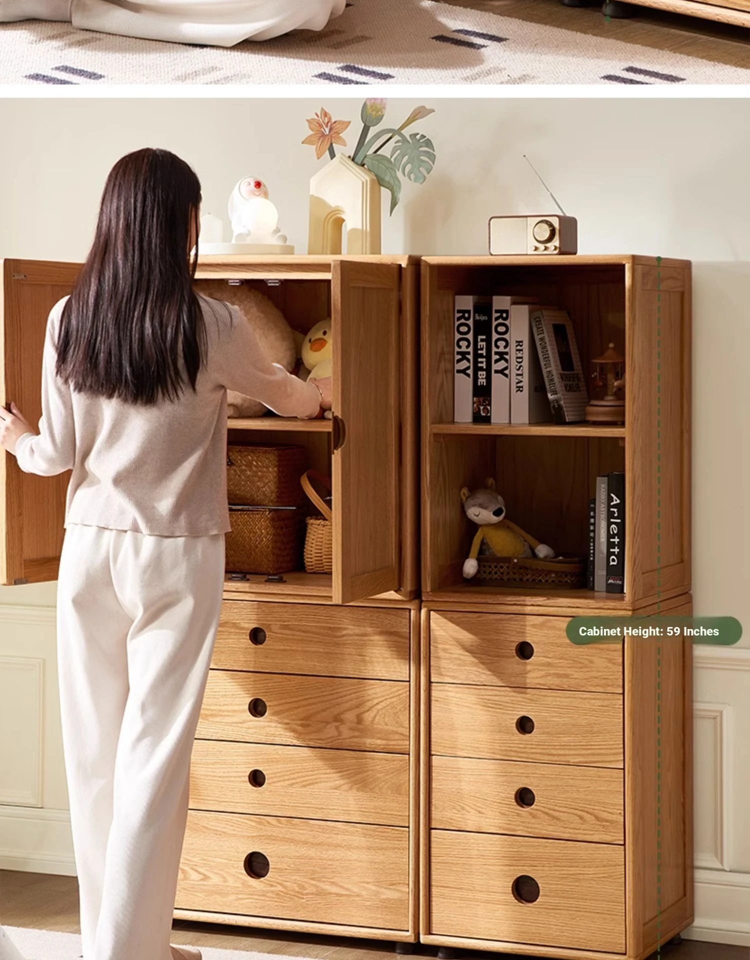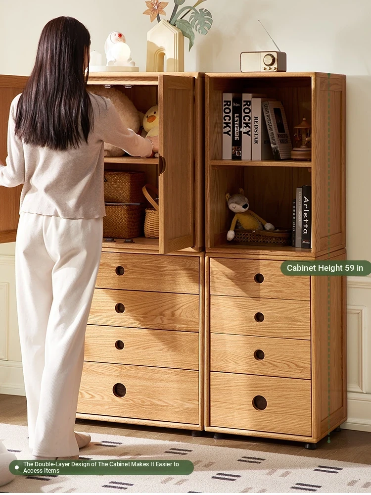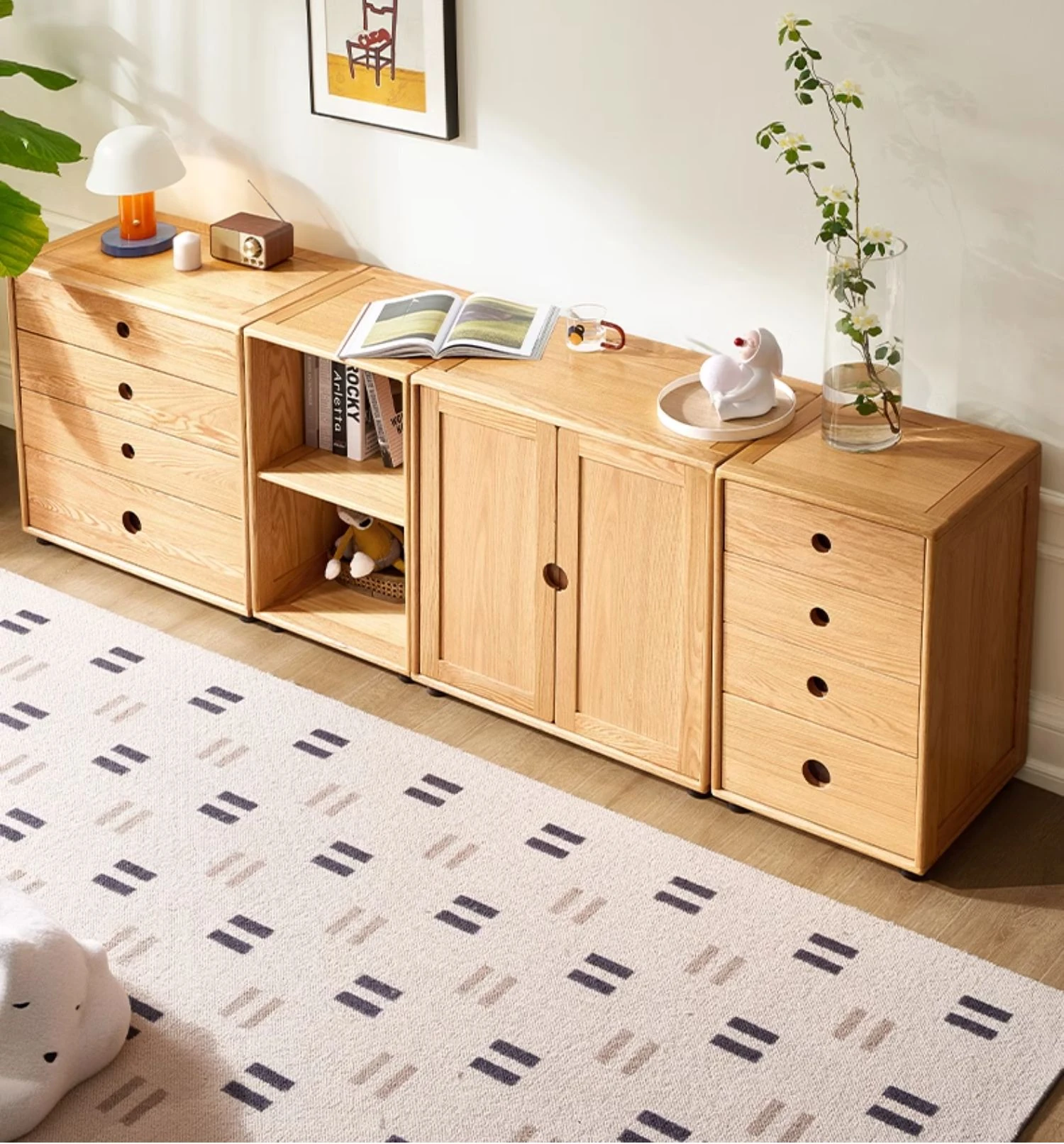 Solid Wood Five-Drawer Chest - Scandinavian Oak Storage Cabinet for Modern Minimalist Bedrooms, Perfect for Children's Room Organization