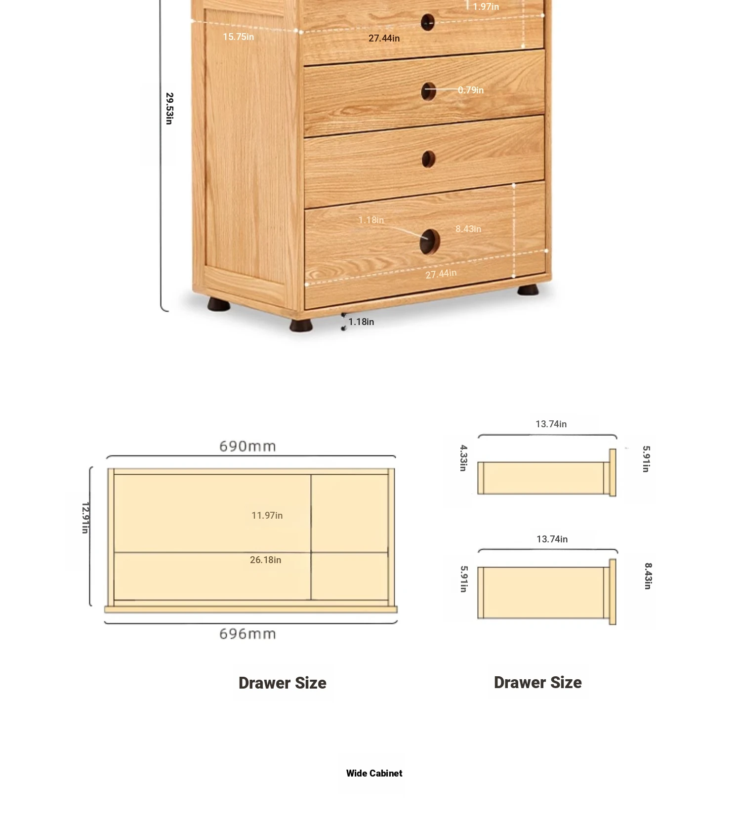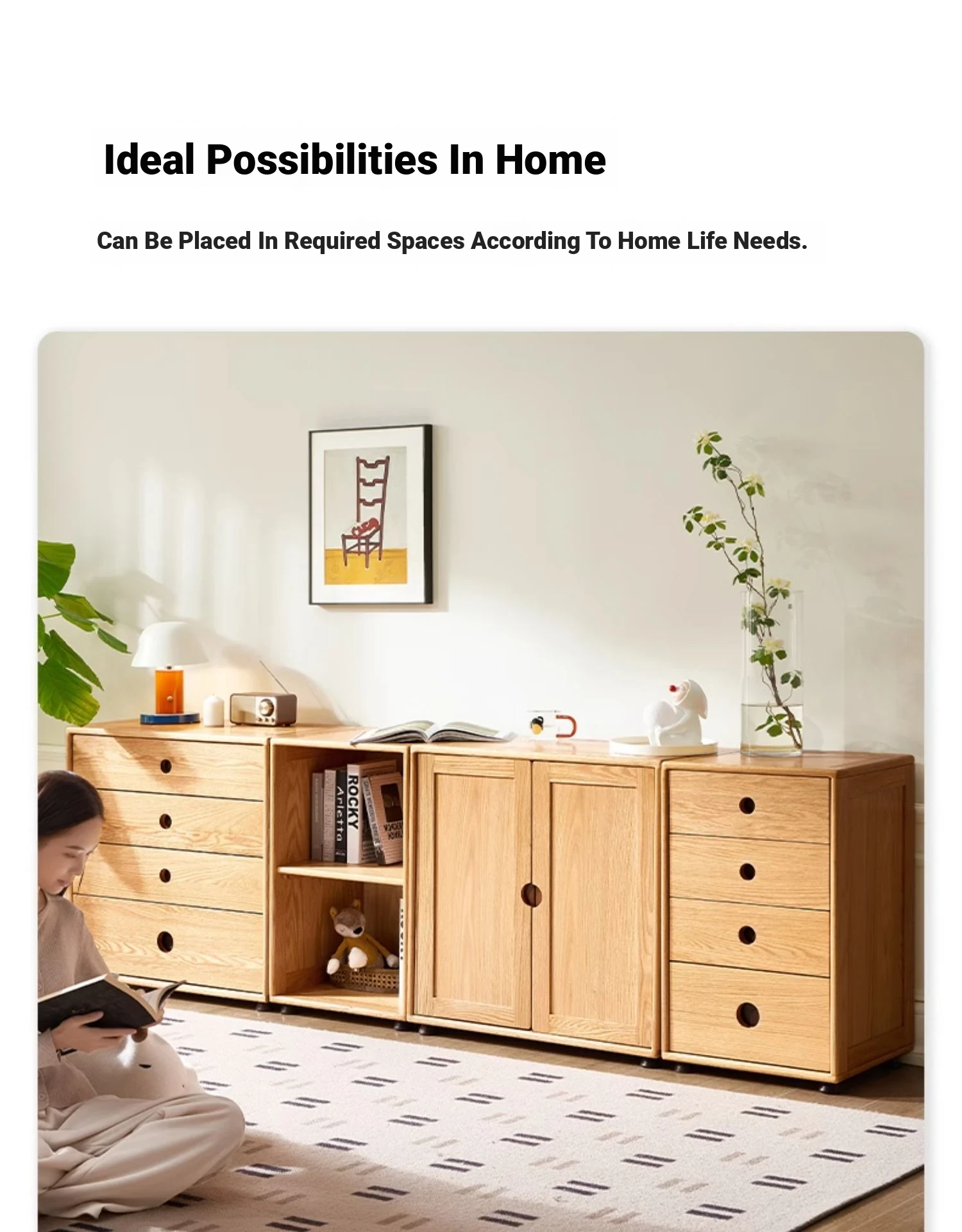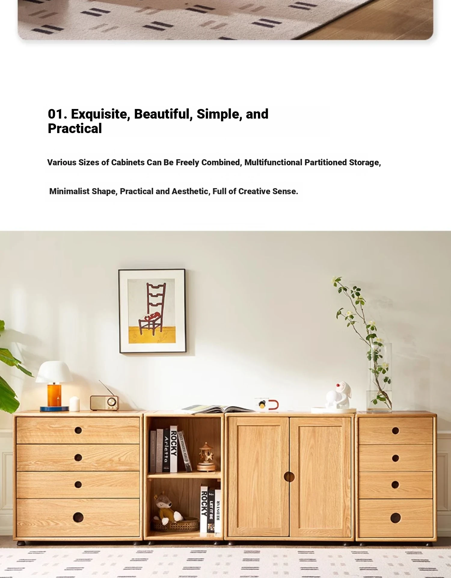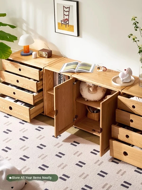 Solid Wood Five-Drawer Chest - Scandinavian Oak Storage Cabinet for Modern Minimalist Bedrooms, Perfect for Children's Room Organization