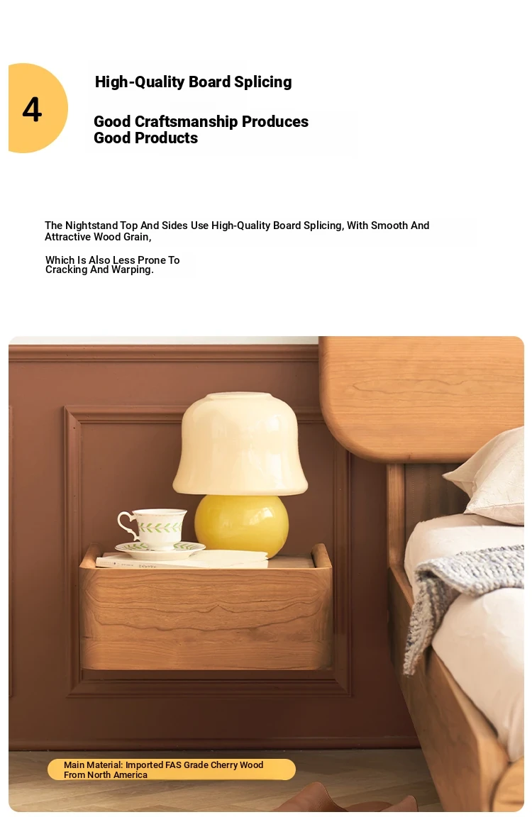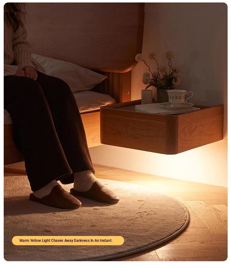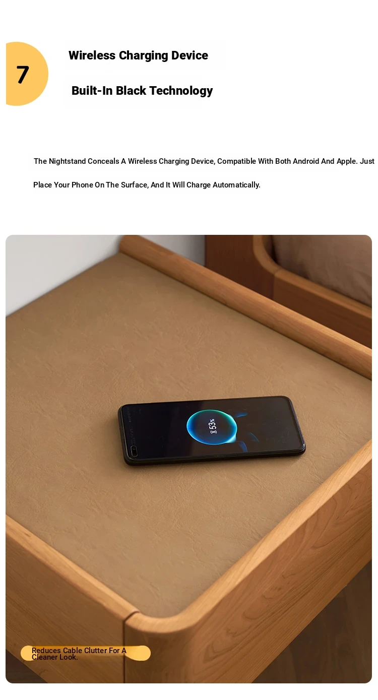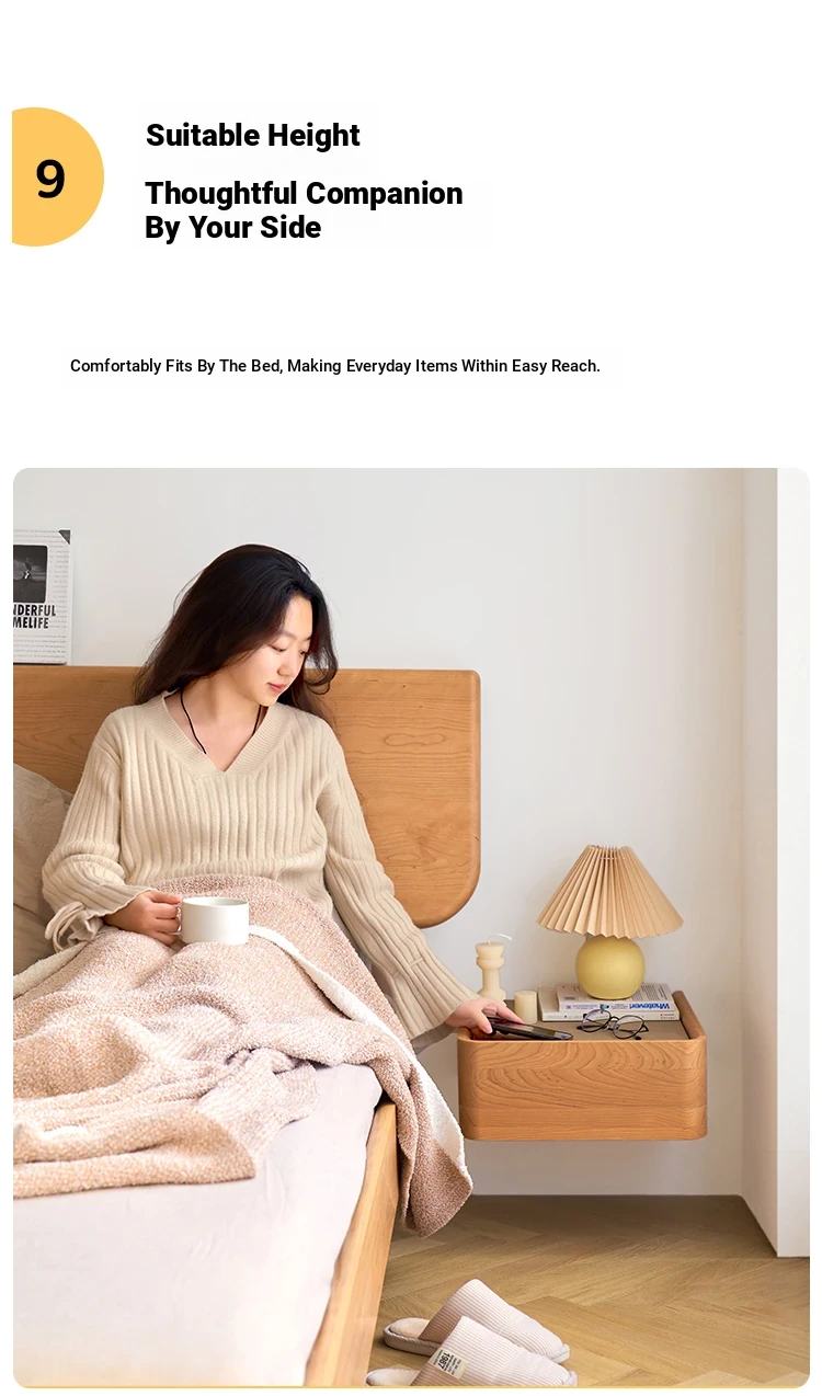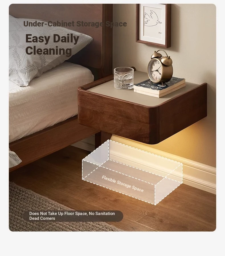 Solid Wood Floating Nightstand - Modern Bedroom Storage Cabinet with Smart Wireless Charging - Oak Bedside Table for Home Use