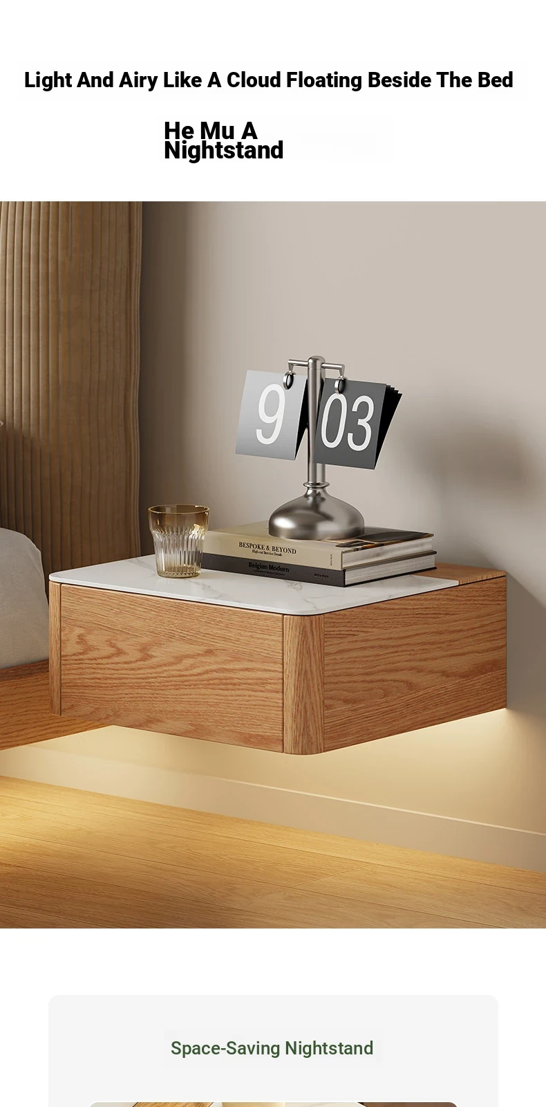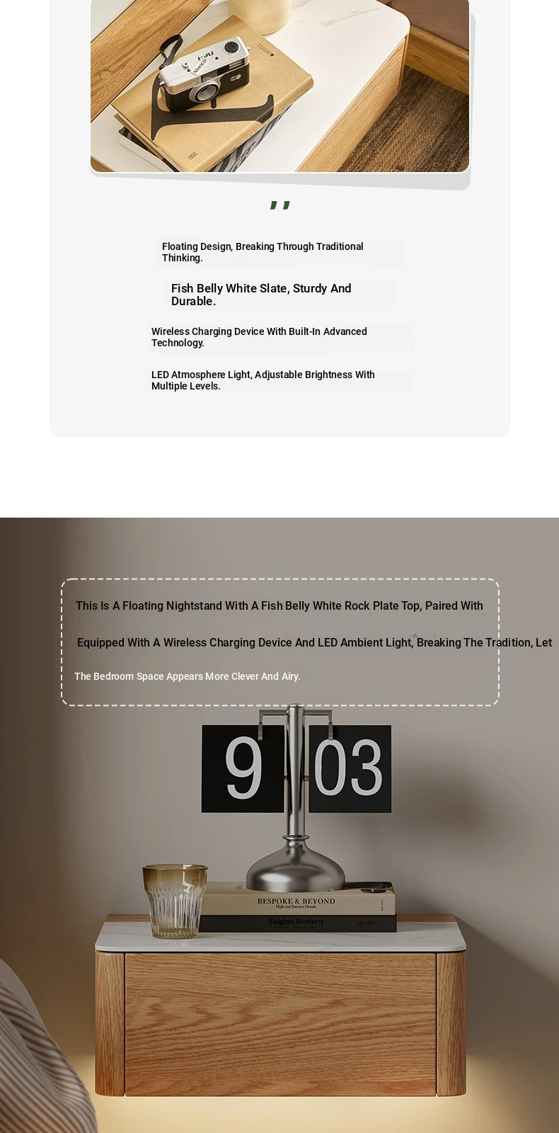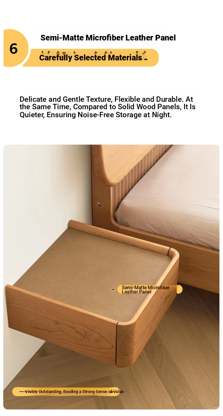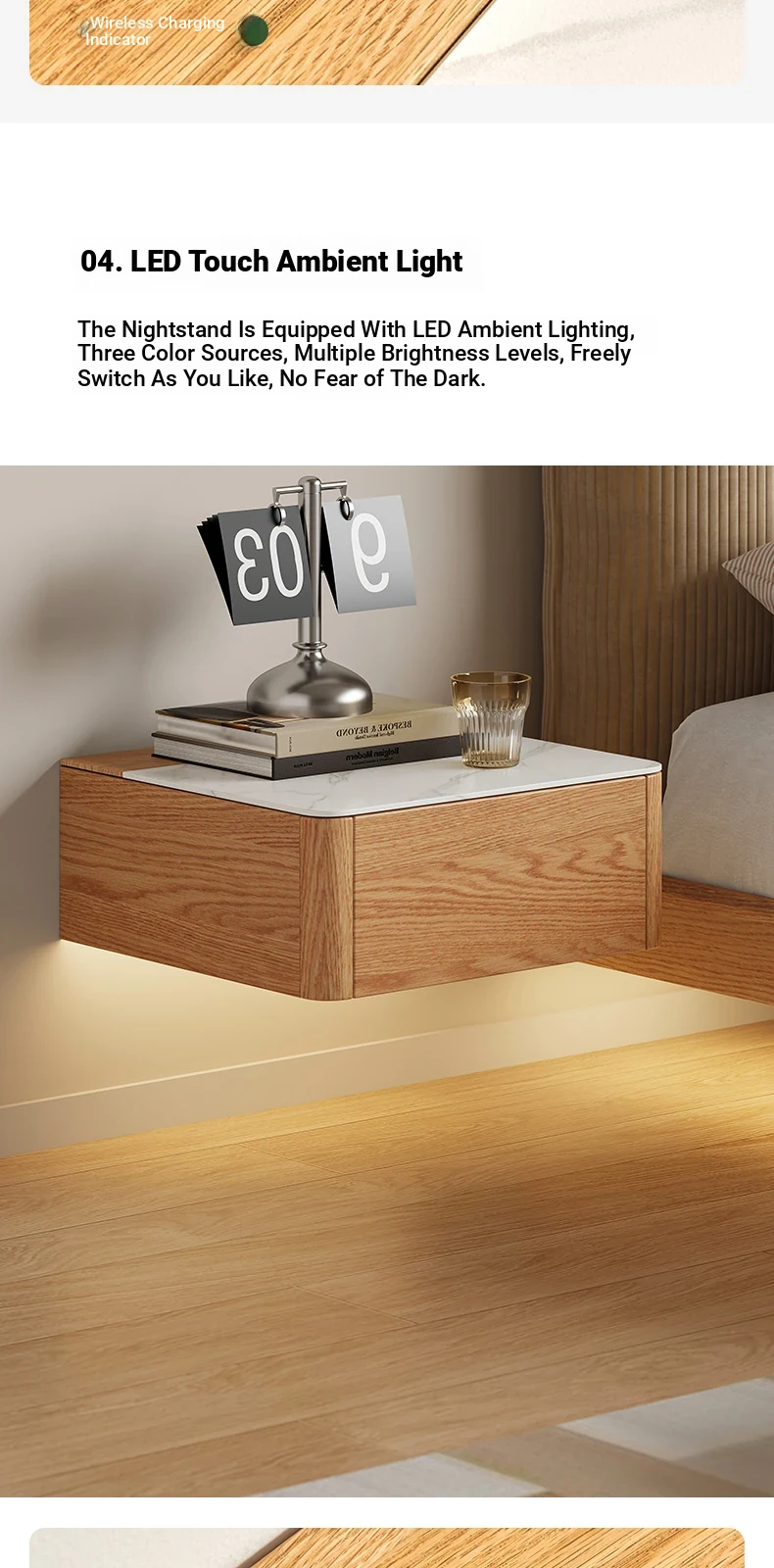 Solid Wood Floating Nightstand - Modern Bedroom Storage Cabinet with Smart Wireless Charging - Oak Bedside Table for Home Use