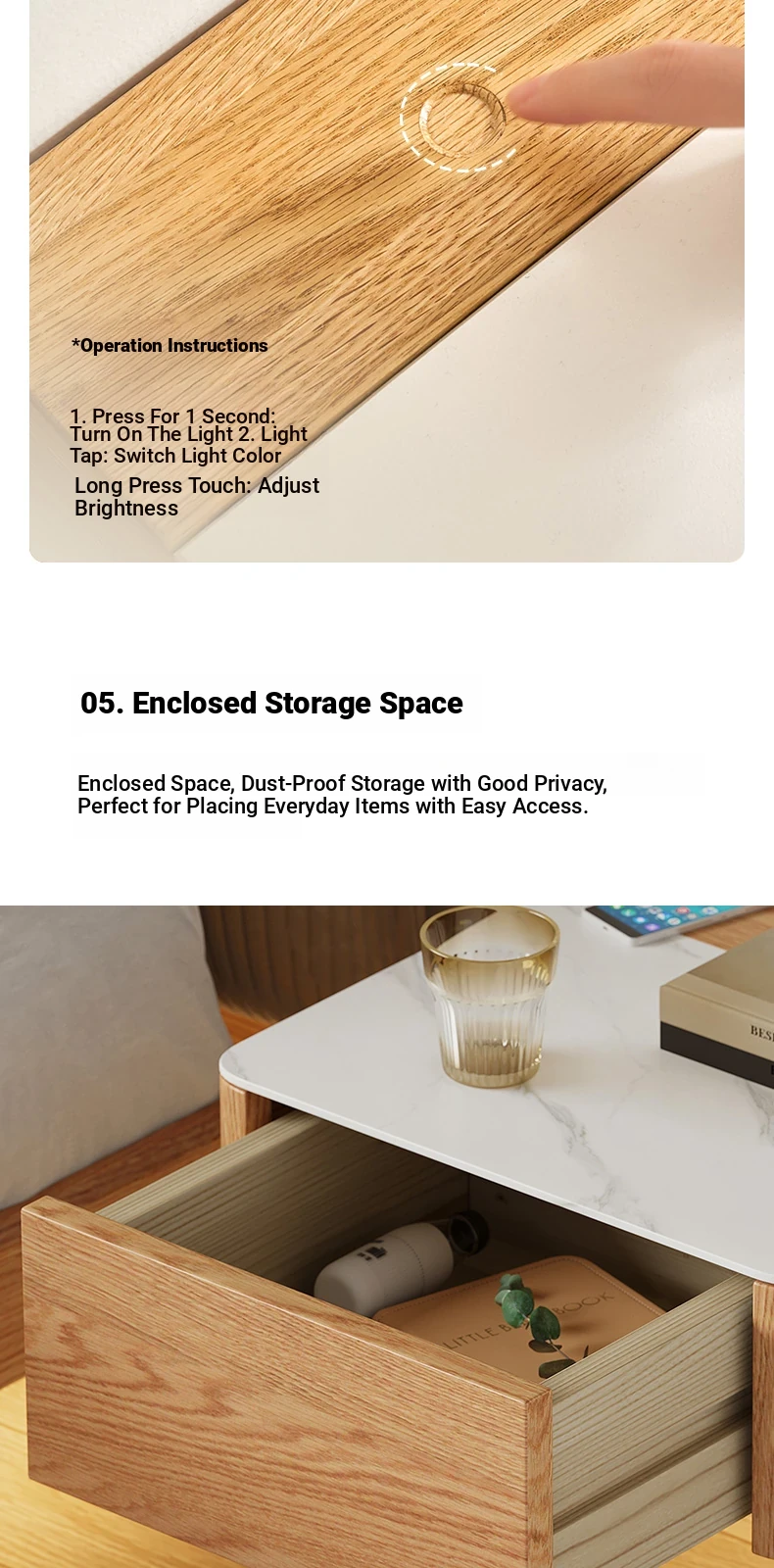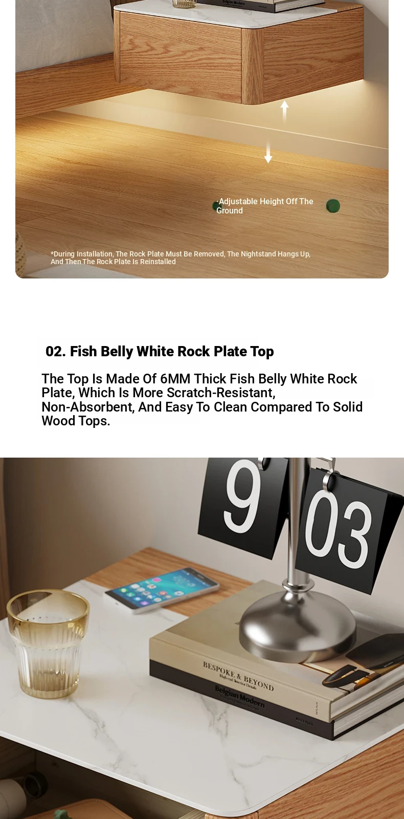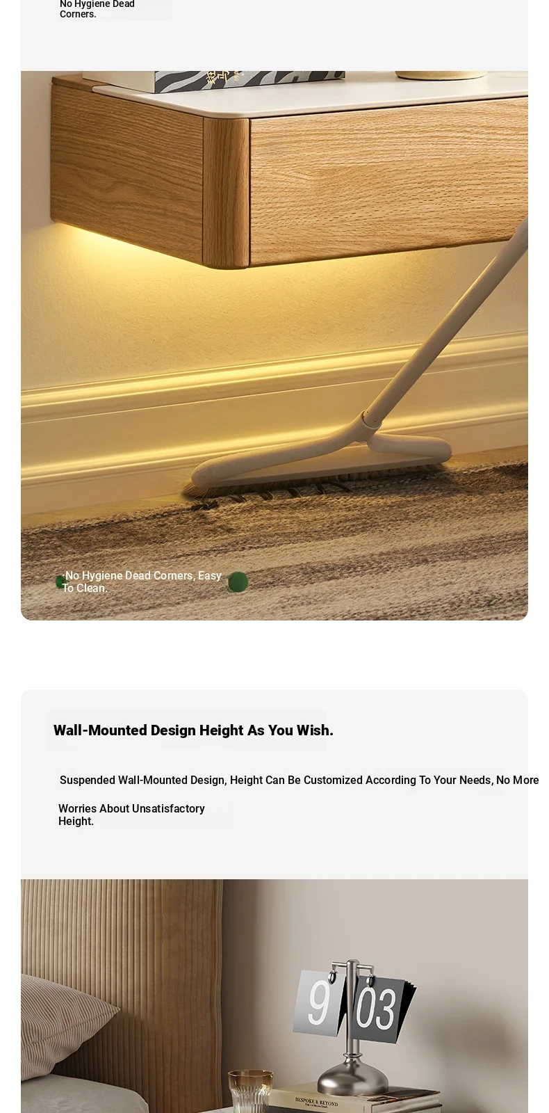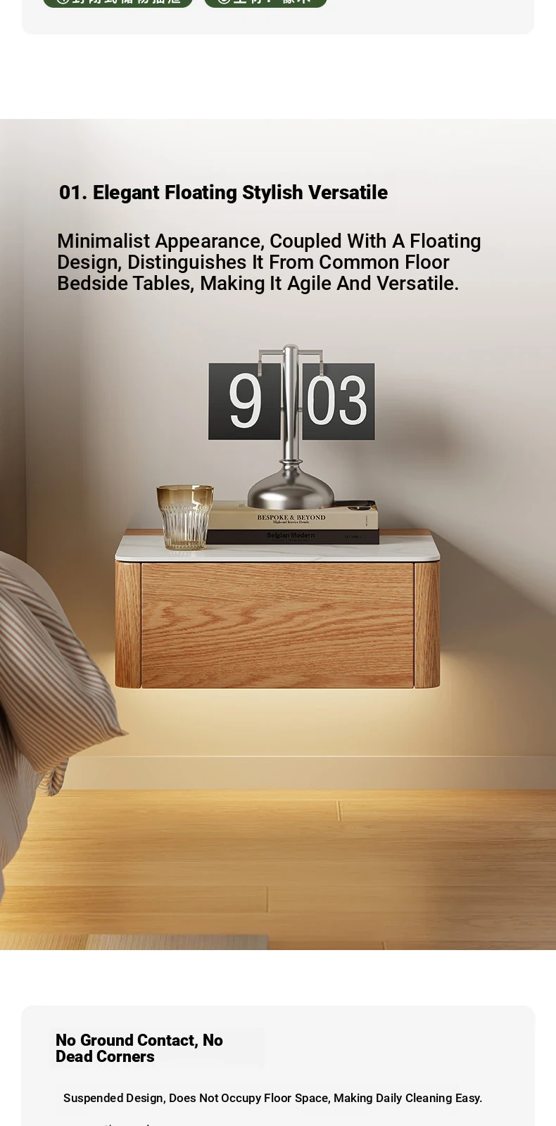 Solid Wood Floating Nightstand - Modern Bedroom Storage Cabinet with Smart Wireless Charging - Oak Bedside Table for Home Use