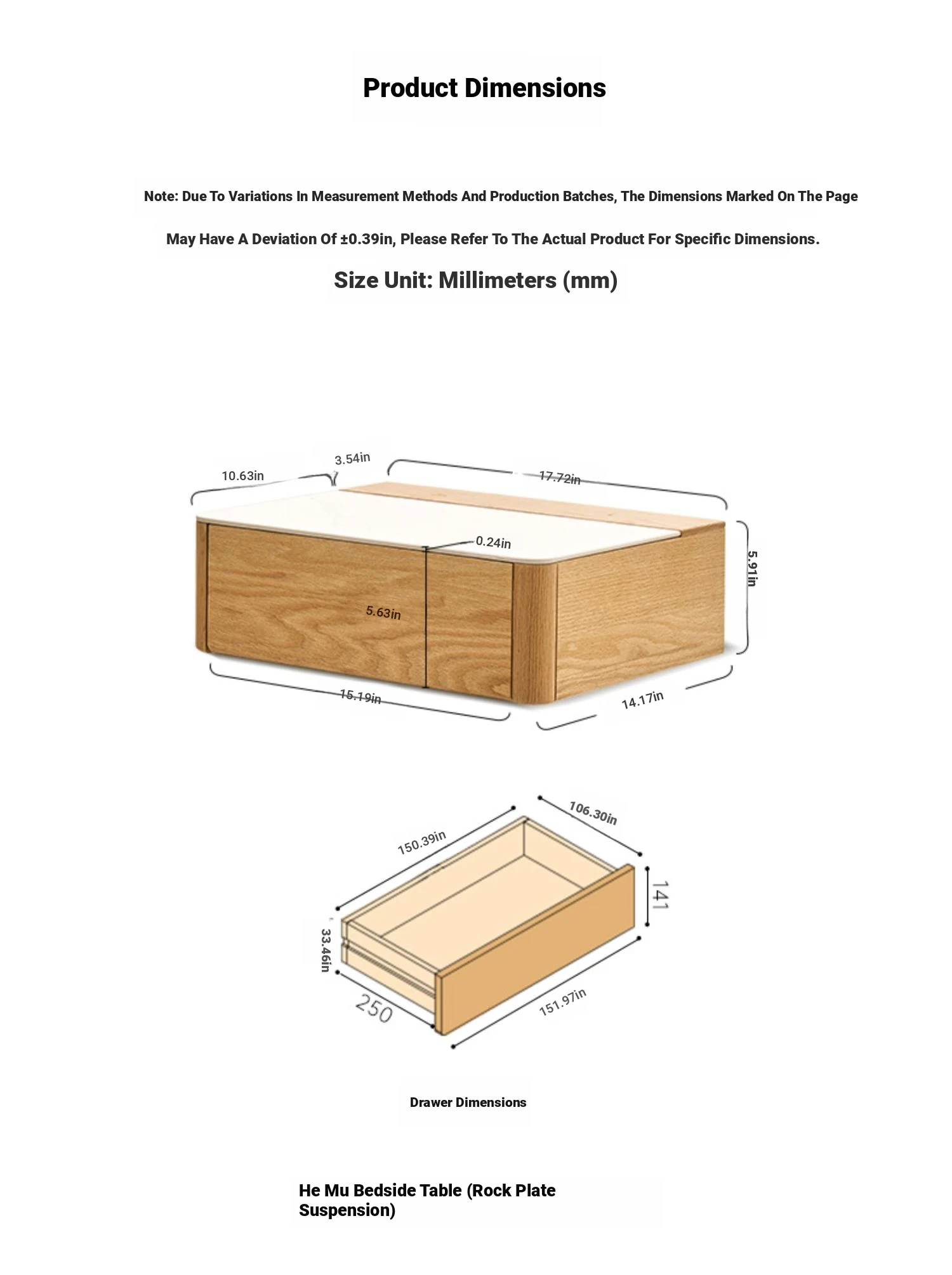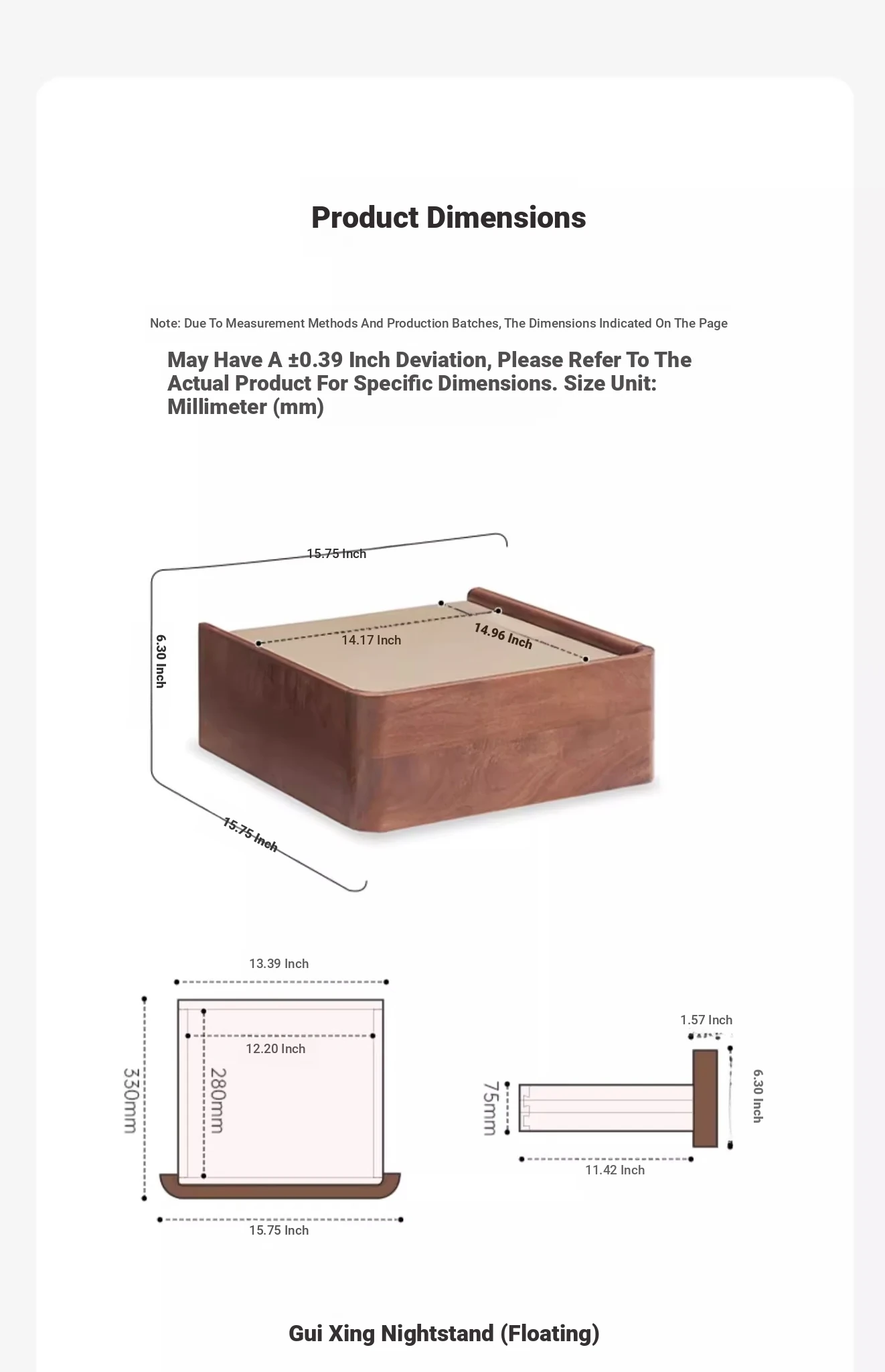 Log color-Oak Rock board suspended bedside table (L7021)17.72in*14.17in*5.91in(Do not pack wall installation])