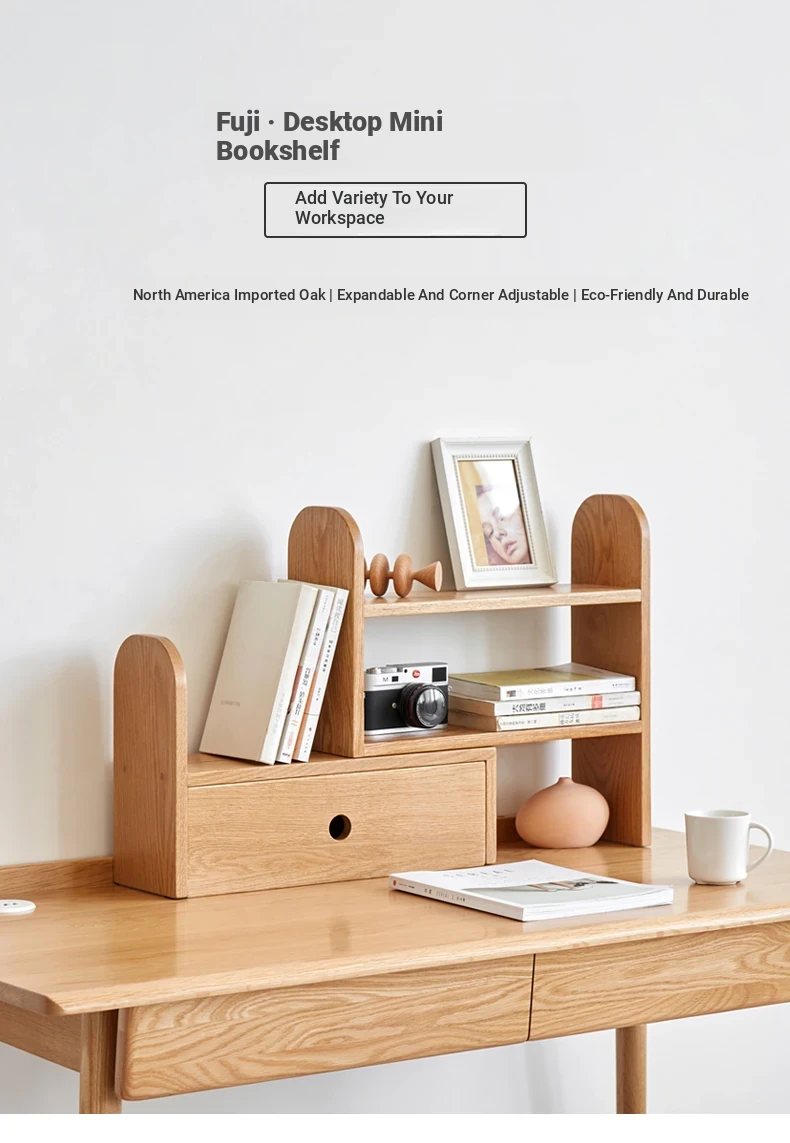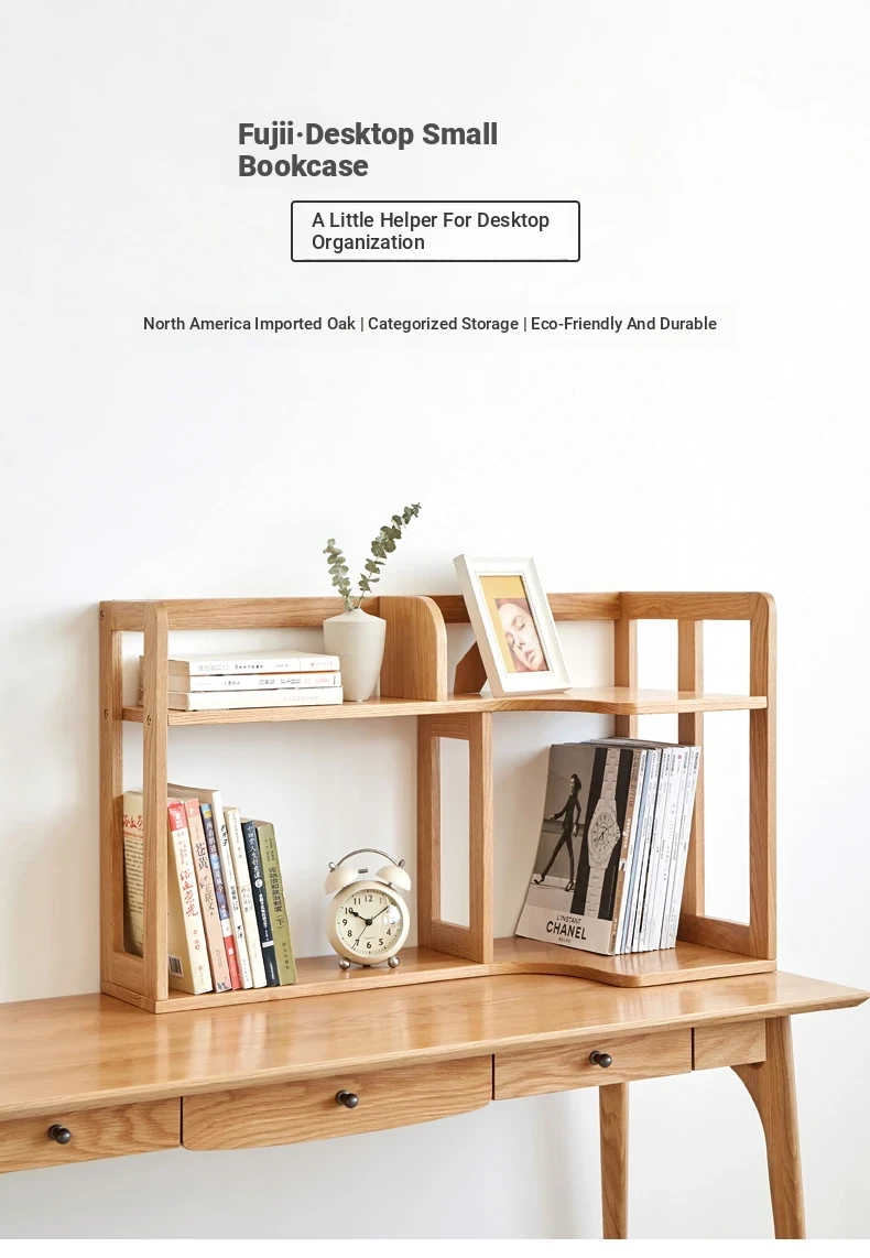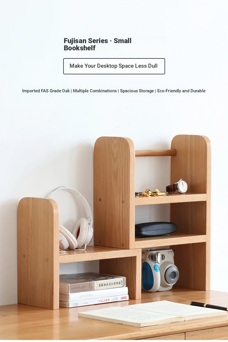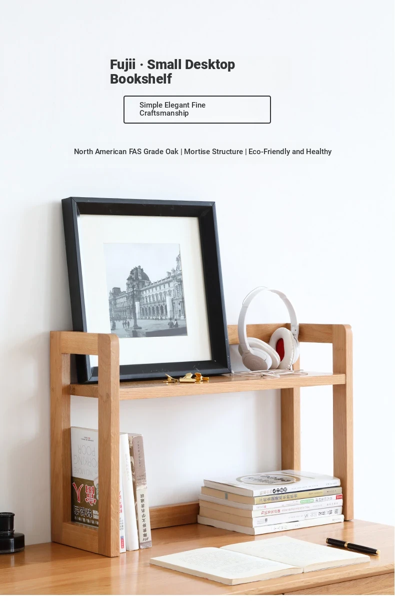 "Solid Wood Mini Bookshelf - Scandinavian Minimalist Design for Modern Home Office, Perfect for Desktop Storage and Organization, with Elevated Shelving"