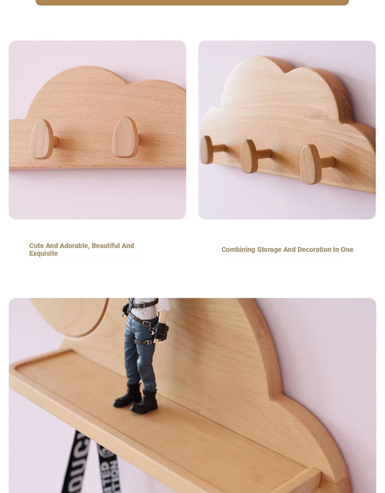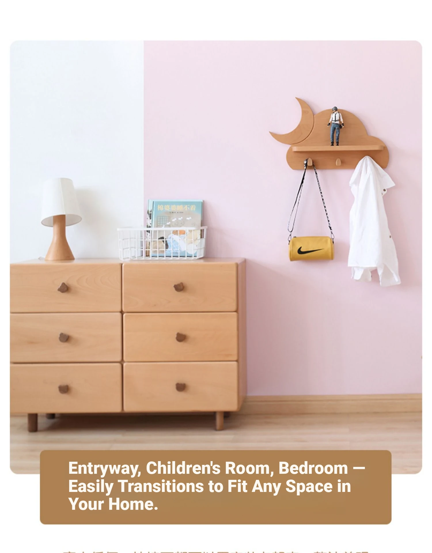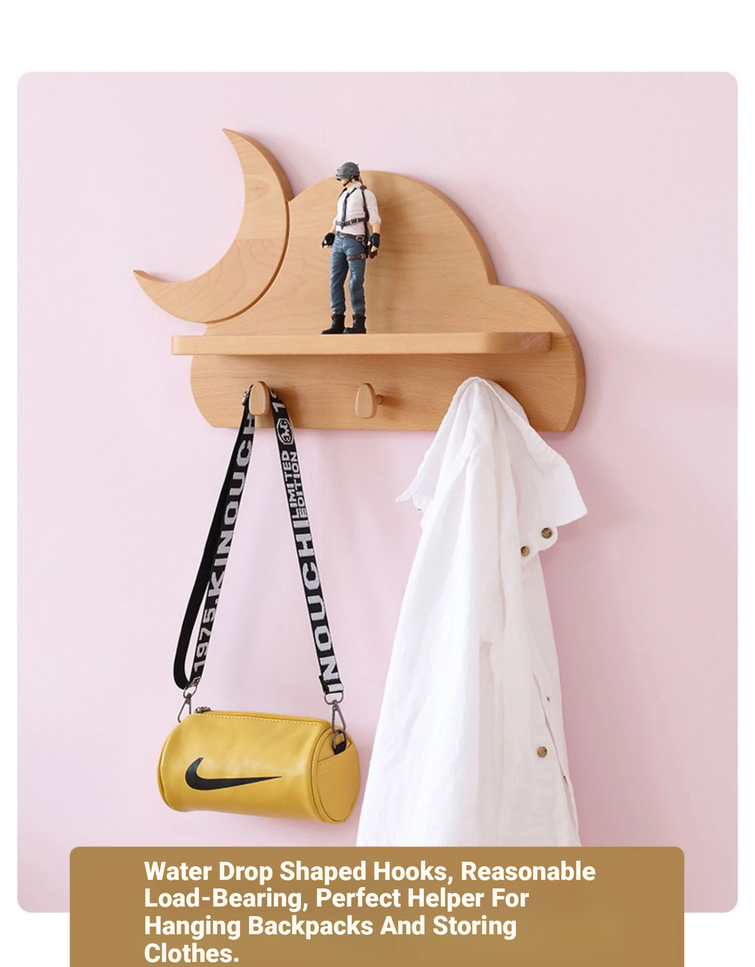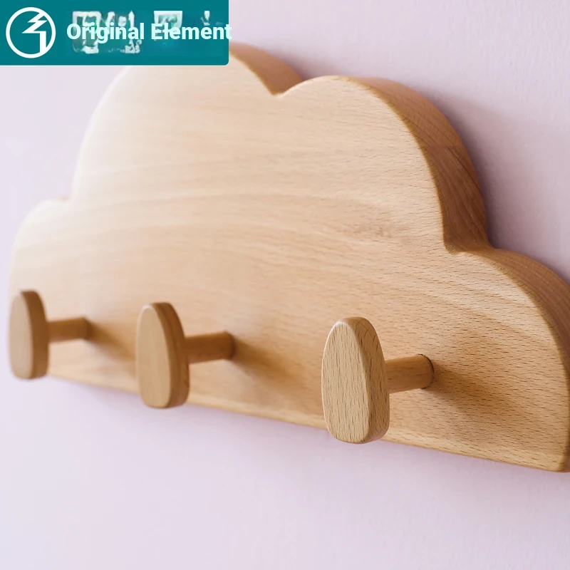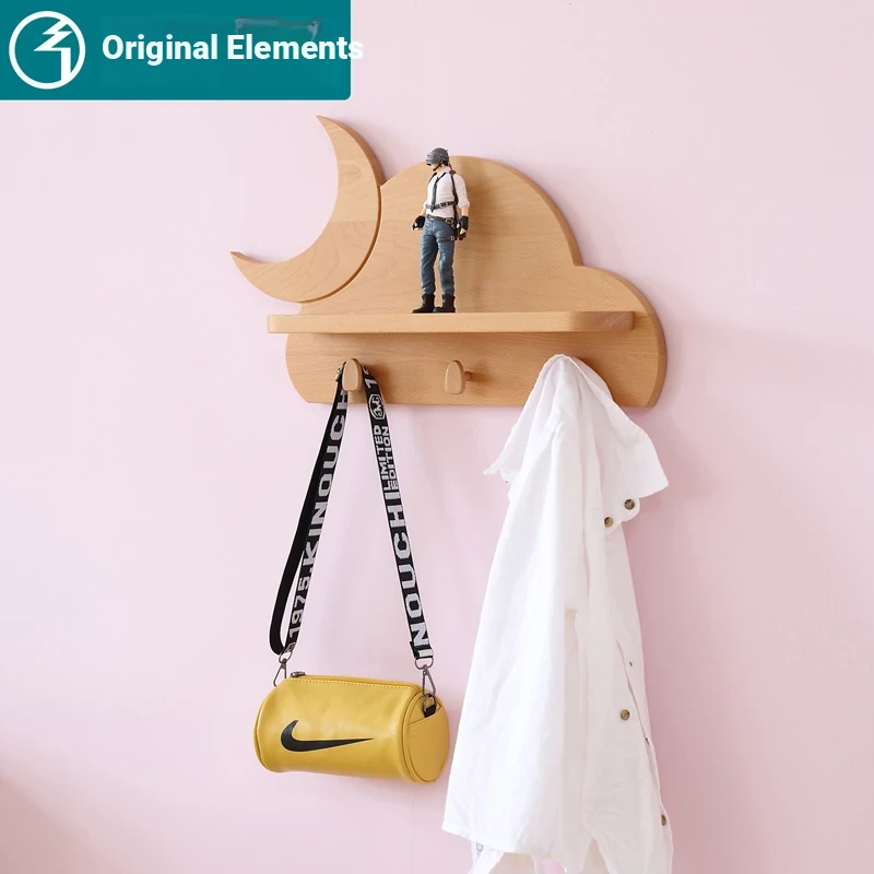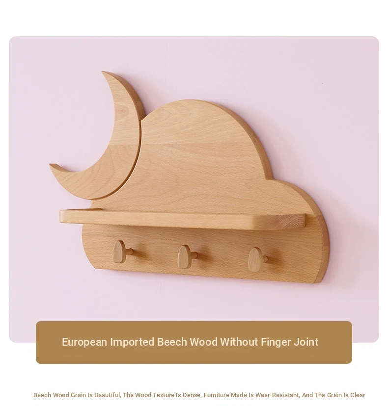 Solid Wood Multifunctional Coat Rack - Nordic Style Children's Room Wall Shelf with Beech Wood Hangers for Home Organization | Durable & Stylish Storage Solution