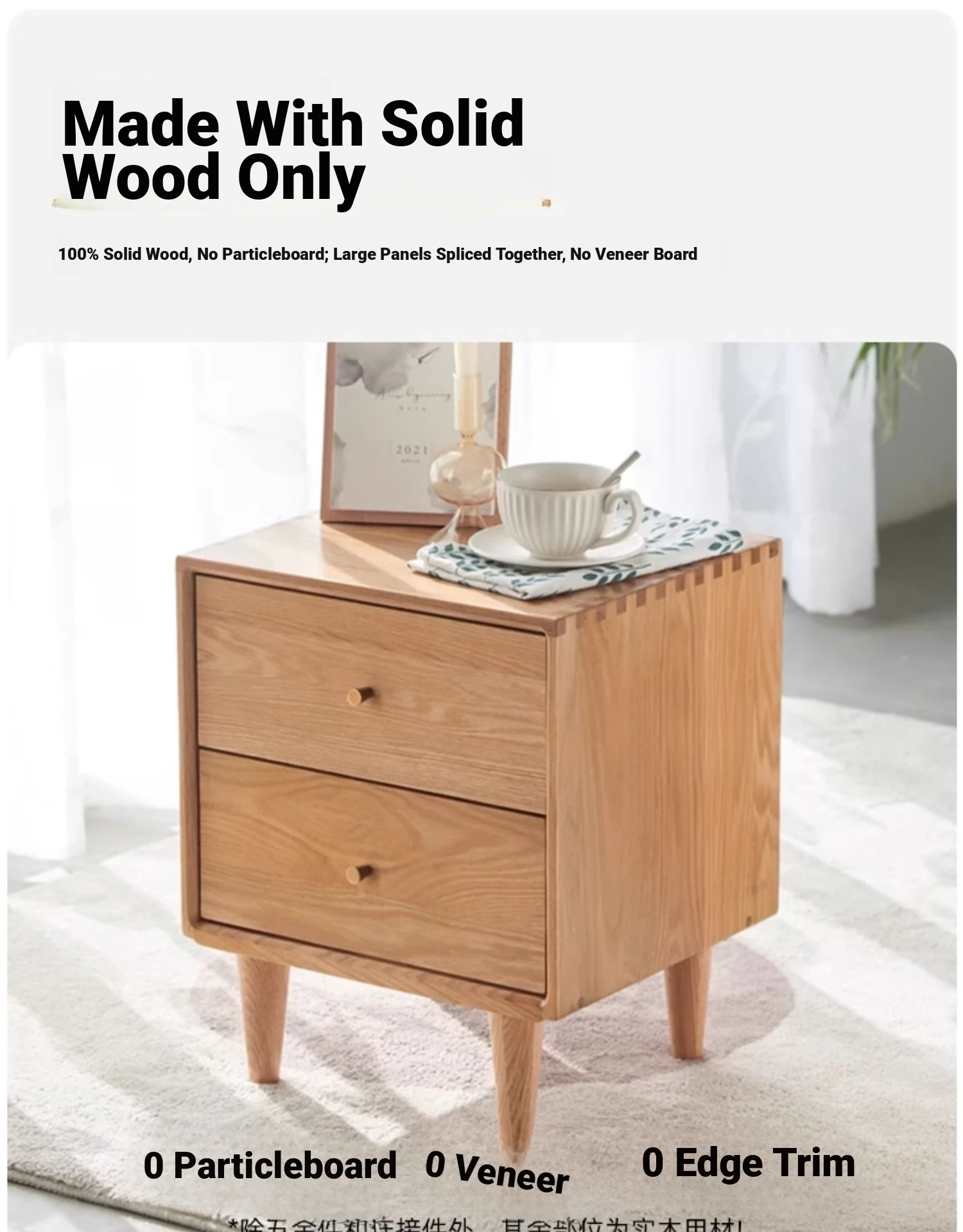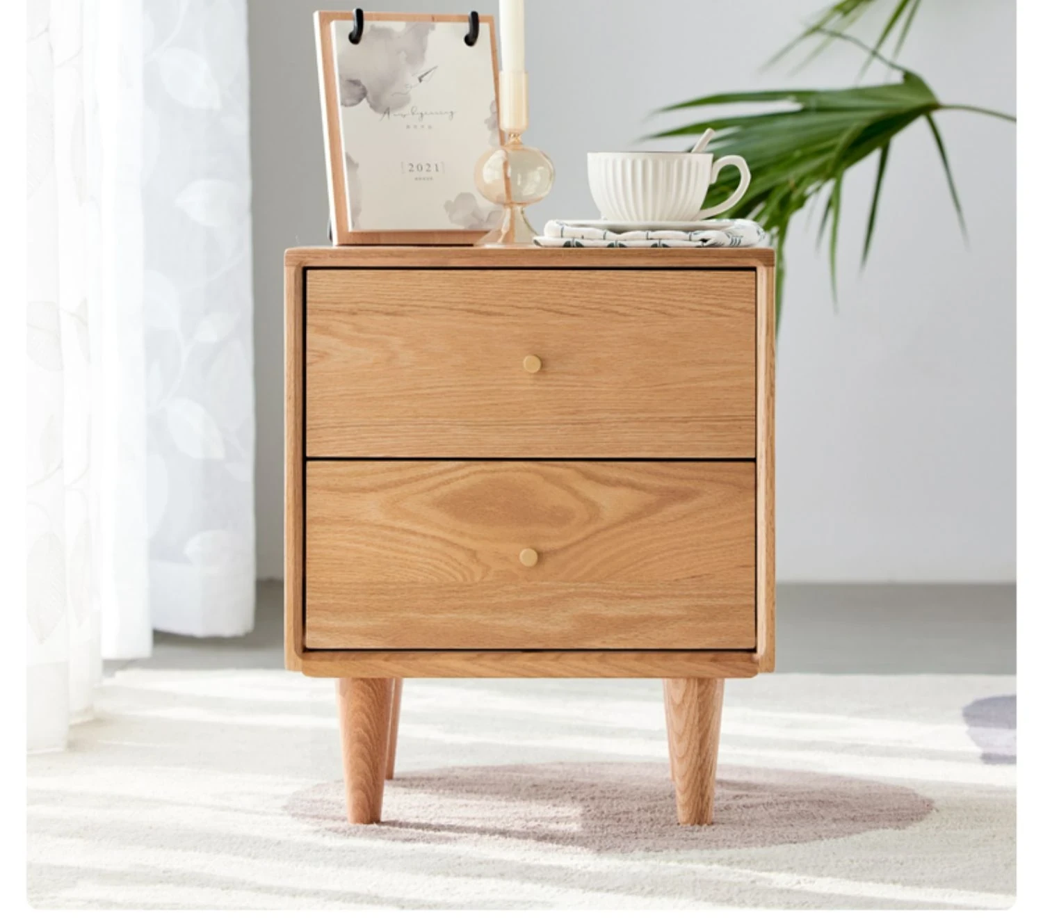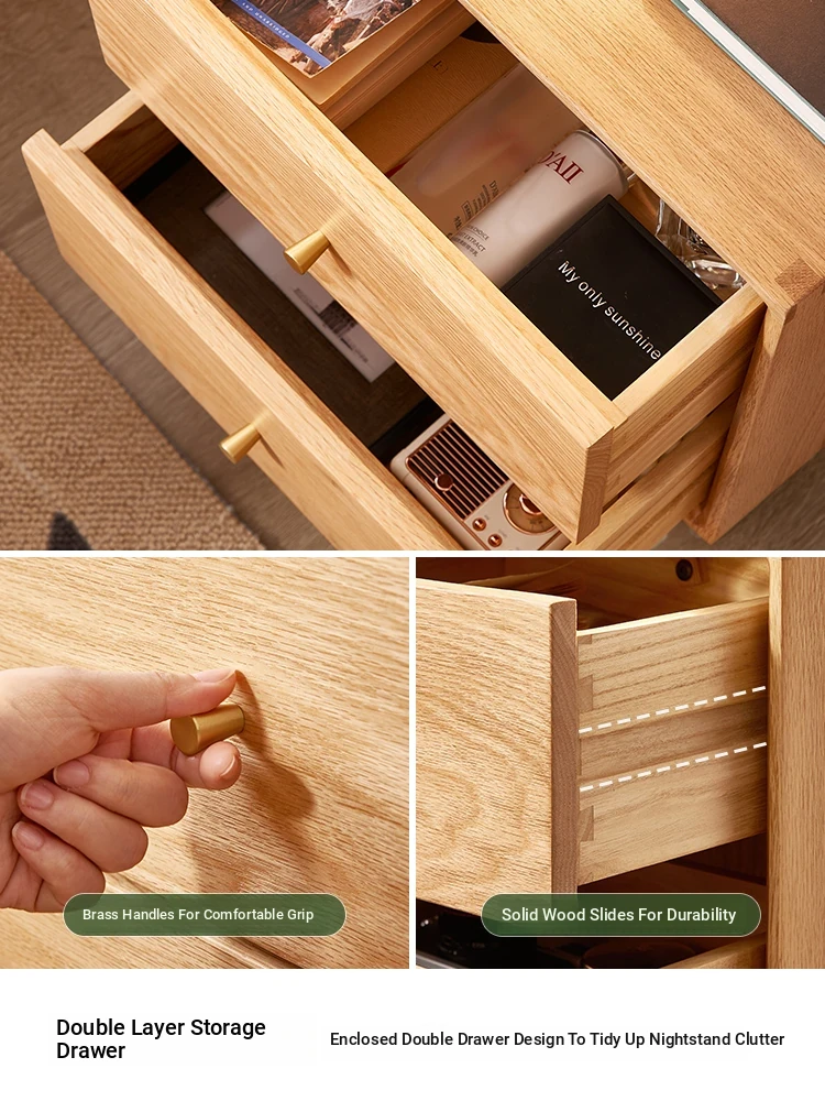 "Solid Wood Scandinavian Style Bedroom Nightstand - Stylish and Functional Storage Solution for Your Space"