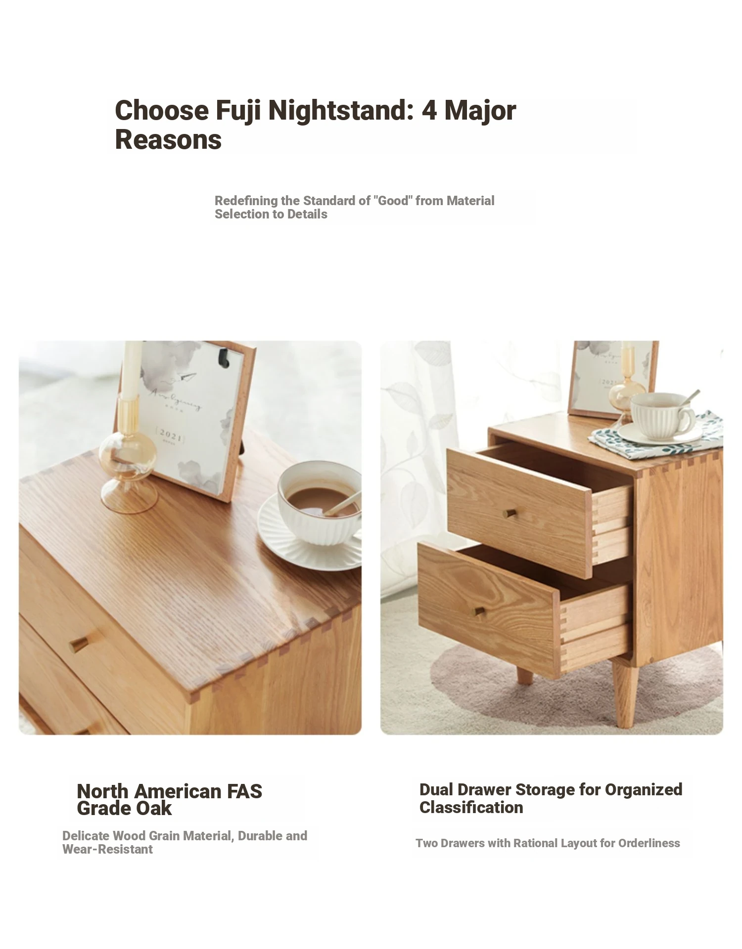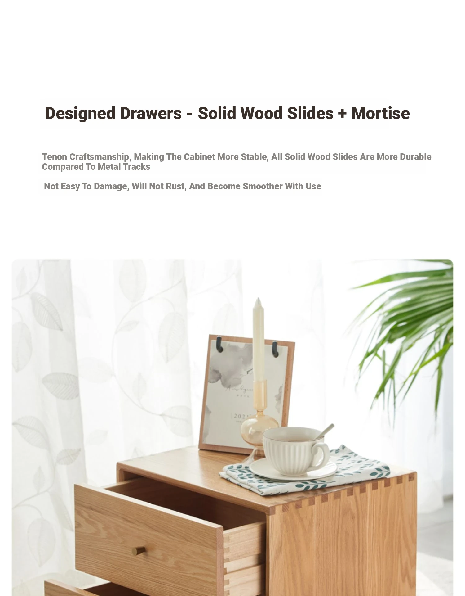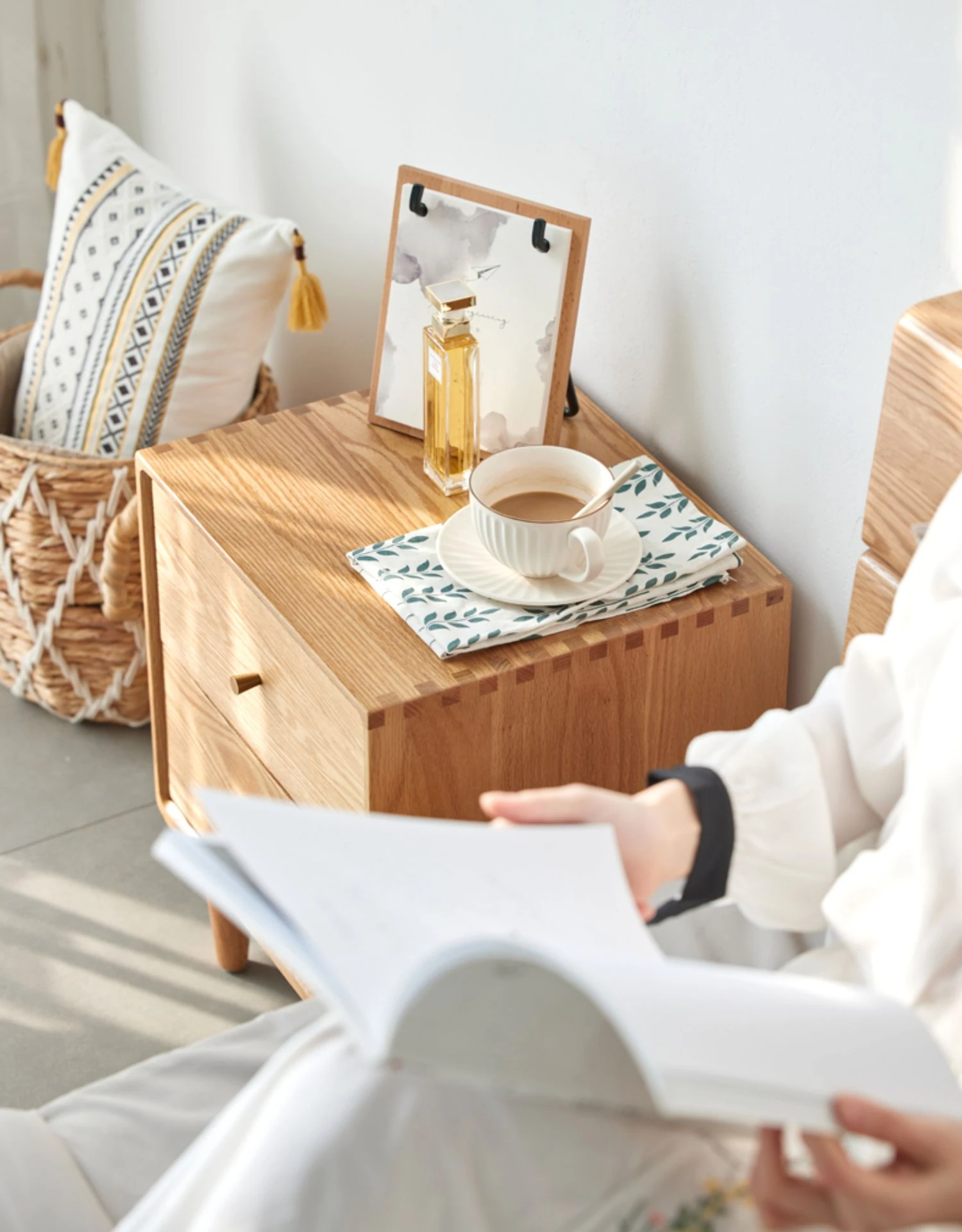 "Solid Wood Scandinavian Style Bedroom Nightstand - Stylish and Functional Storage Solution for Your Space"