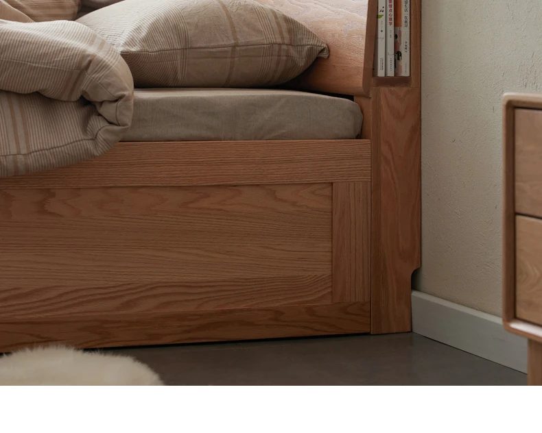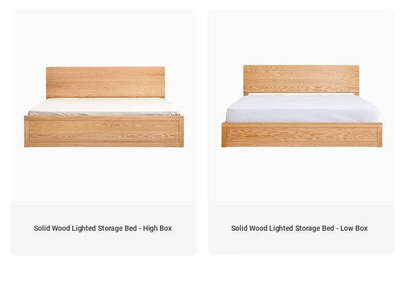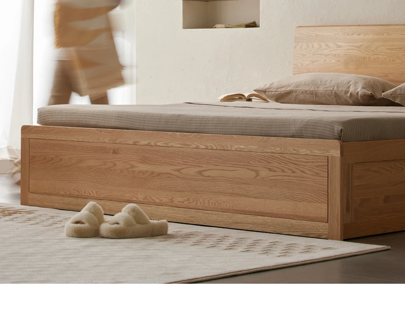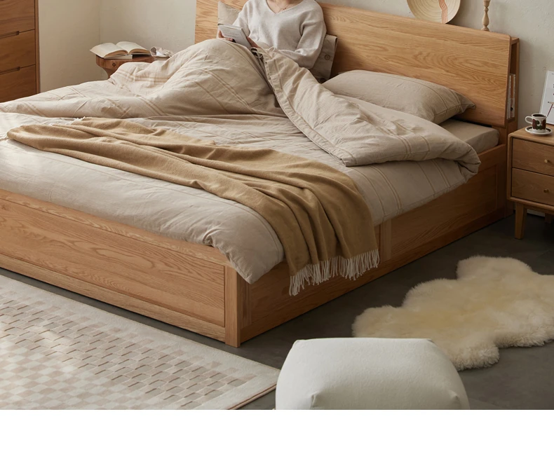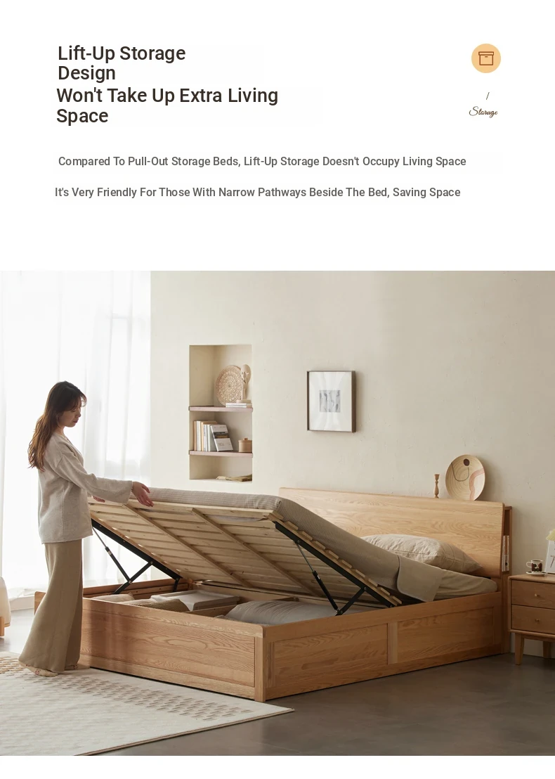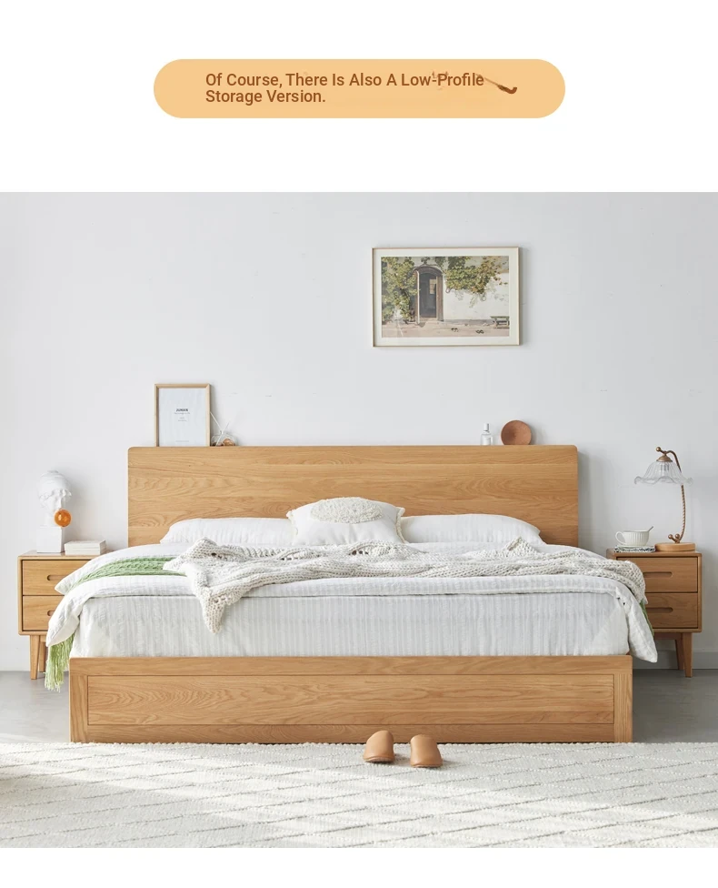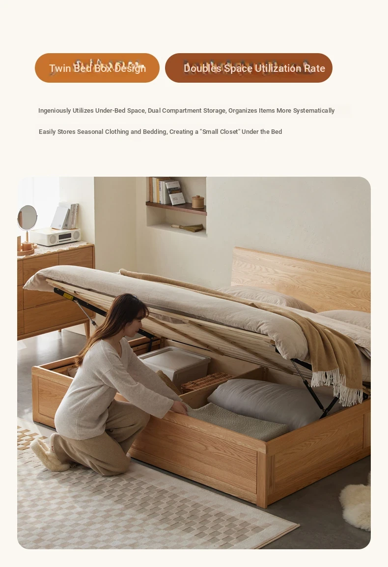 Solid Wood Storage Bed - 1.8m Nordic Oak High-Box Bed - Modern Minimalist Double Bed for Master Bedroom - Perfect Blend of Style and Functionality!