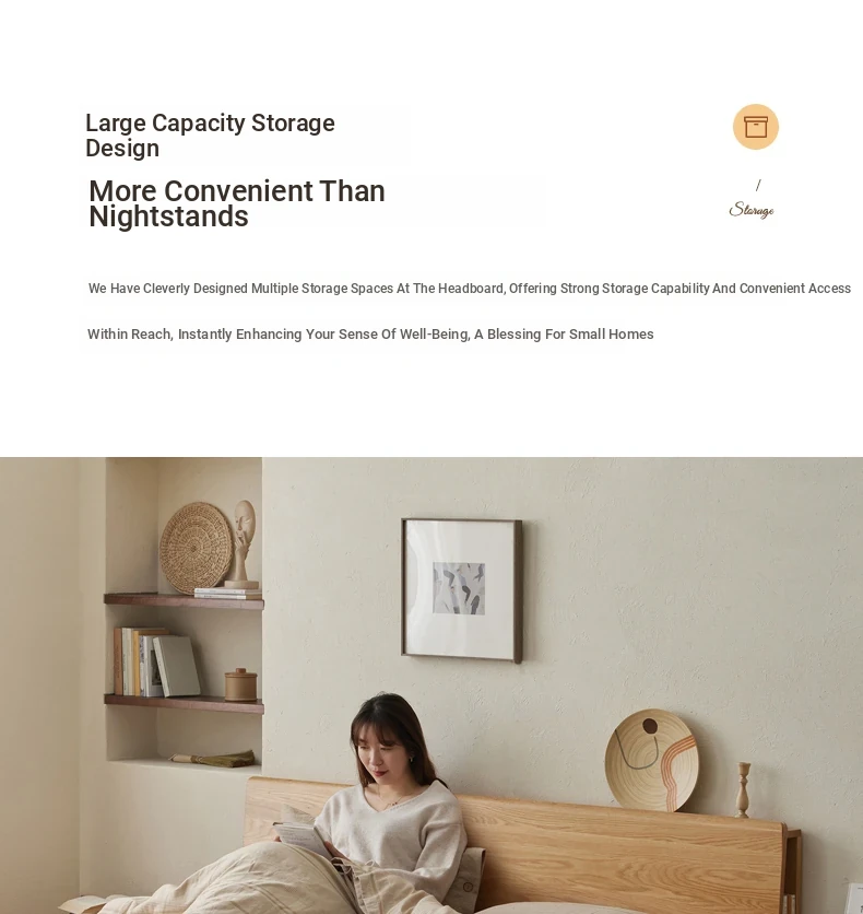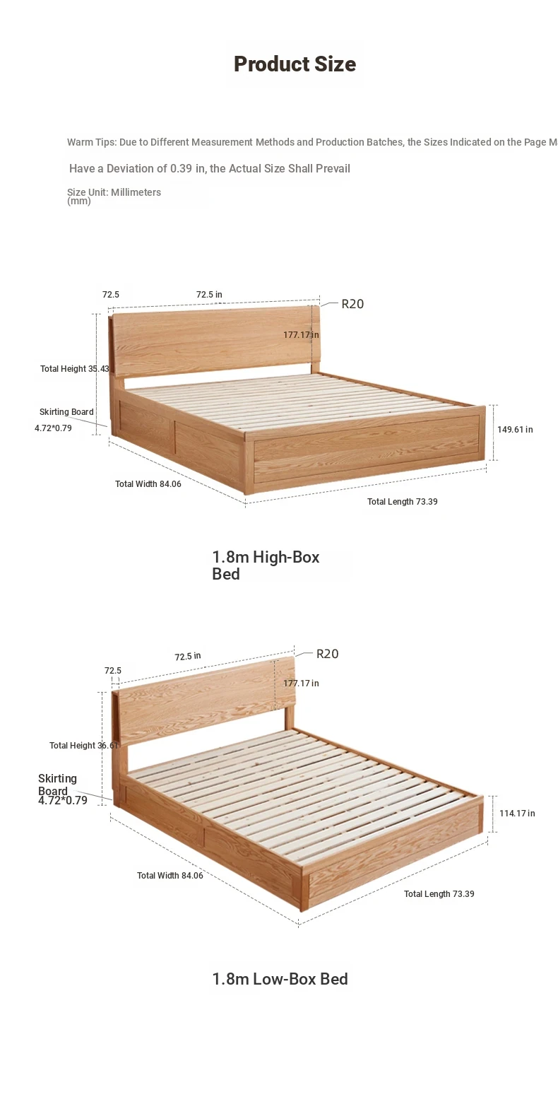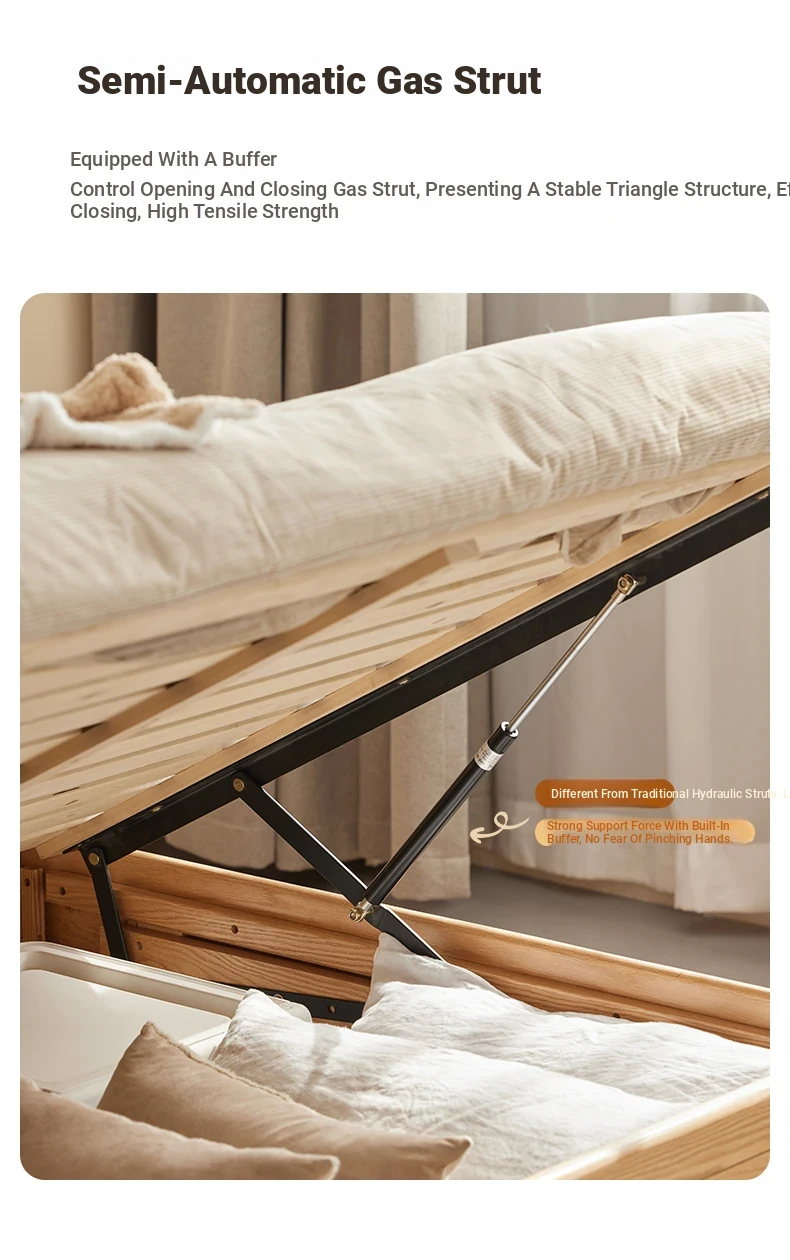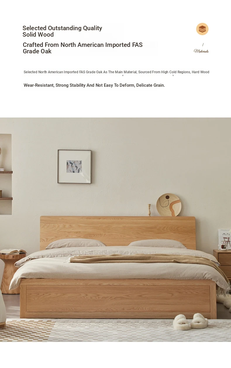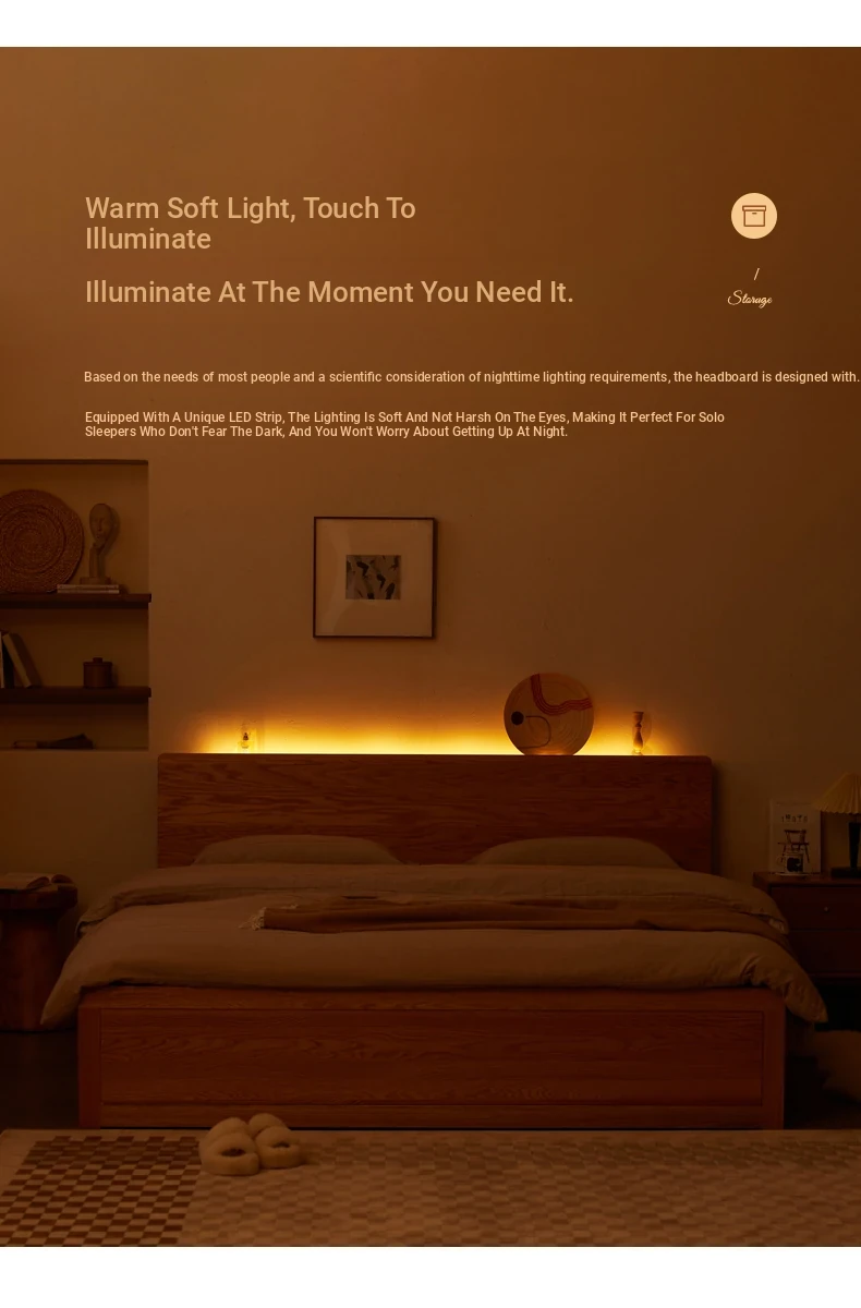 Solid Wood Storage Bed - 1.8m Nordic Oak High-Box Bed - Modern Minimalist Double Bed for Master Bedroom - Perfect Blend of Style and Functionality!