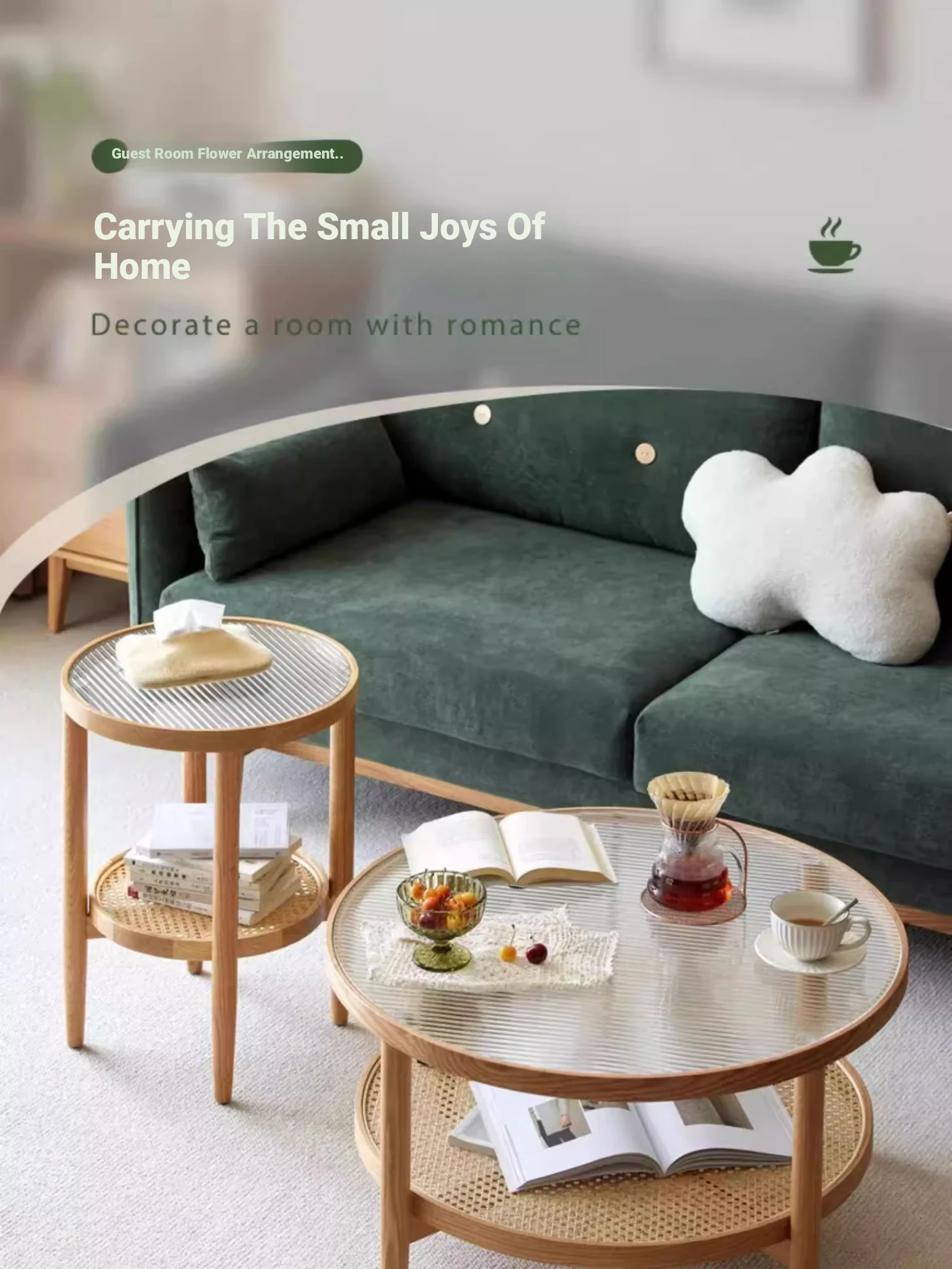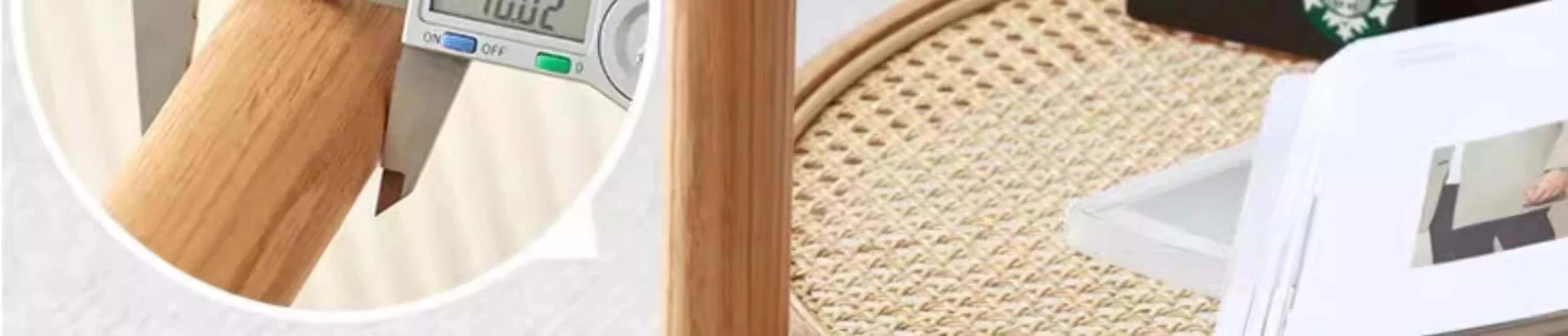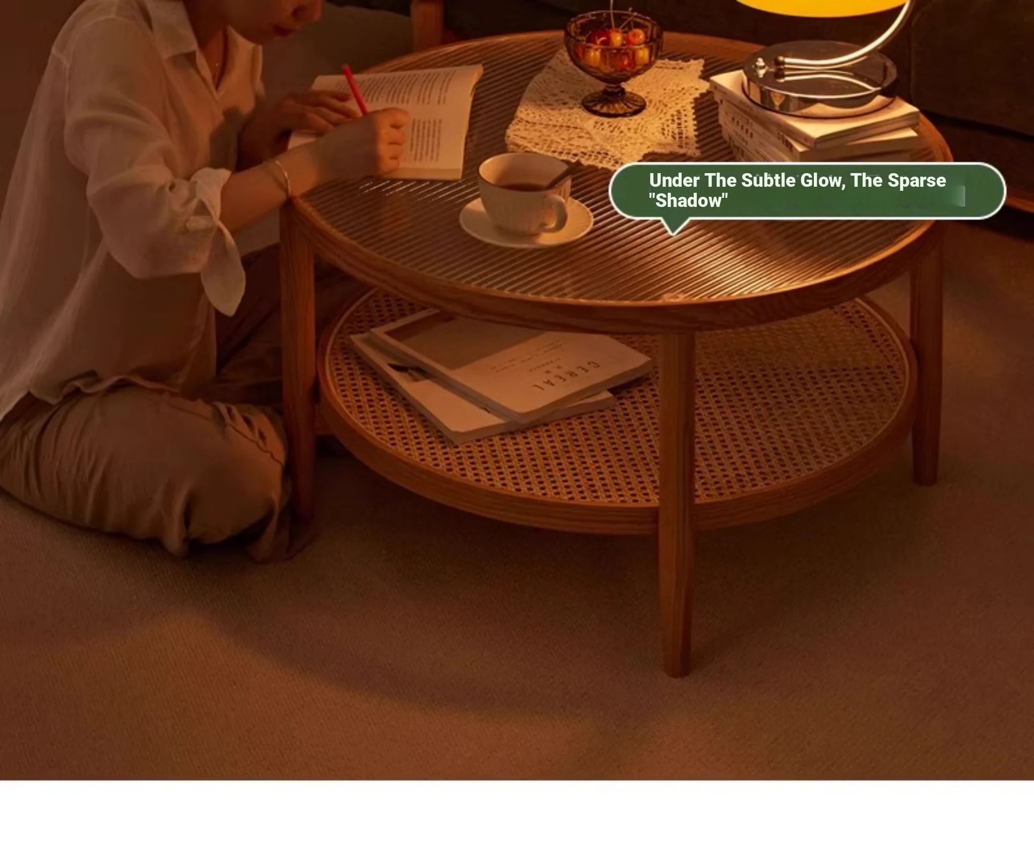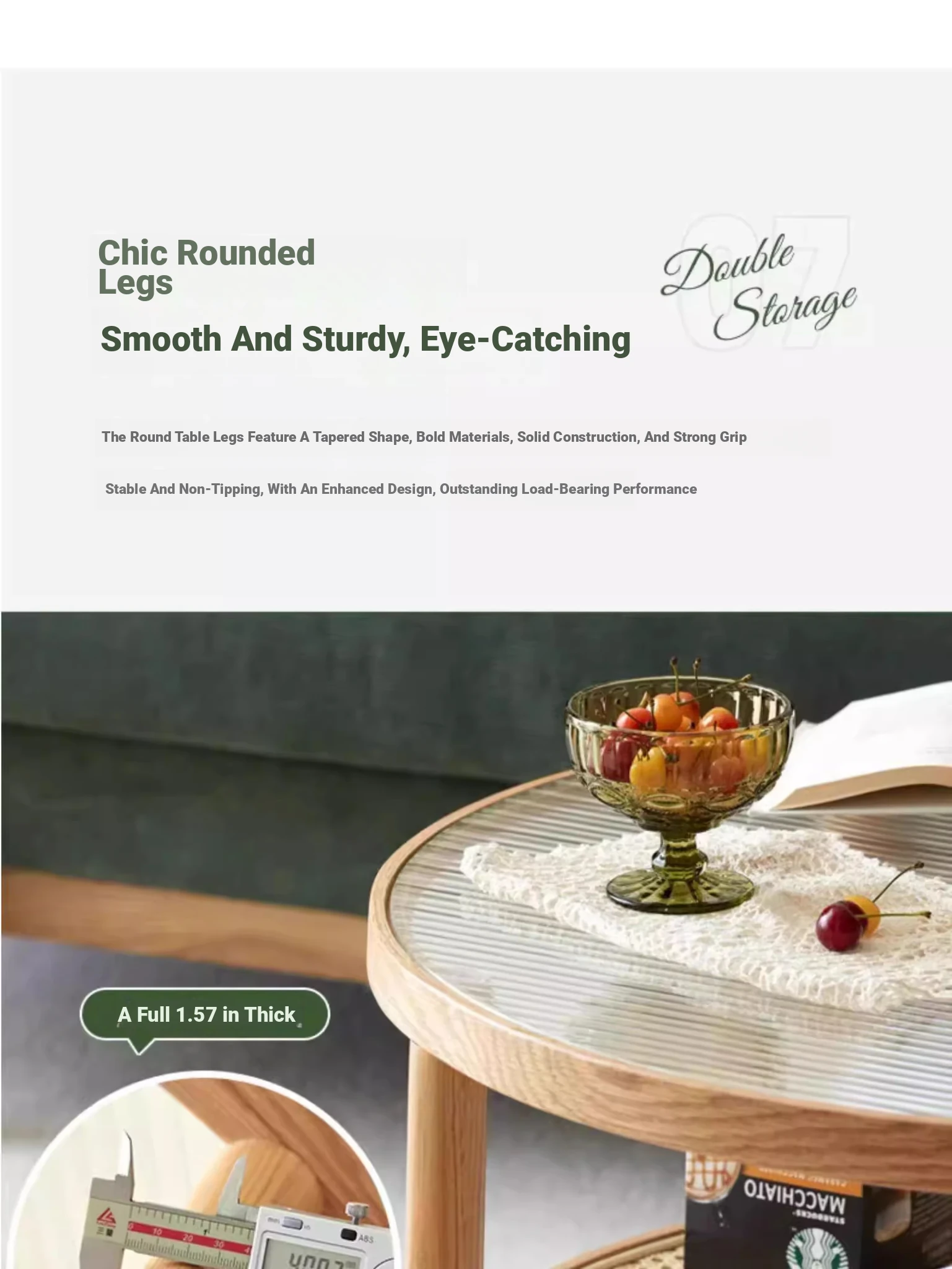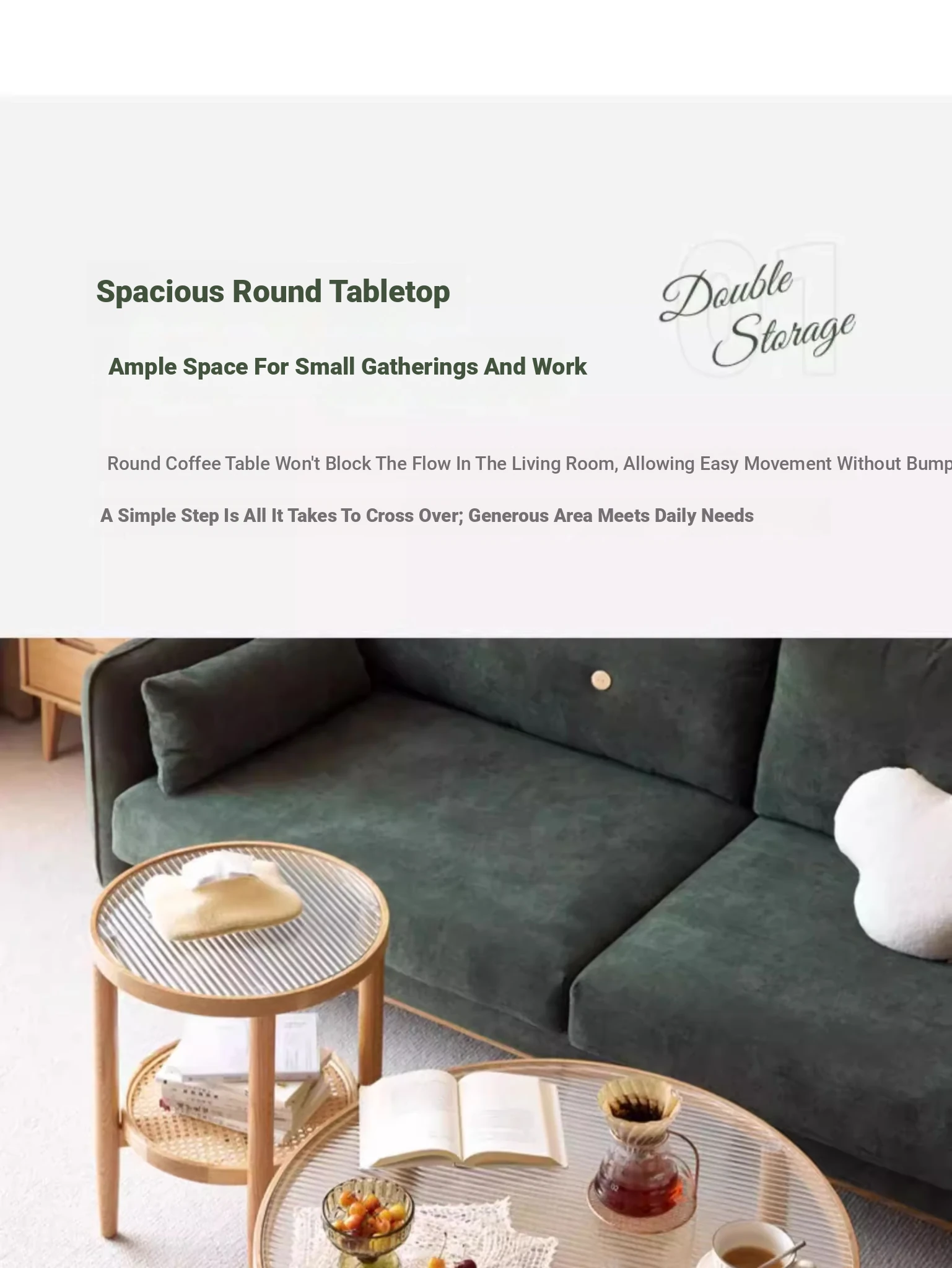 Stylish Round Coffee Table for Living Room - Modern Minimalist Design with Natural Solid Wood, Rattan Accents, and Double-layer Glass Top - Perfect for Home Decor and Entertaining