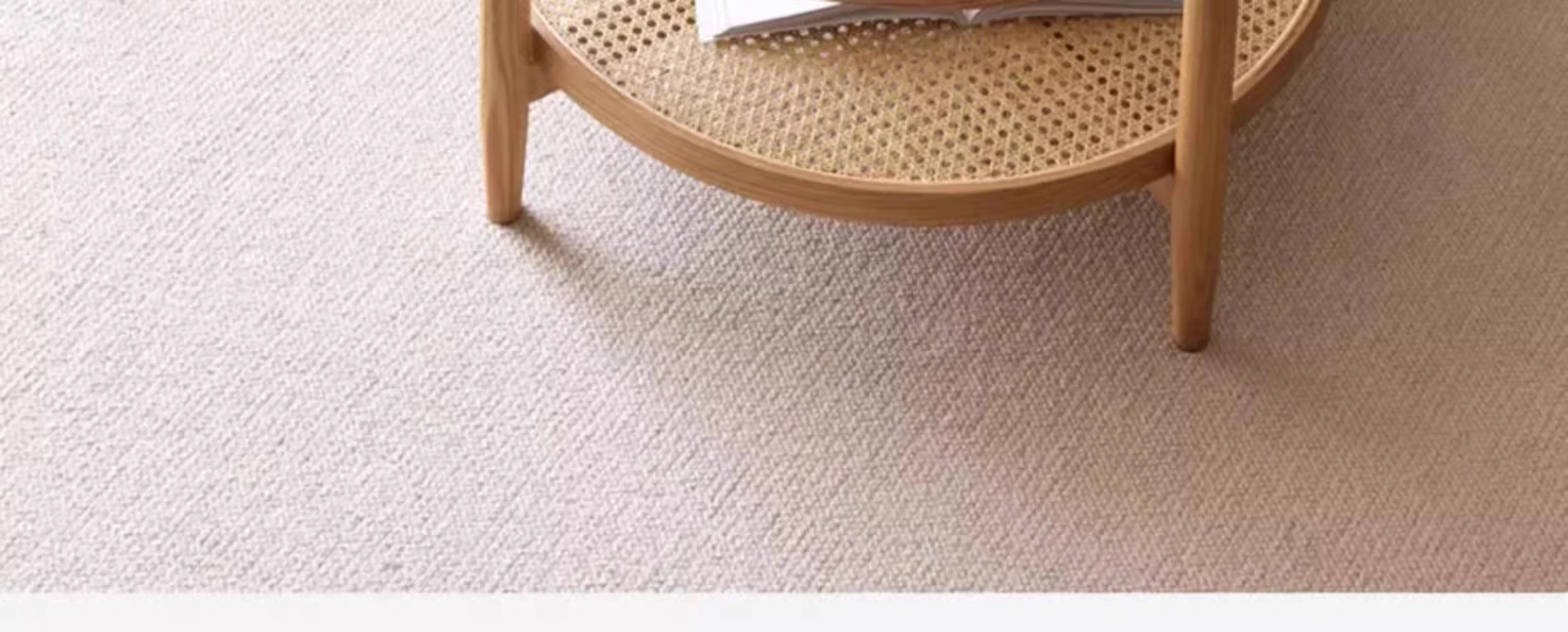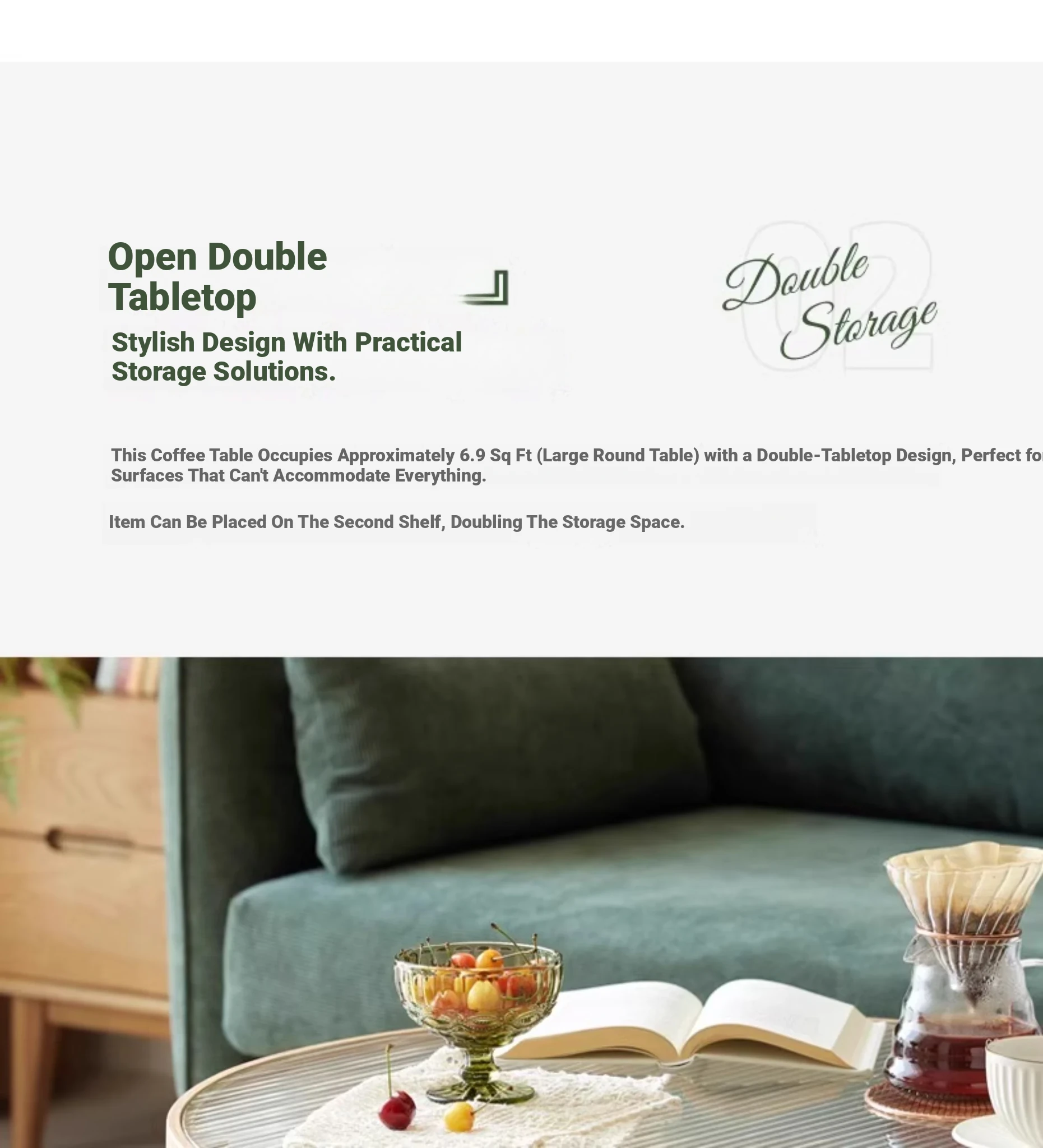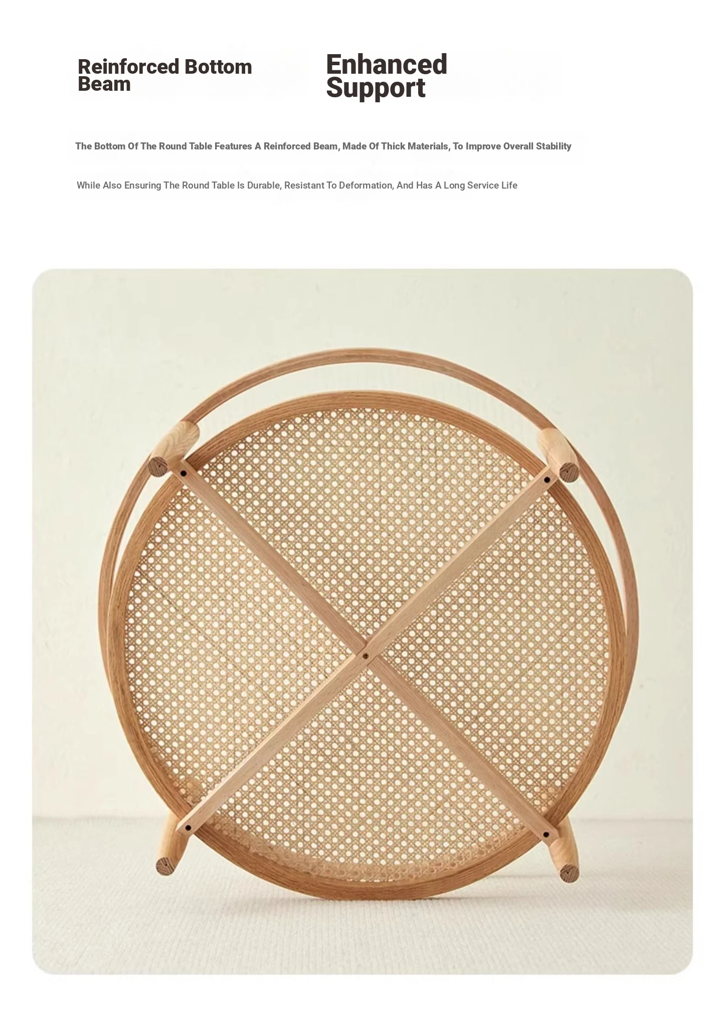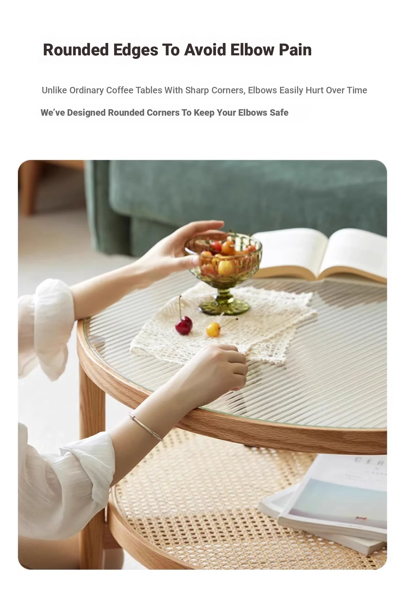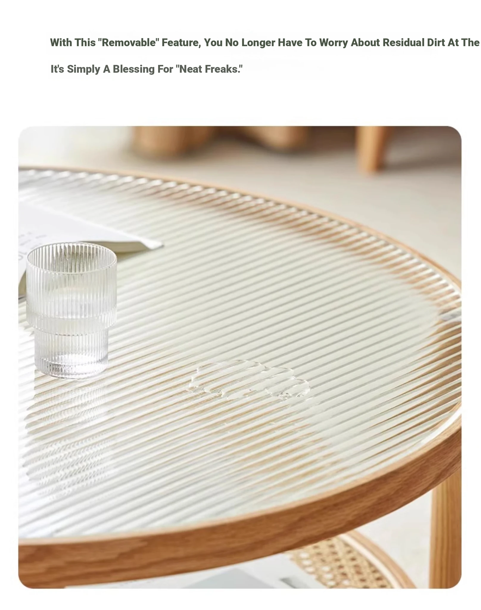 Stylish Round Coffee Table for Living Room - Modern Minimalist Design with Natural Solid Wood, Rattan Accents, and Double-layer Glass Top - Perfect for Home Decor and Entertaining