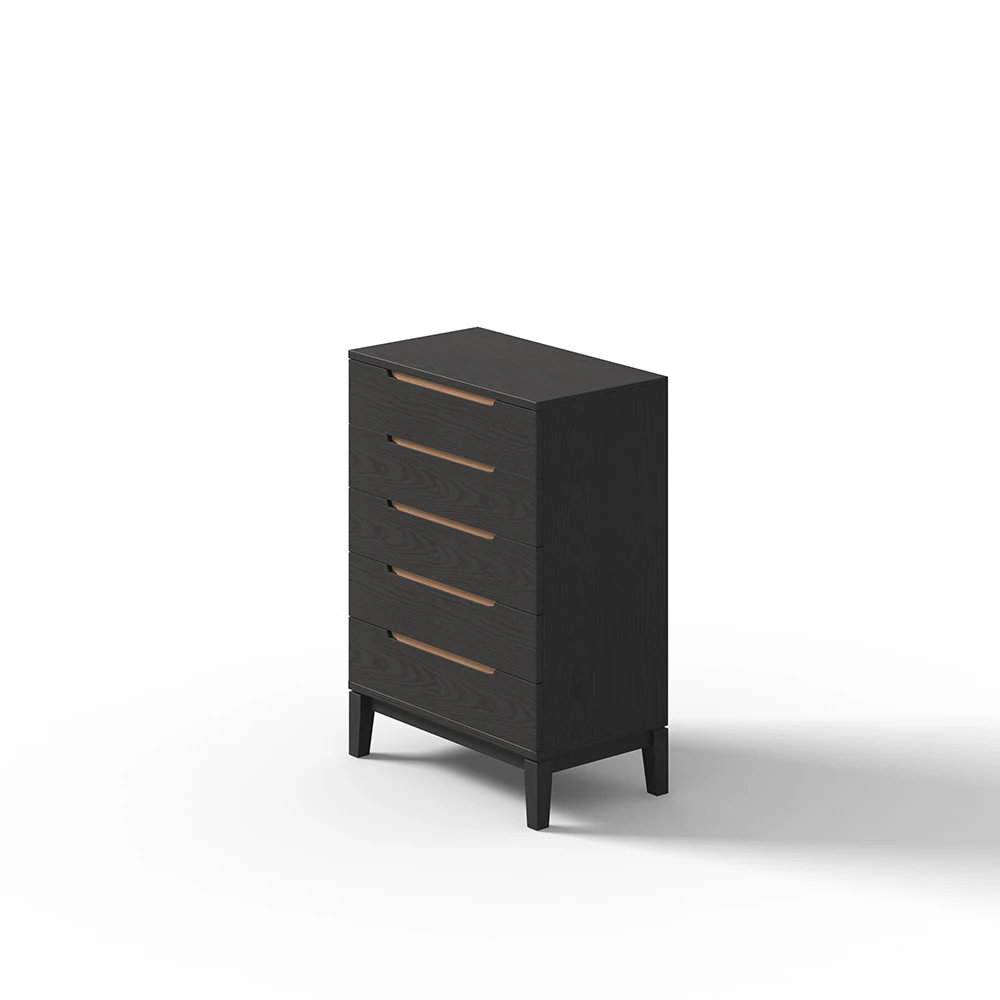 Stylish Solid Wood 5-Drawer Chest for Bedroom Storage - Minimalist Design, Wall-Mounted, Black & Red Oak Finish - Perfect for Home Organization