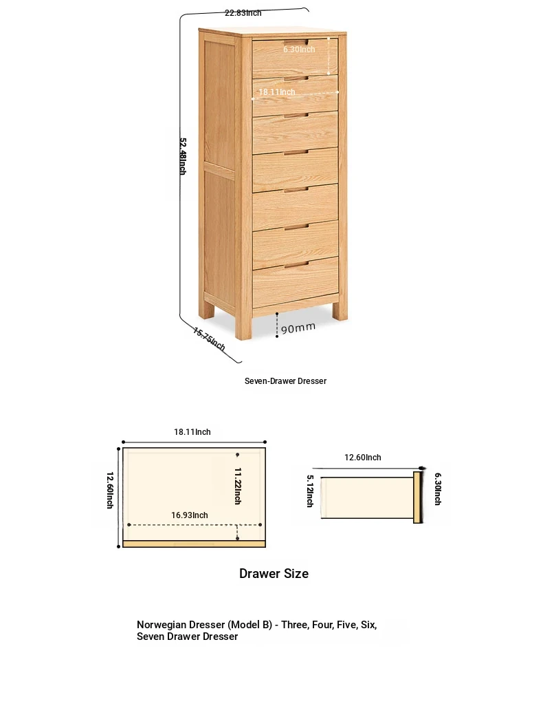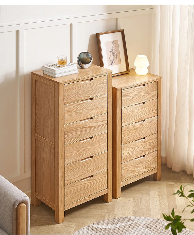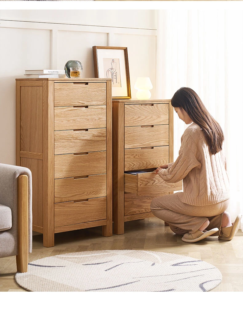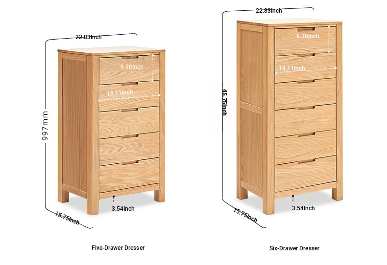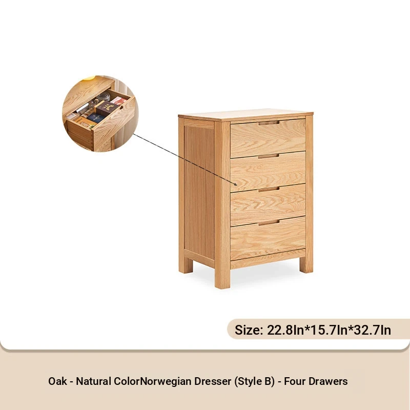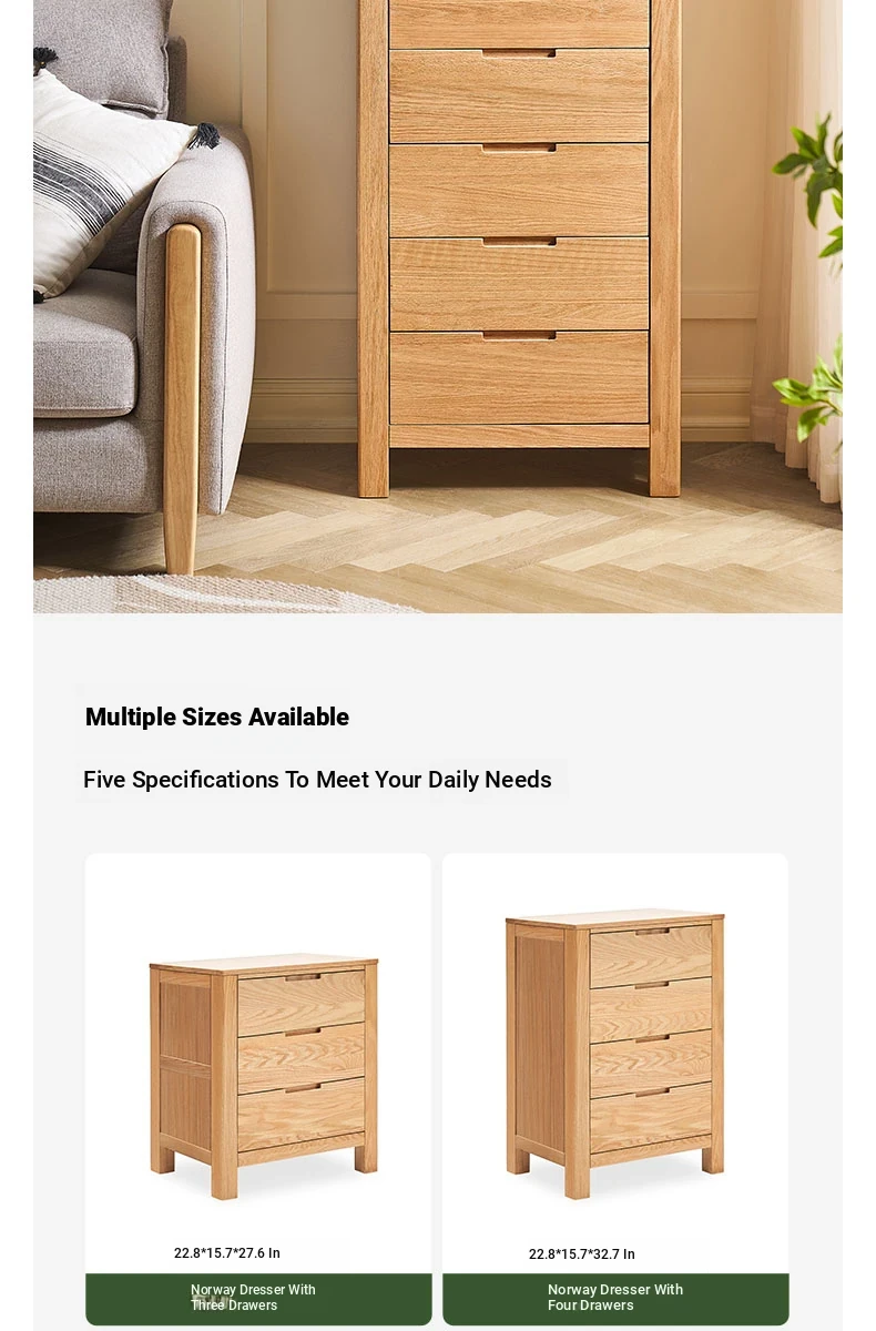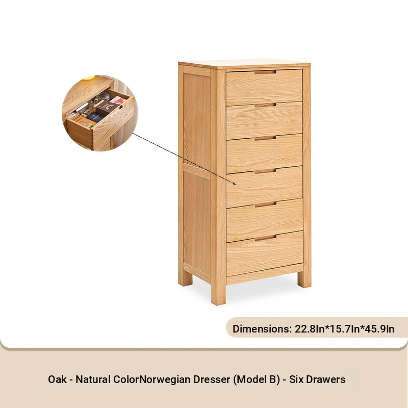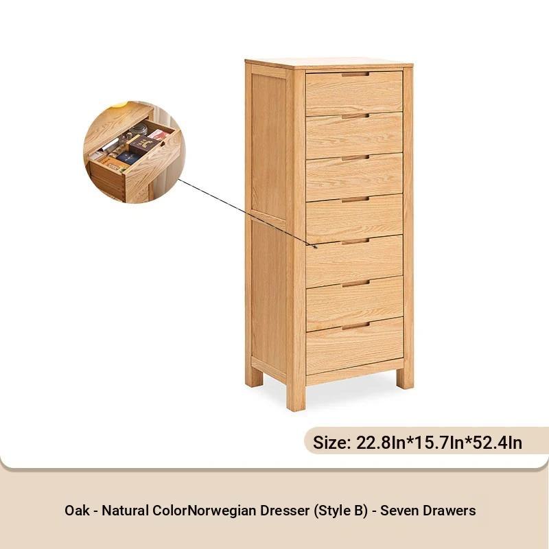 Stylish Solid Wood 5-Drawer Dresser - Scandinavian Modern Oak Storage Cabinet for Bedroom & Home - Elegant and Durable Organizer with Seven Spacious Drawers