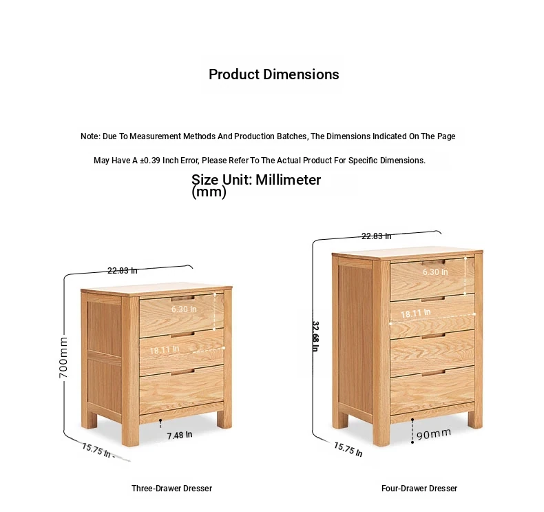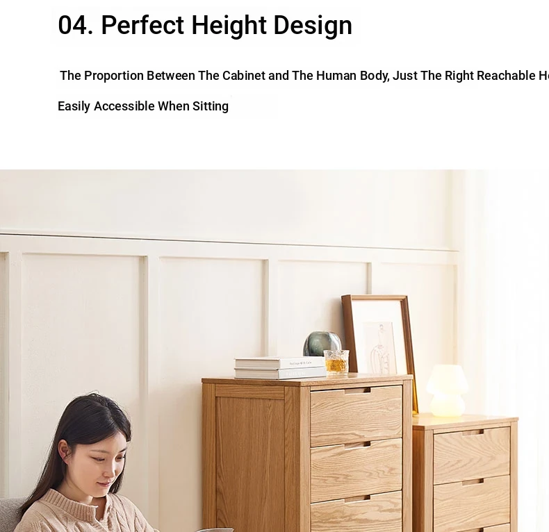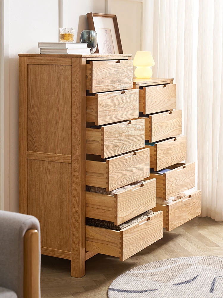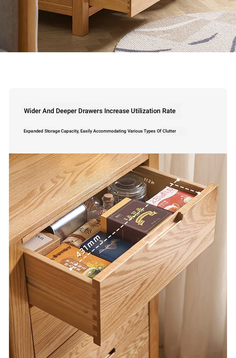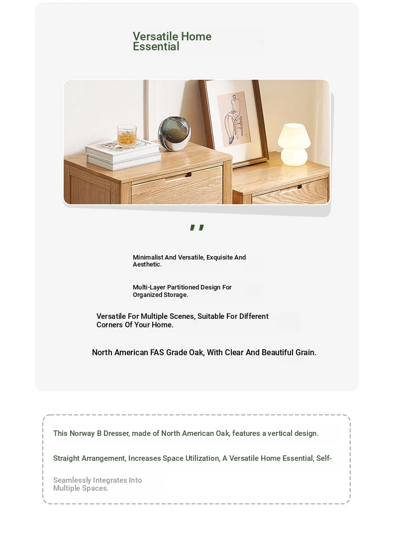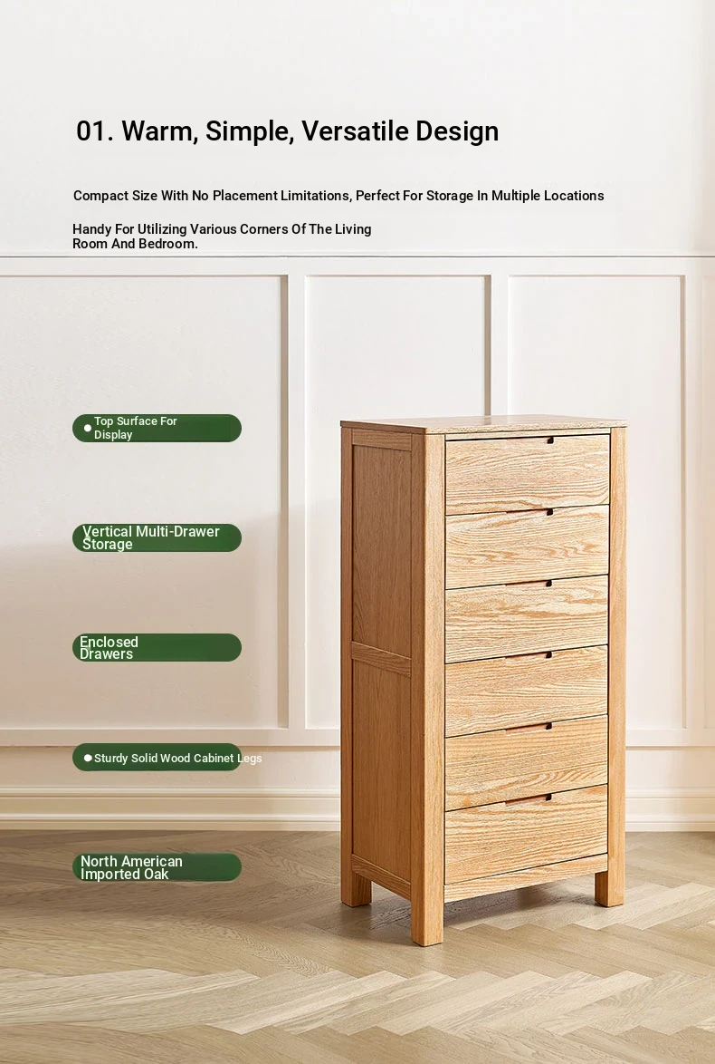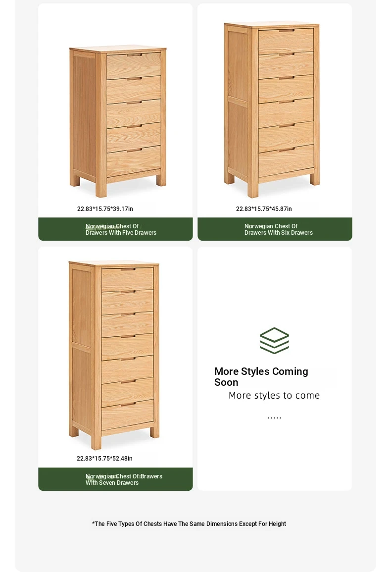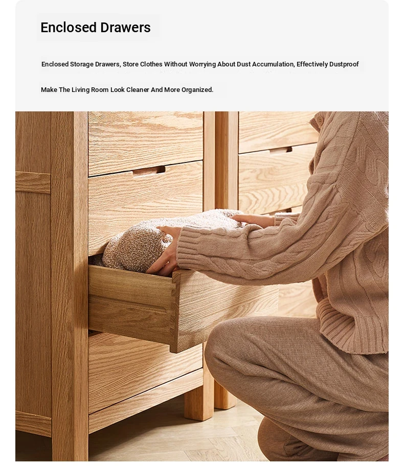 Stylish Solid Wood 5-Drawer Dresser - Scandinavian Modern Oak Storage Cabinet for Bedroom & Home - Elegant and Durable Organizer with Seven Spacious Drawers