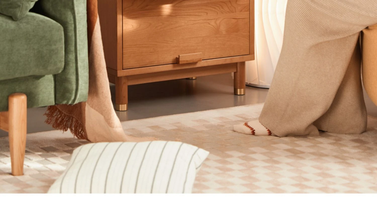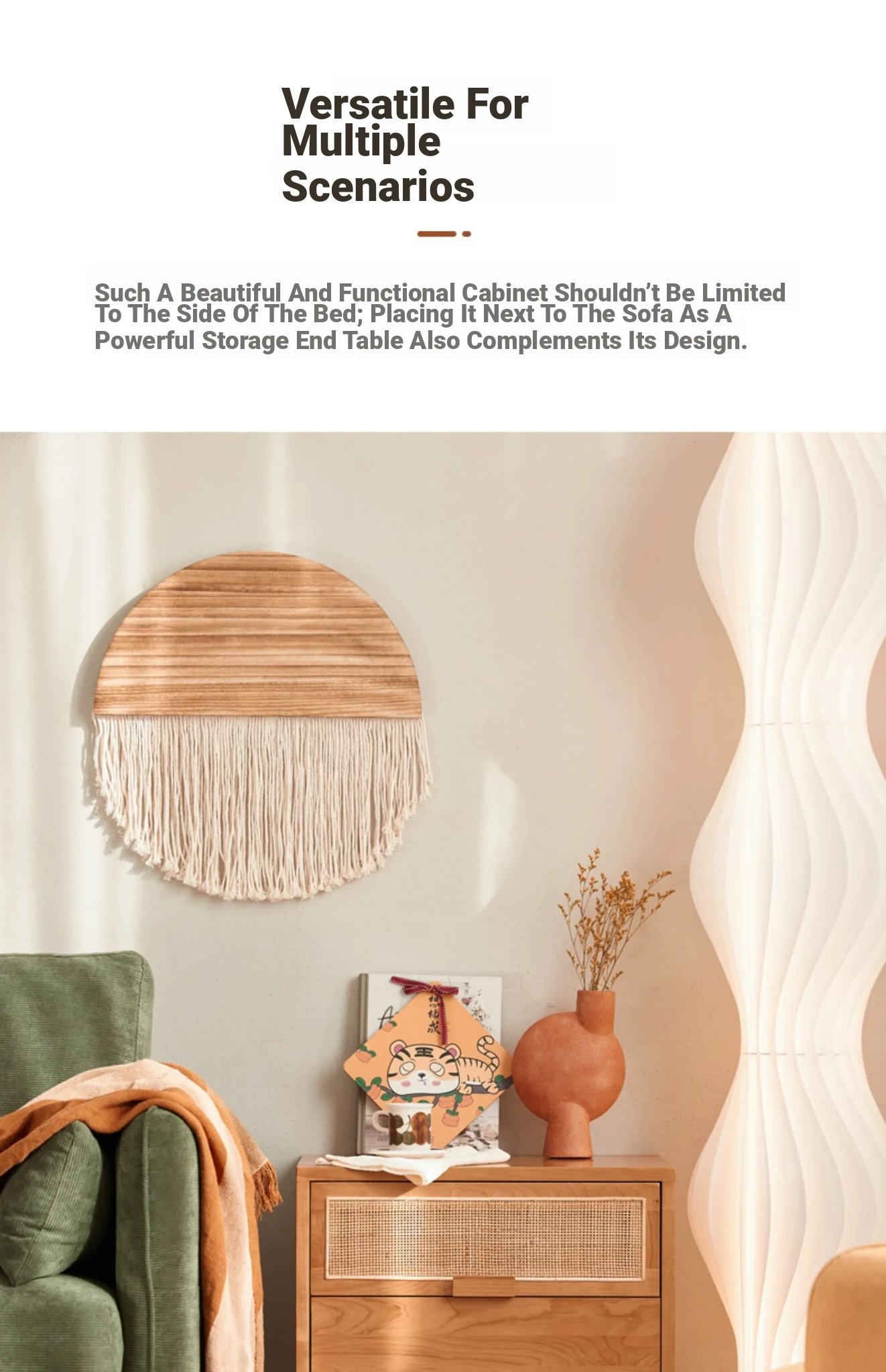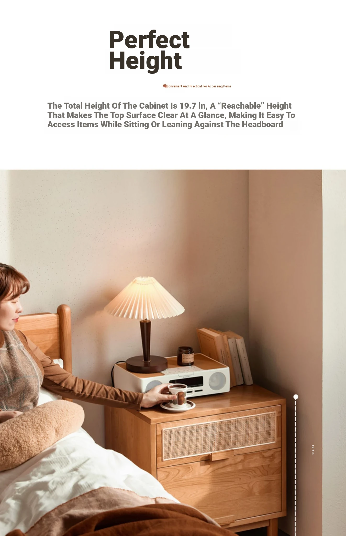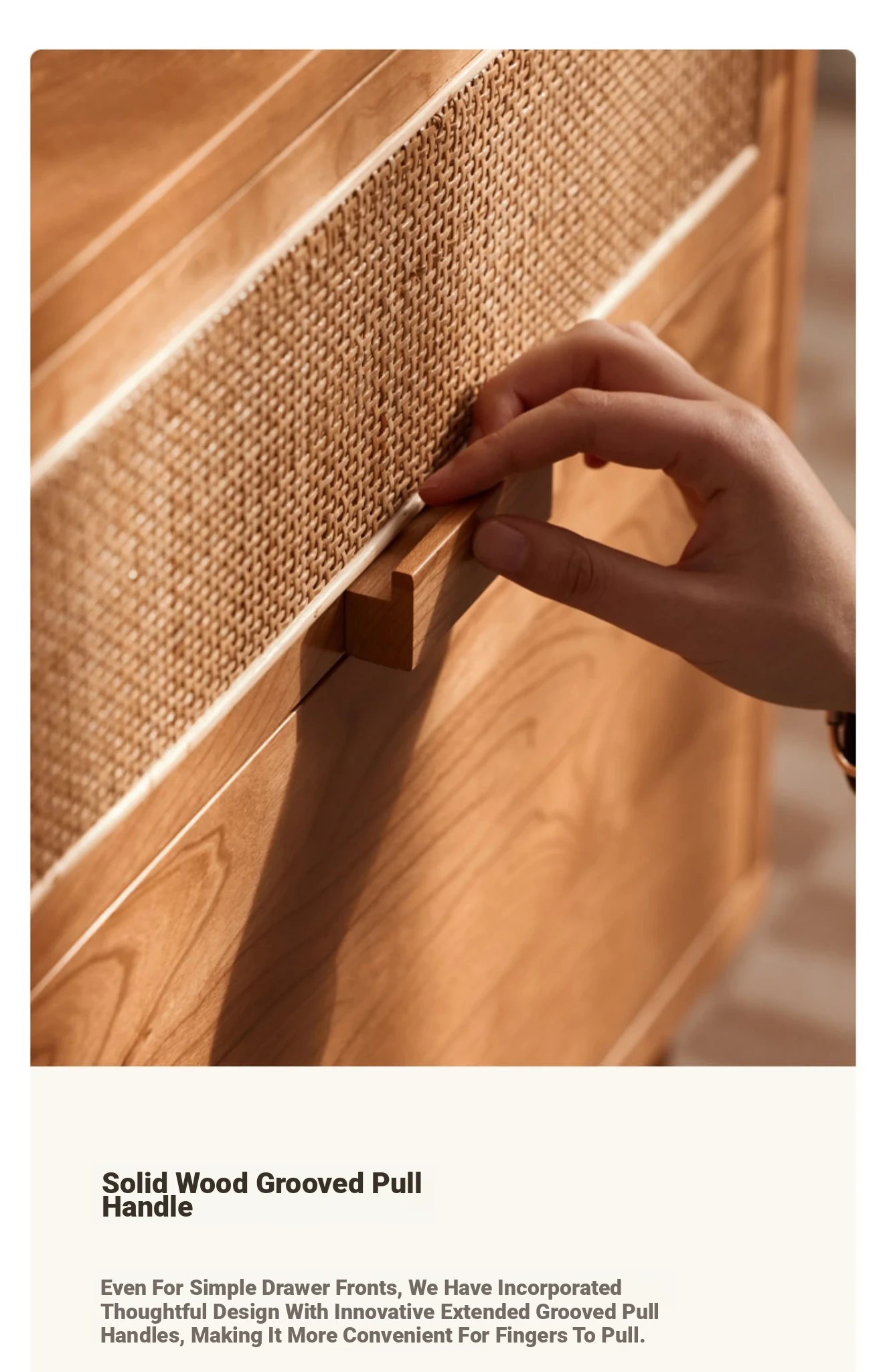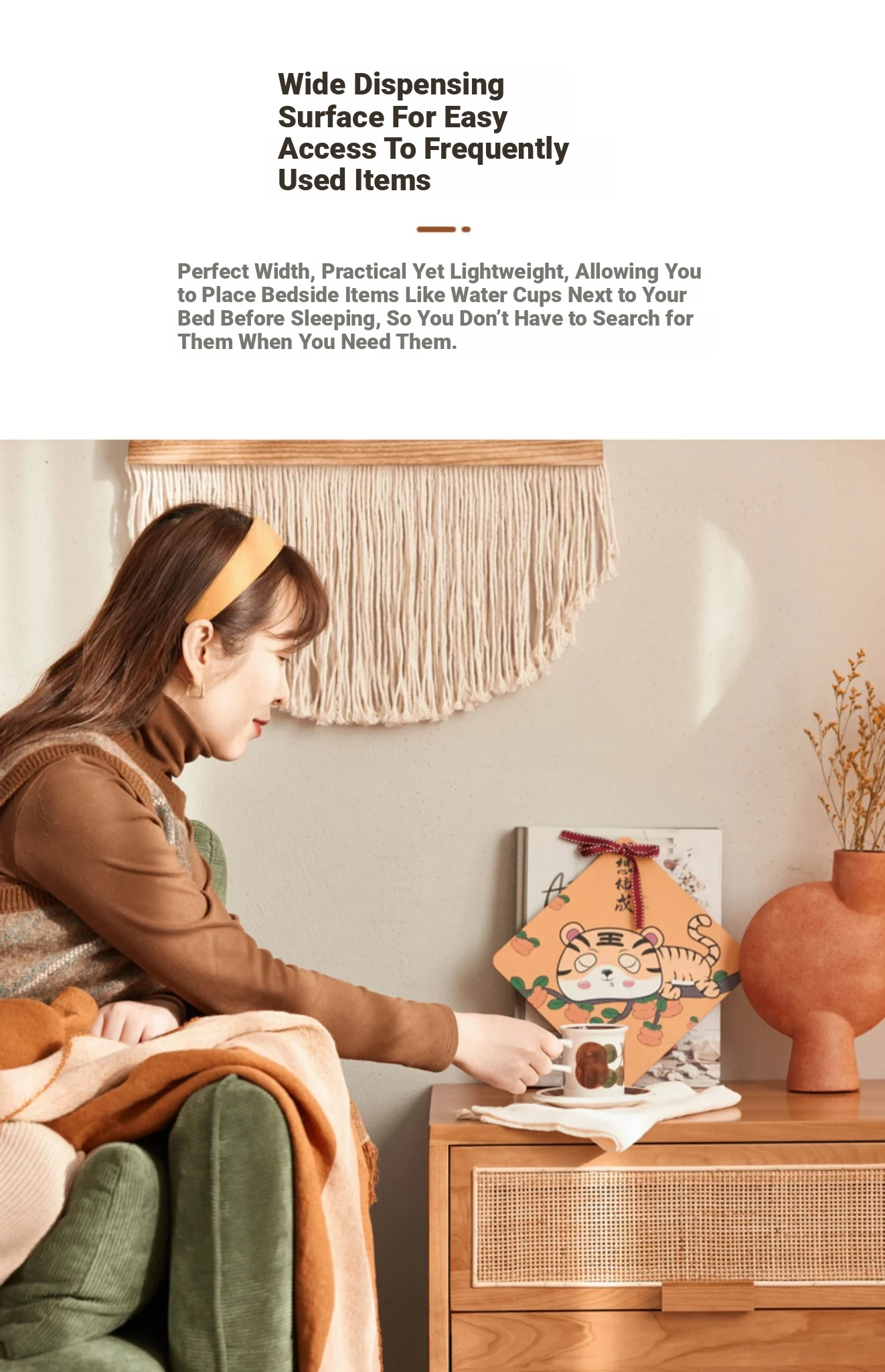 Stylish Solid Wood Nightstand - Scandinavian Minimalist Cherry Wood Bedside Cabinet with Japanese Woven Storage for Your Bedroom