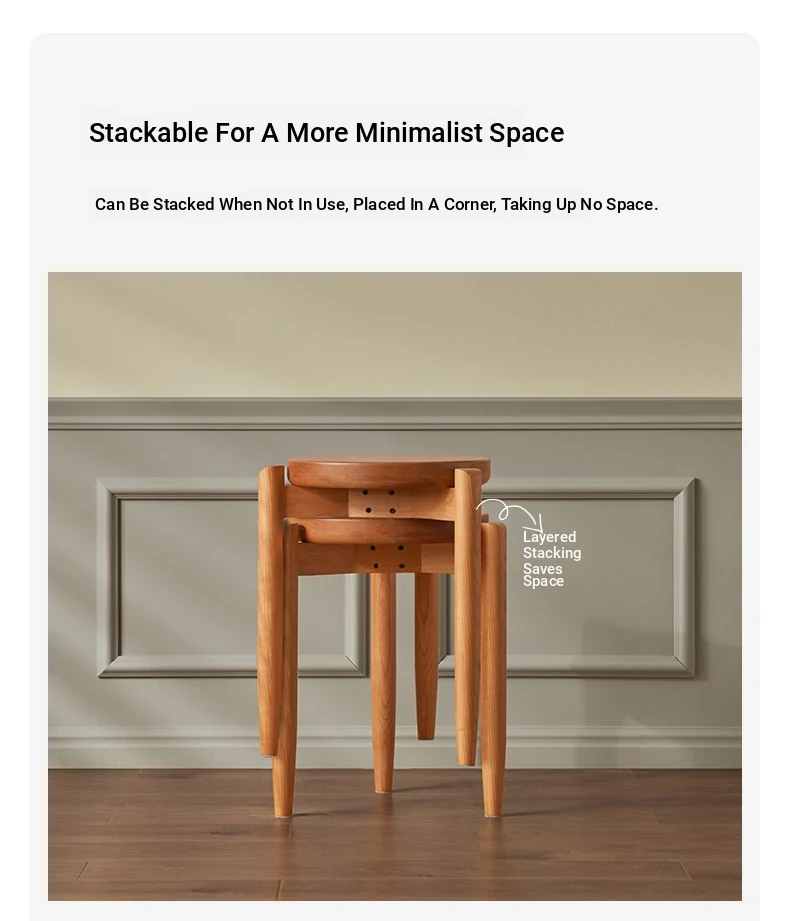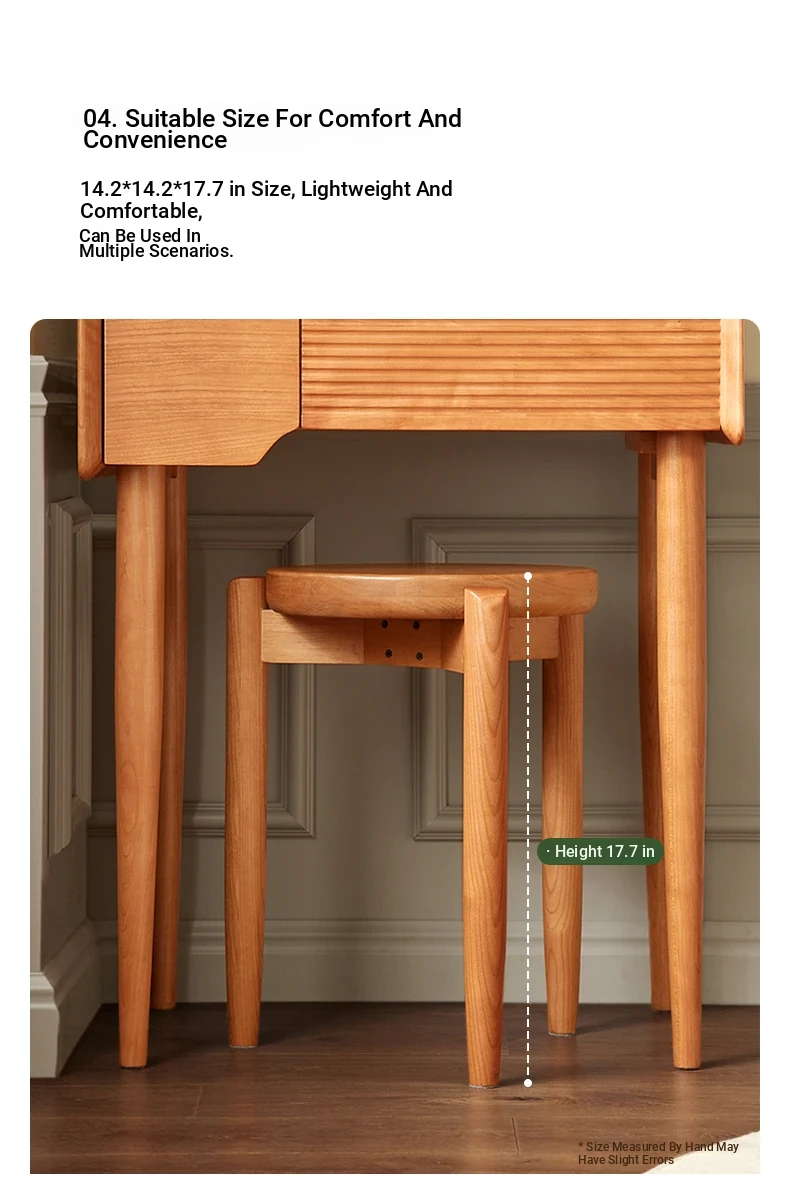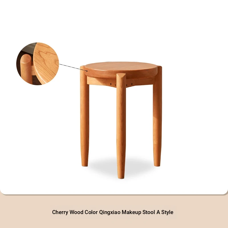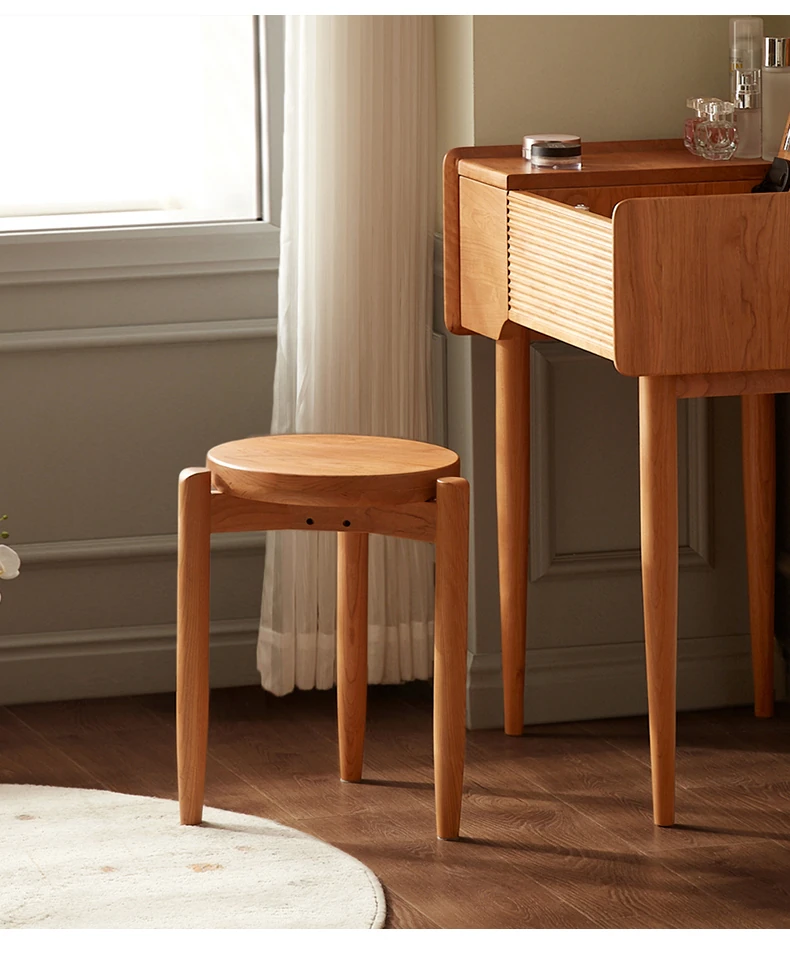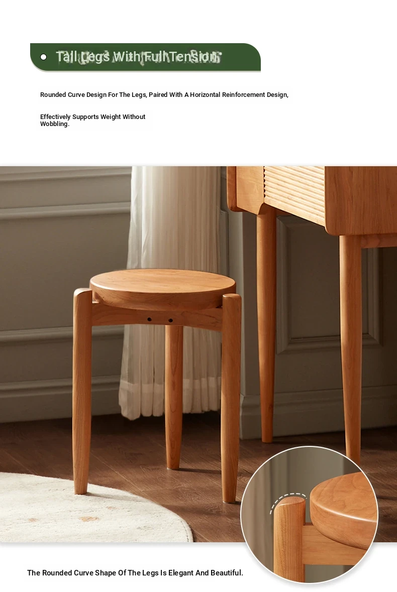 "Stylish Solid Wood Vanity Stool - Cherry Wood Stacking Stool for Small Spaces, Ideal for Makeup or Dining - Compact Round Design Perfect for Apartments"