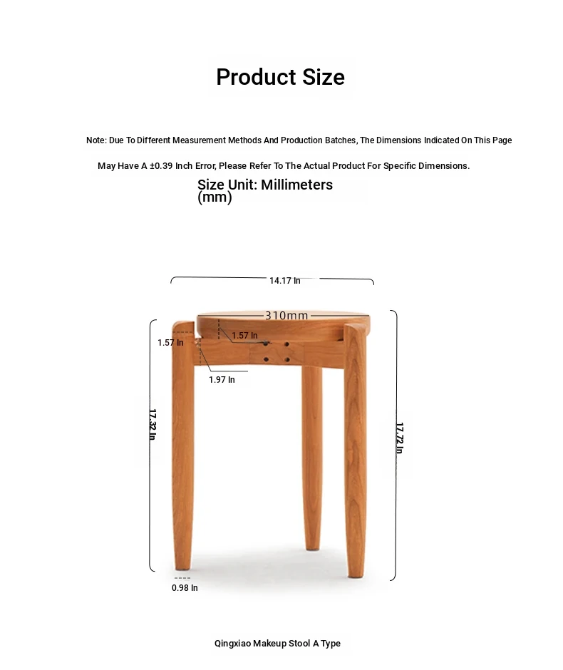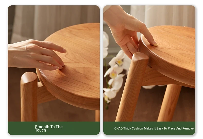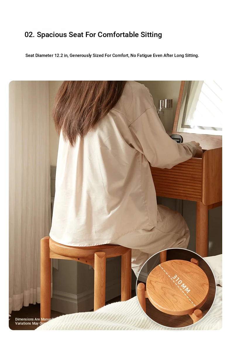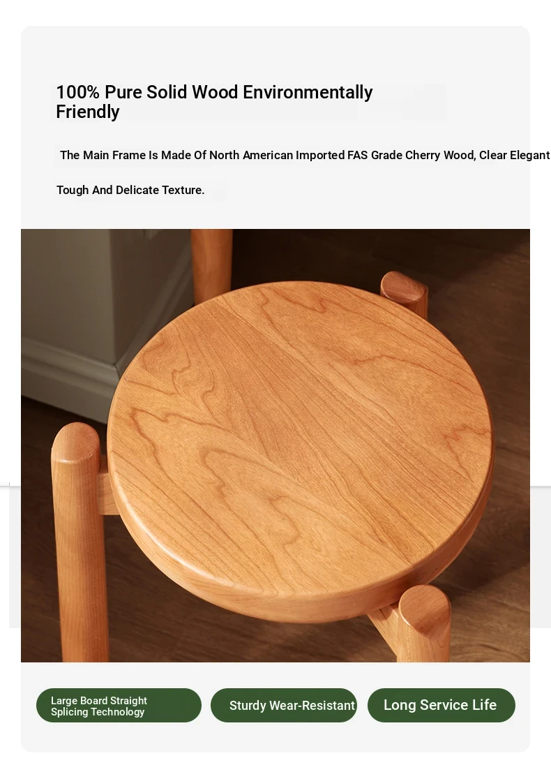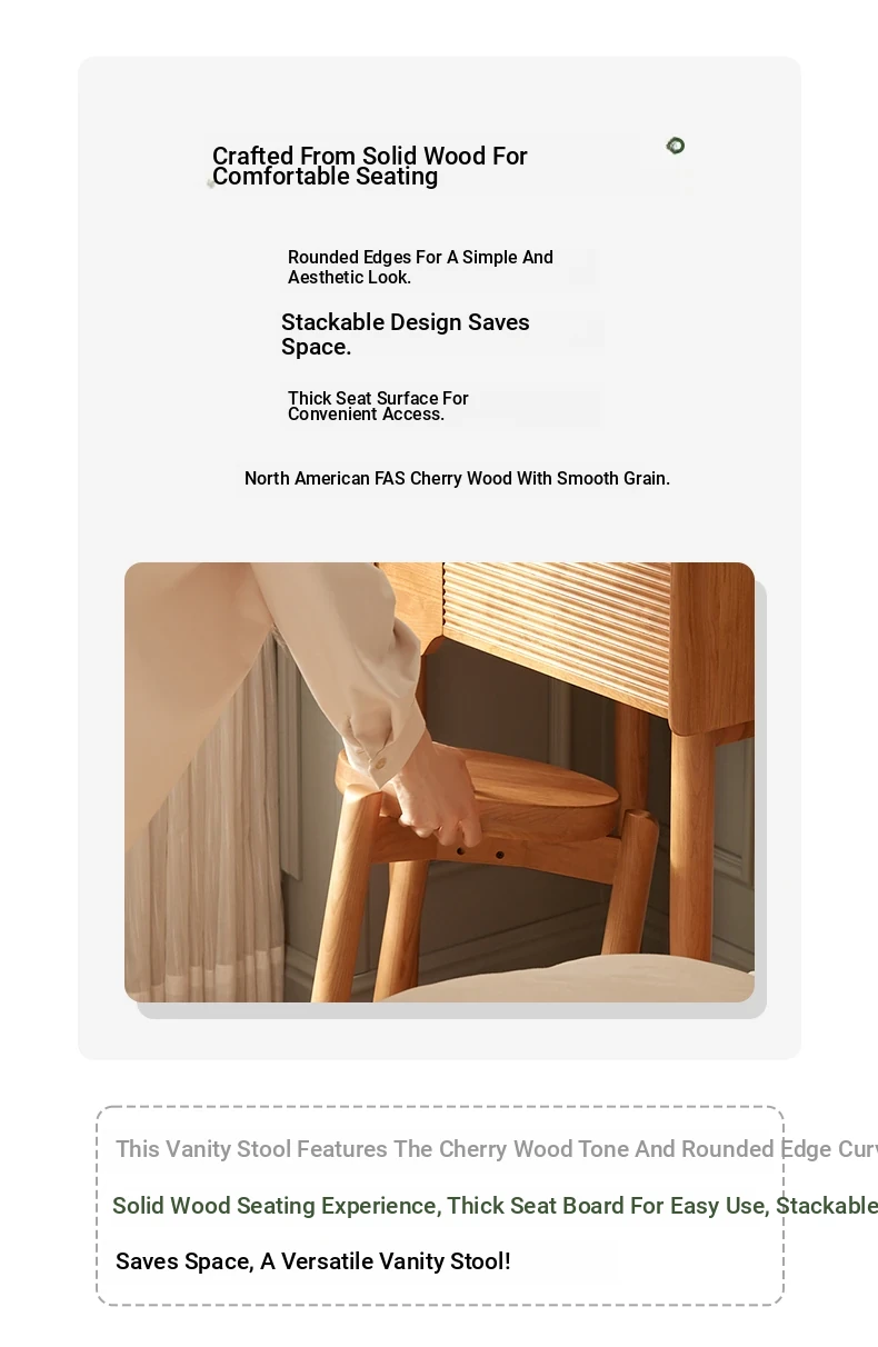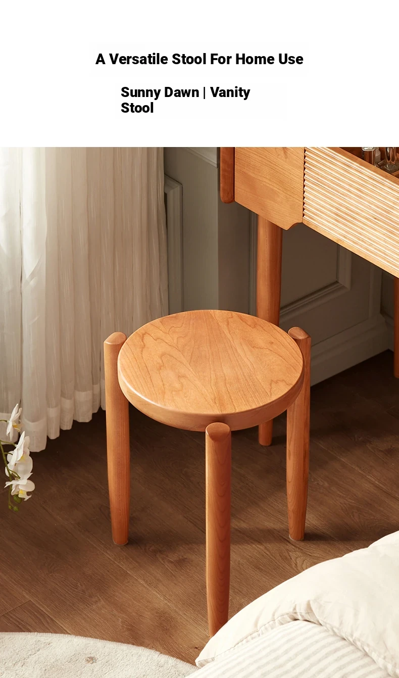 "Stylish Solid Wood Vanity Stool - Cherry Wood Stacking Stool for Small Spaces, Ideal for Makeup or Dining - Compact Round Design Perfect for Apartments"