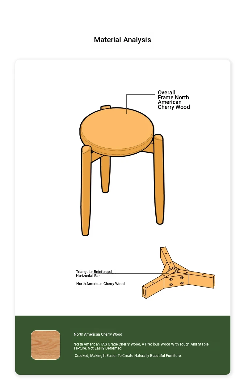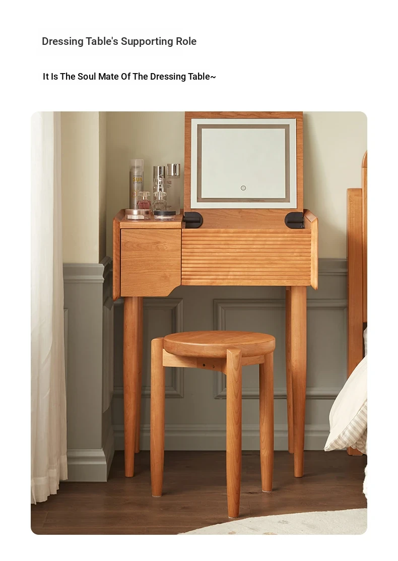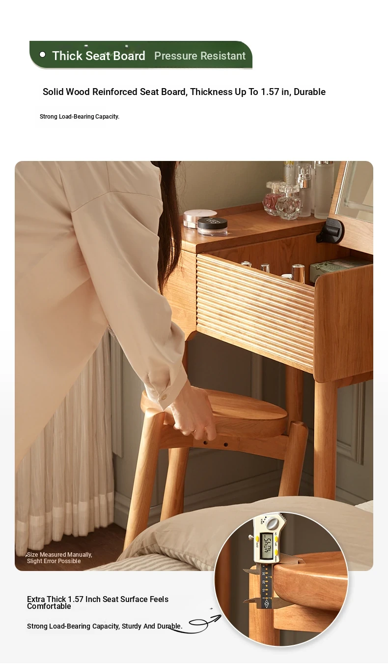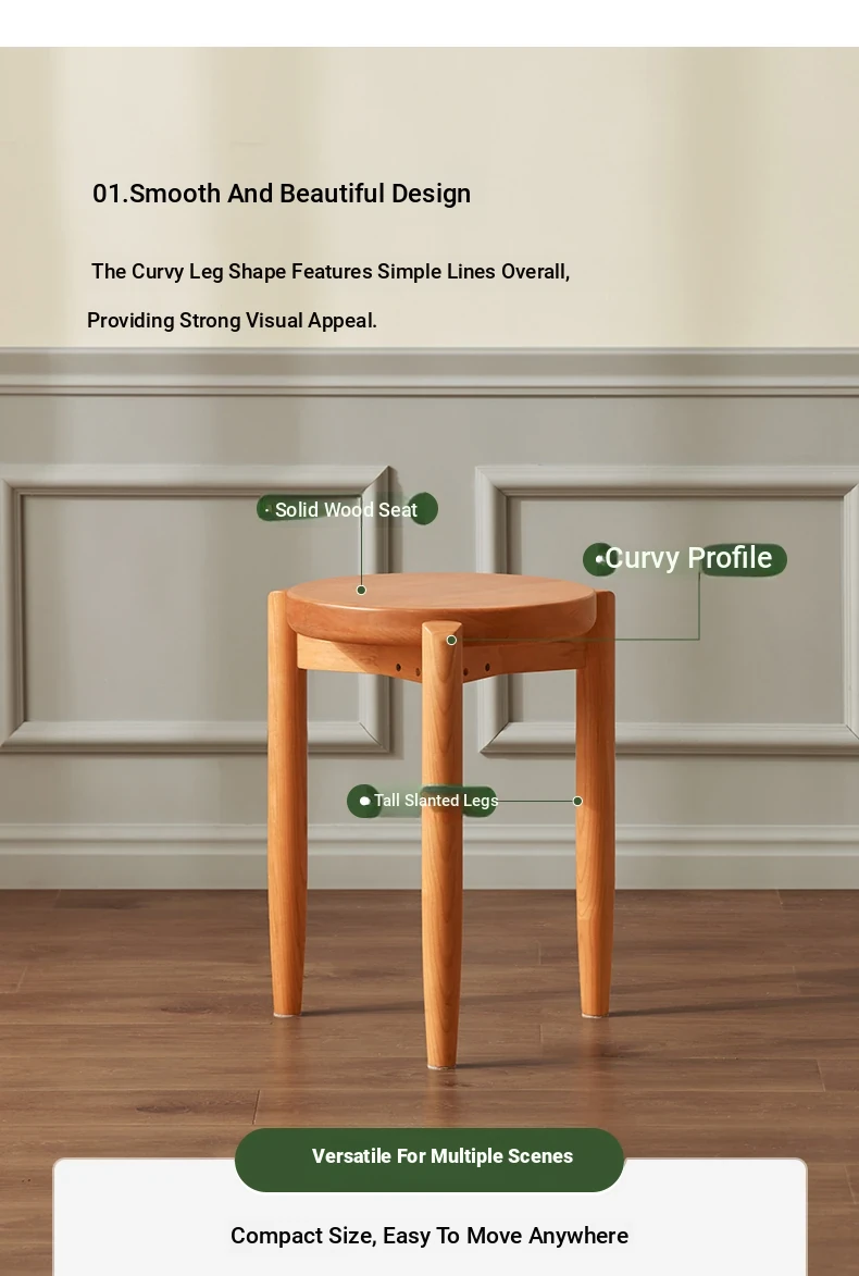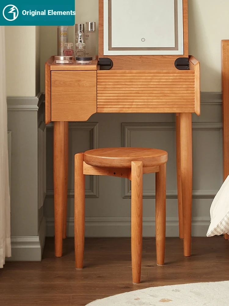 "Stylish Solid Wood Vanity Stool - Cherry Wood Stacking Stool for Small Spaces, Ideal for Makeup or Dining - Compact Round Design Perfect for Apartments"