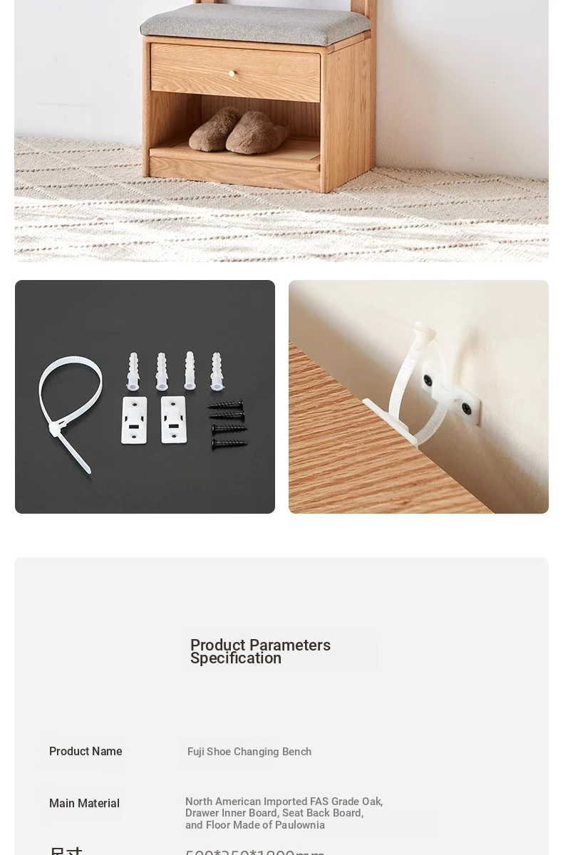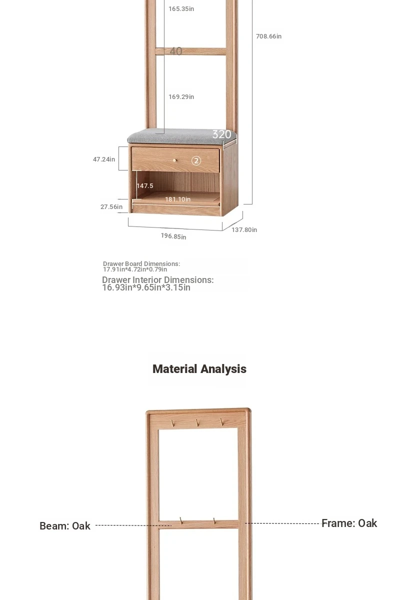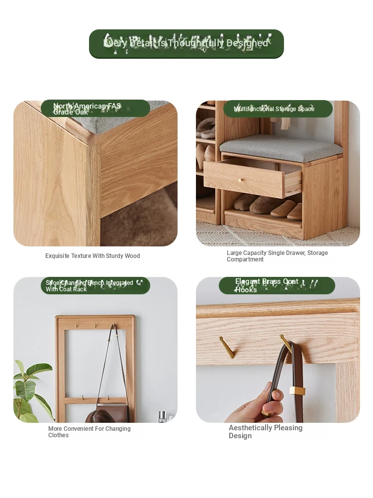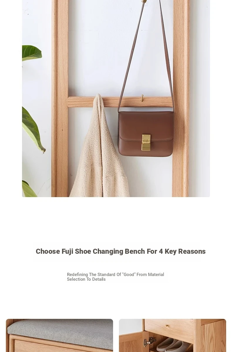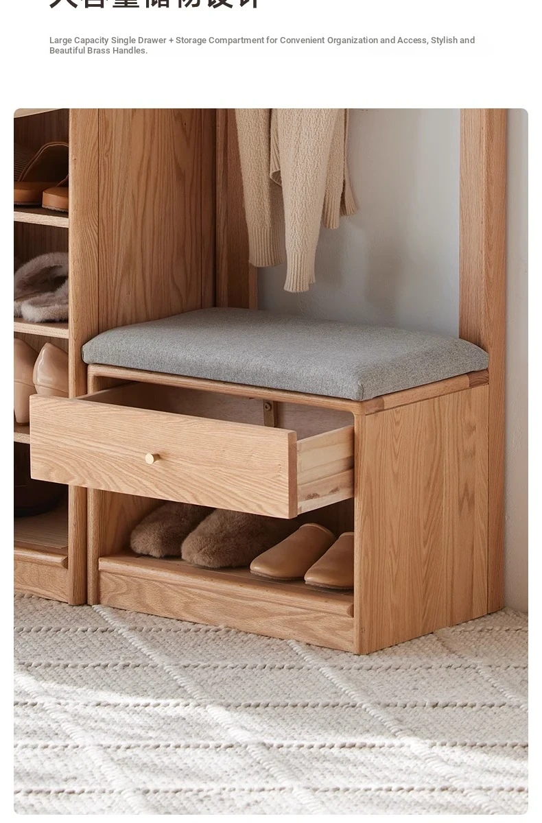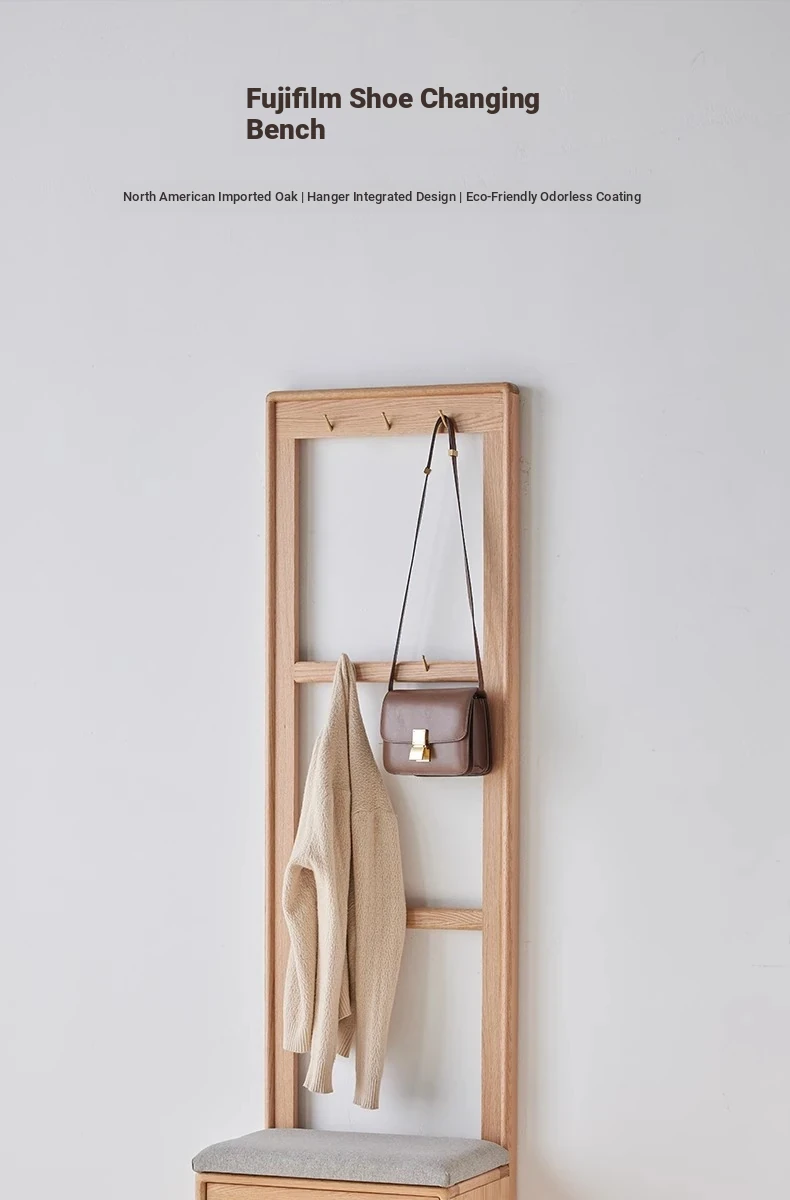[Log color]-oak shoe stool hanger integration (B3098)(19.69in*13.78in*70.87in)