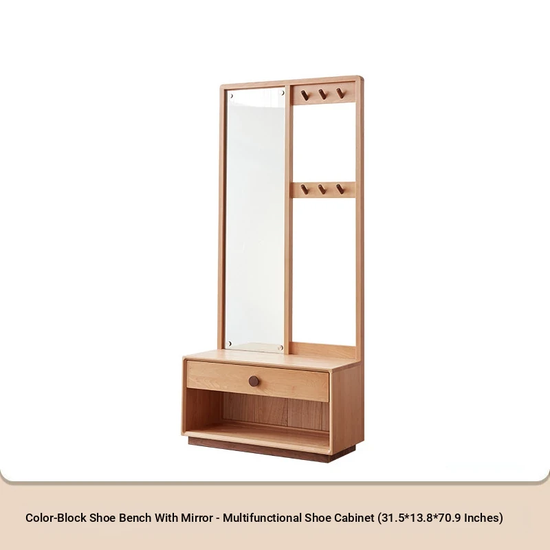 [Color matching with Mirror]-Beech multifunctional shoe changing cabinet (F7092)(31.50in*13.78in*70.87in)