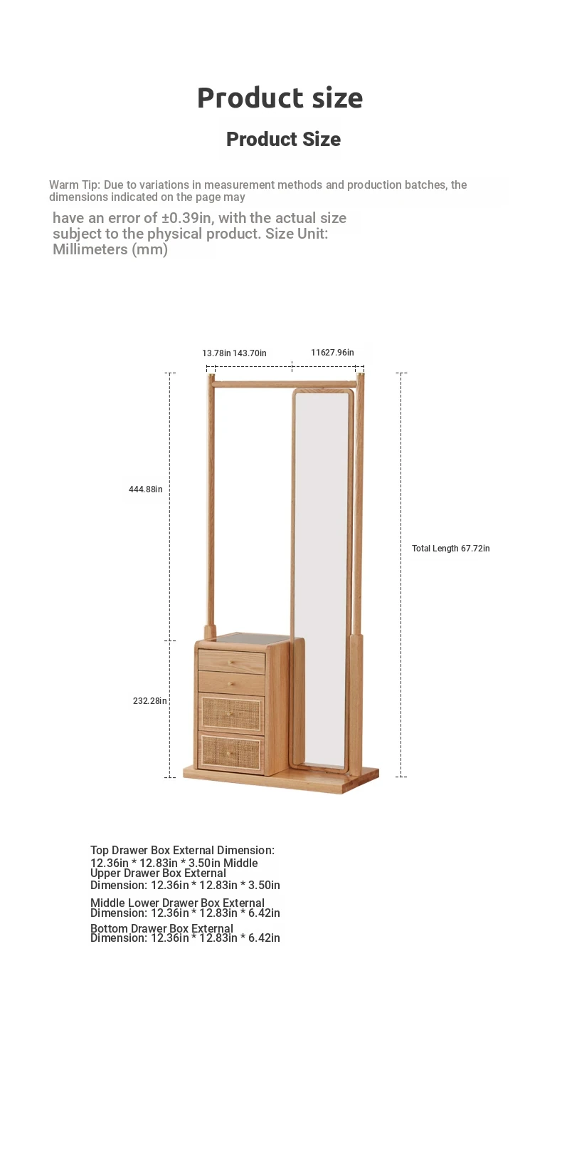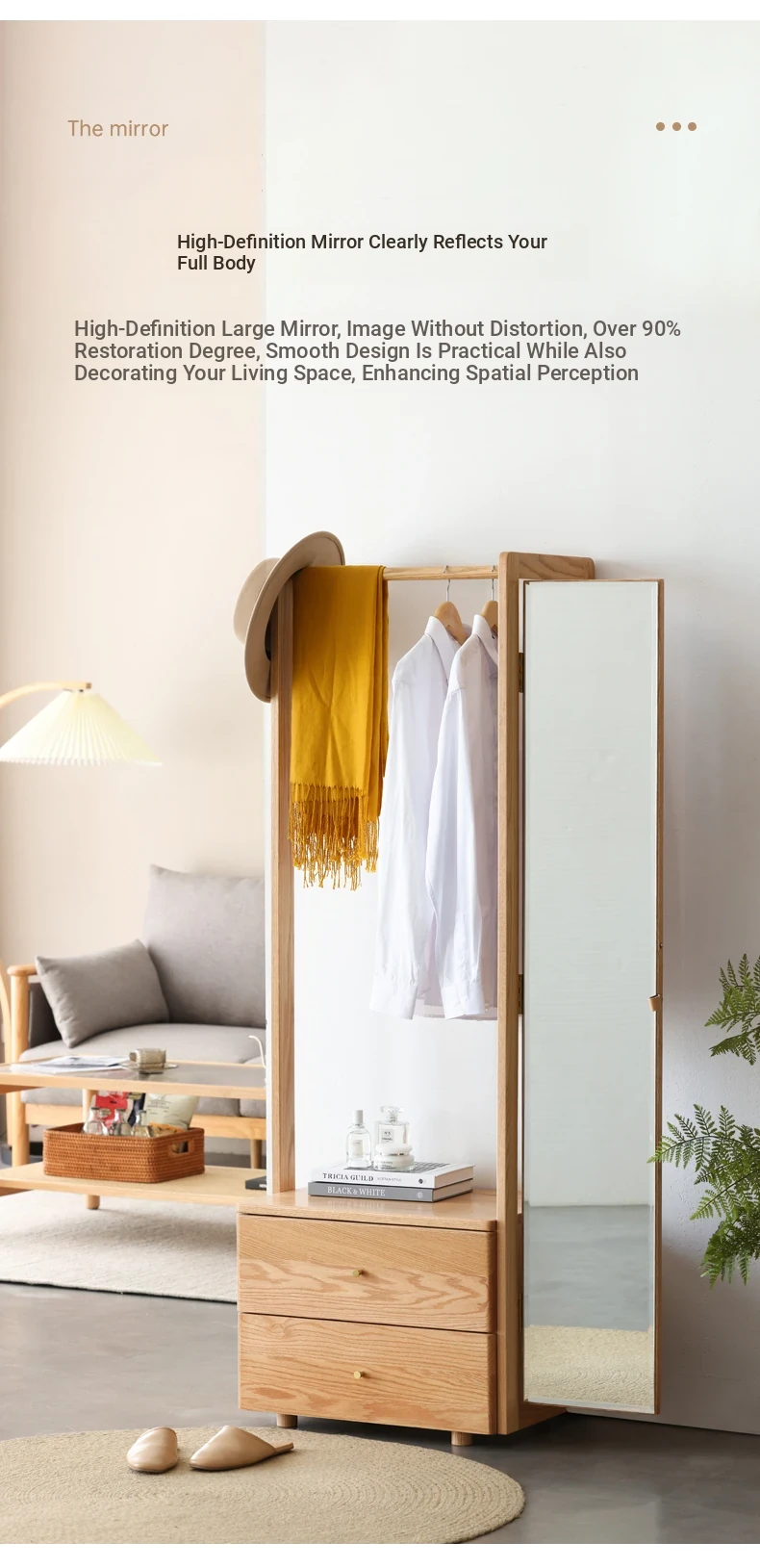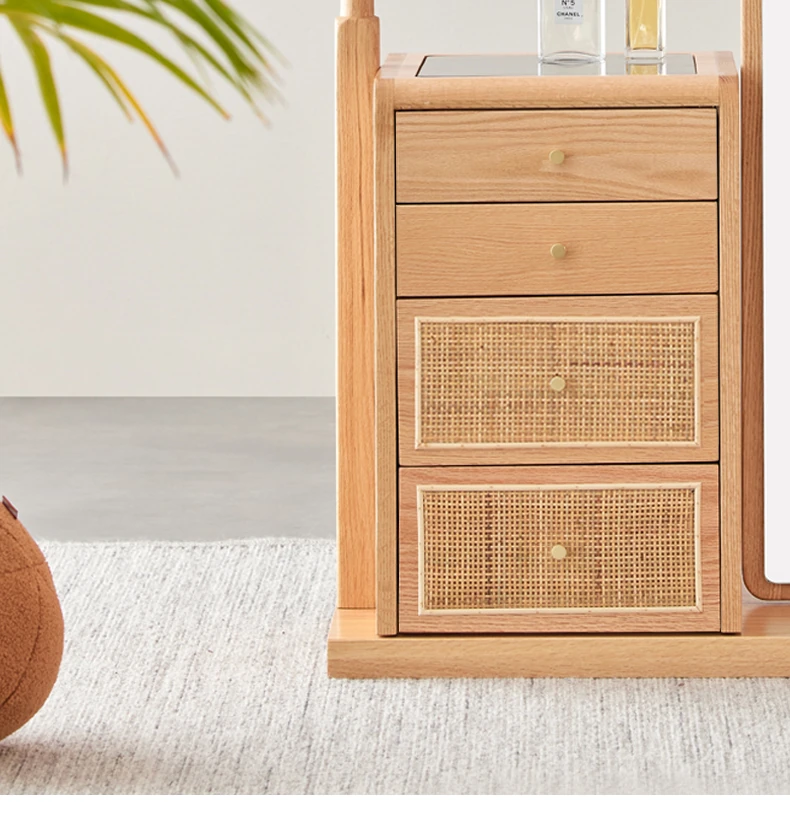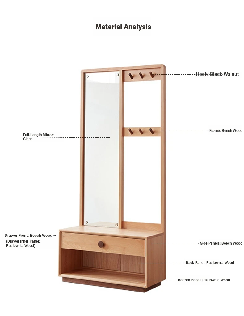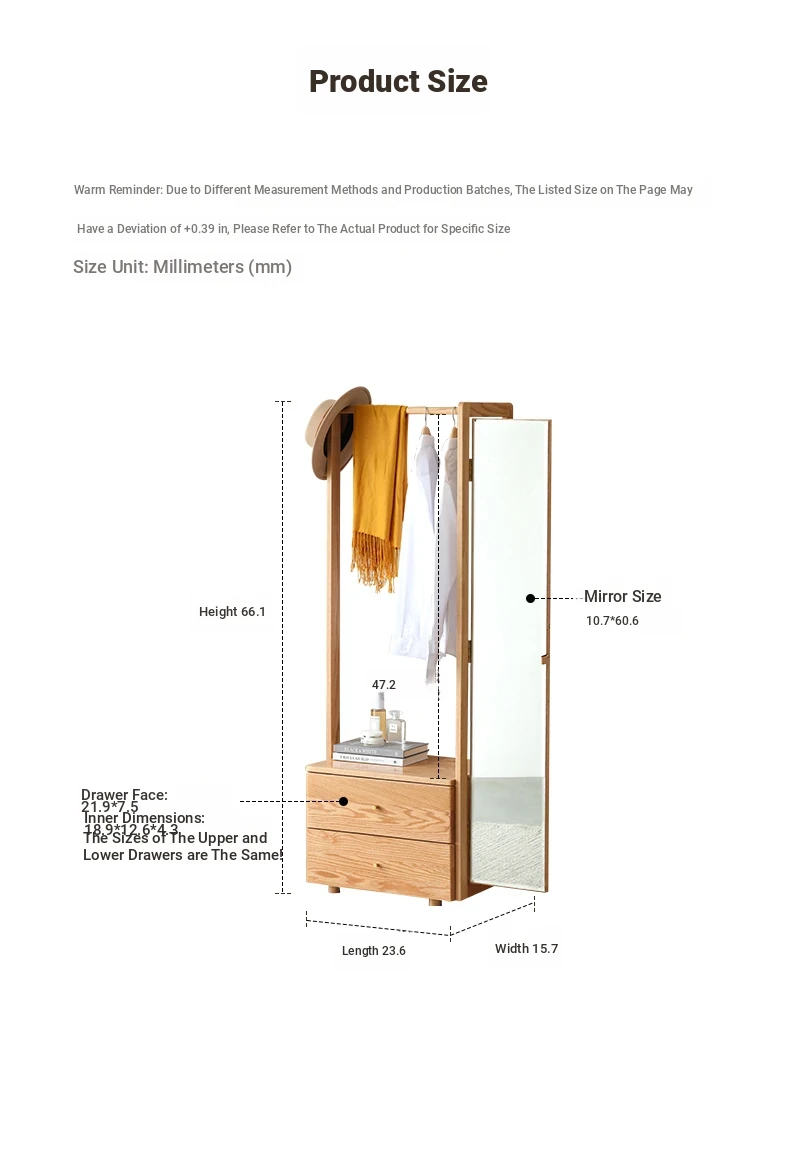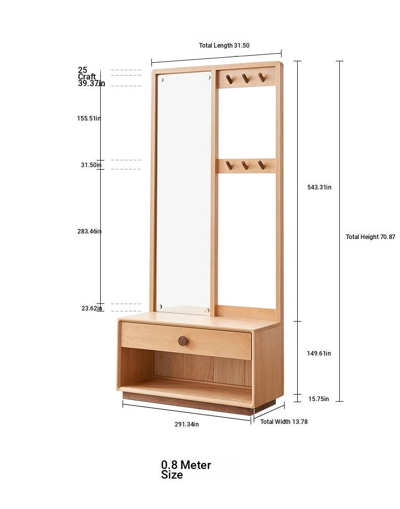 [Log Color]-Oak Shoe Changing Stool Dressing Mirror (A3221)(23.62in*15.75in*66.14in)