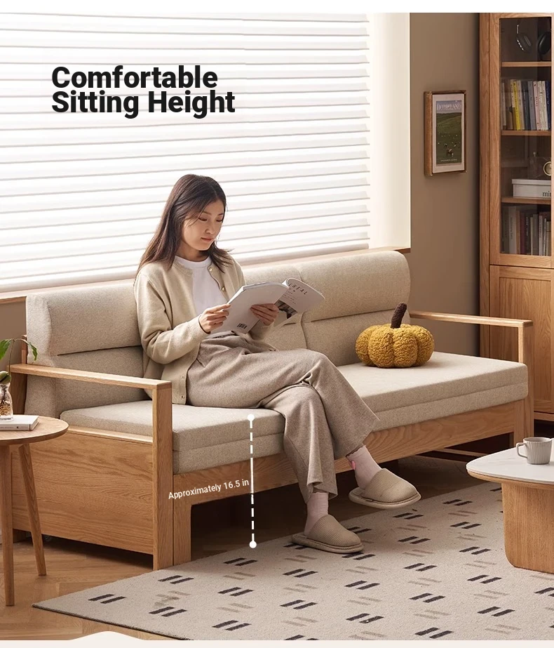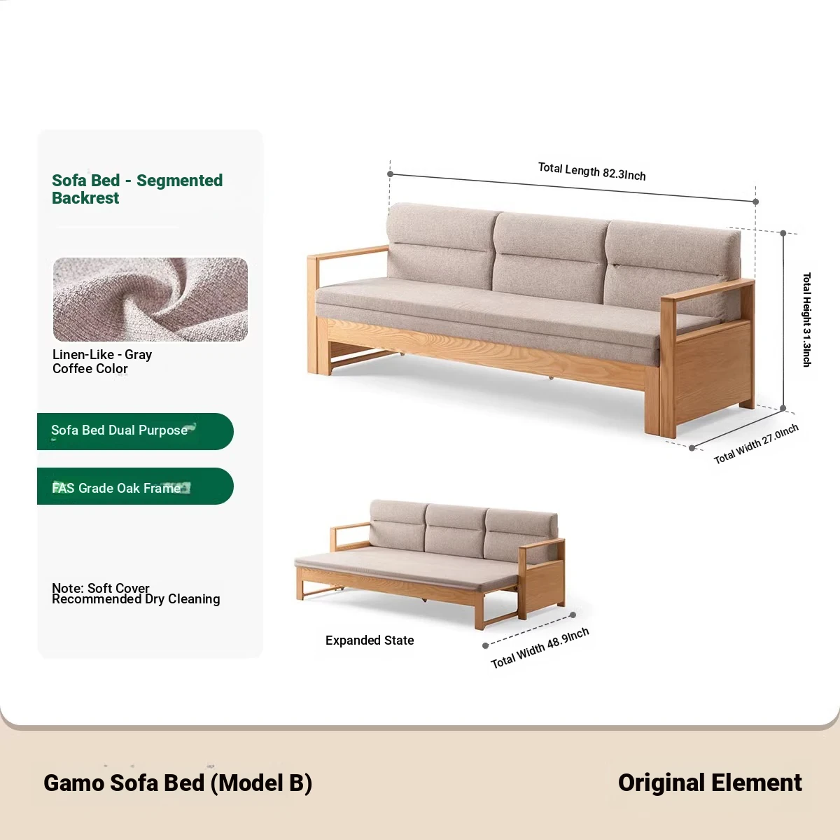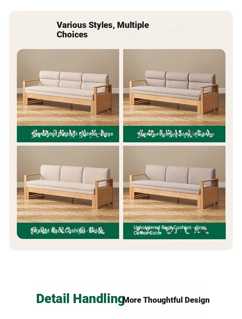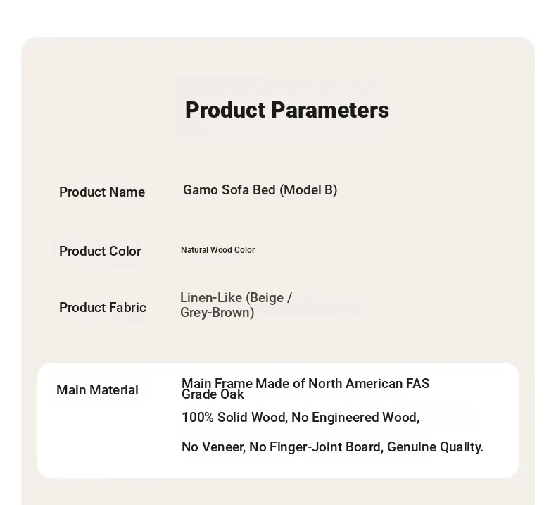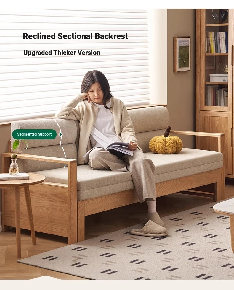[Oak-Log Color] Jiamo Sofa Bed (Section B)-(Including Beige Pad Segmented Backrest) 2090*687/1241*695